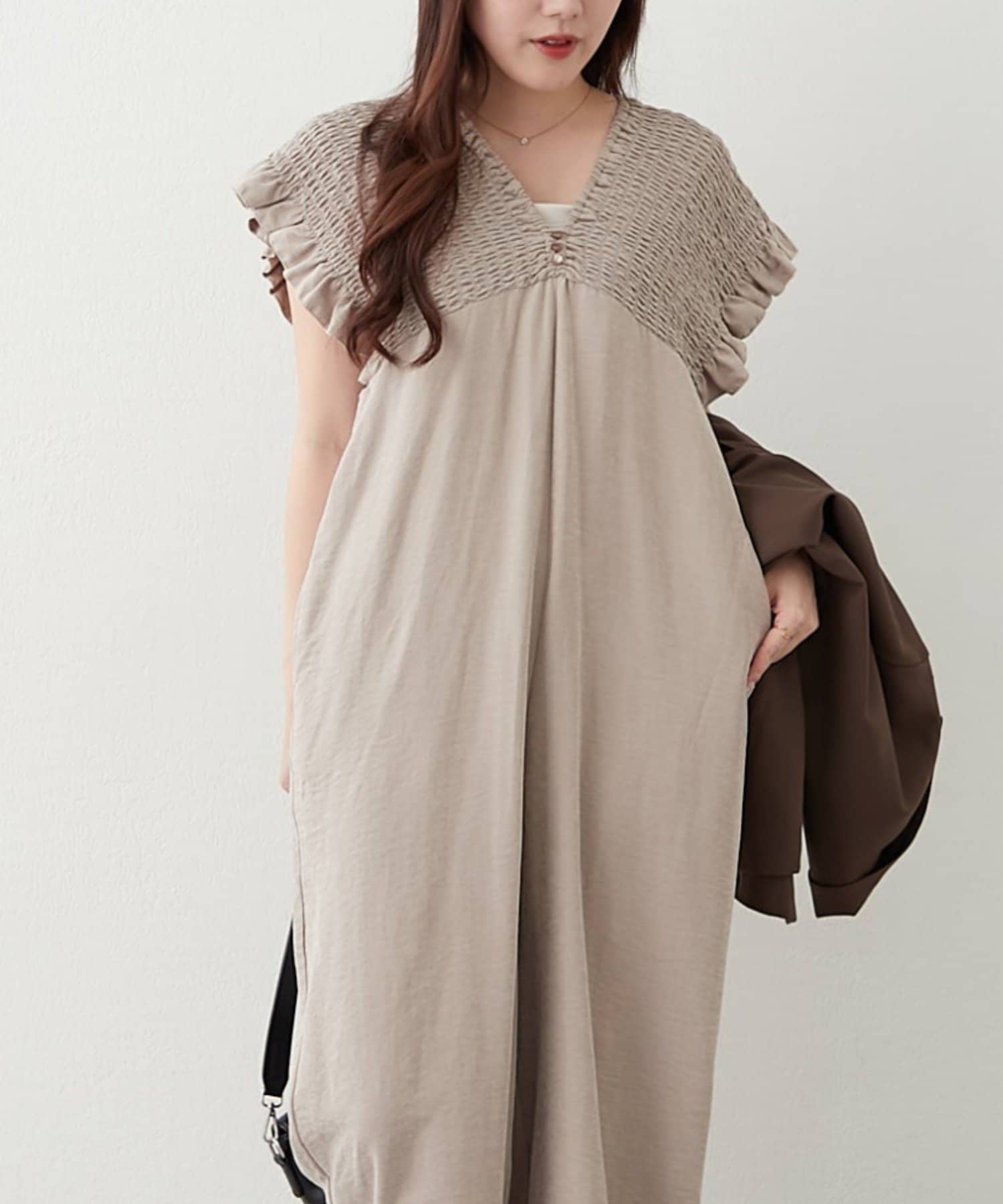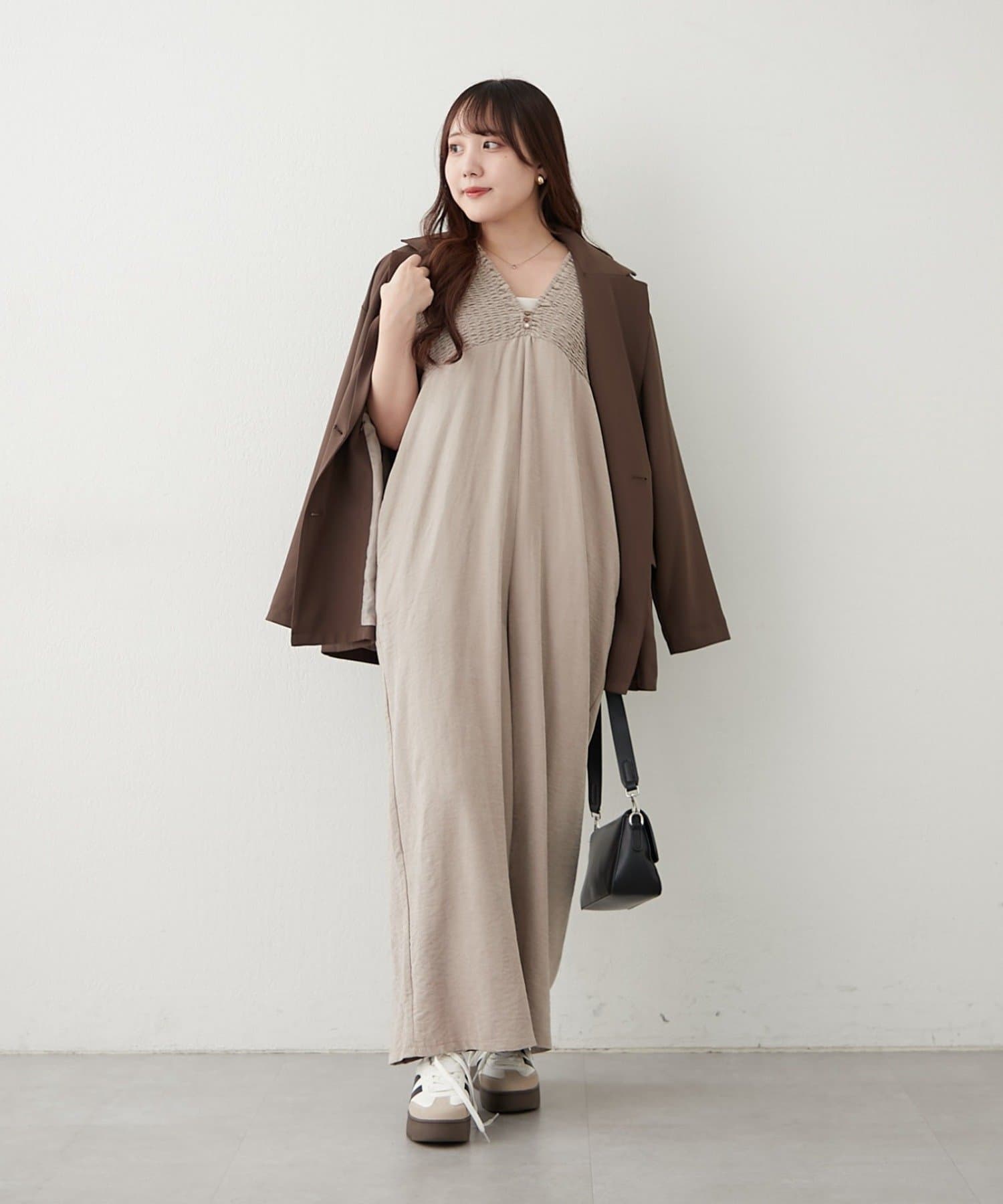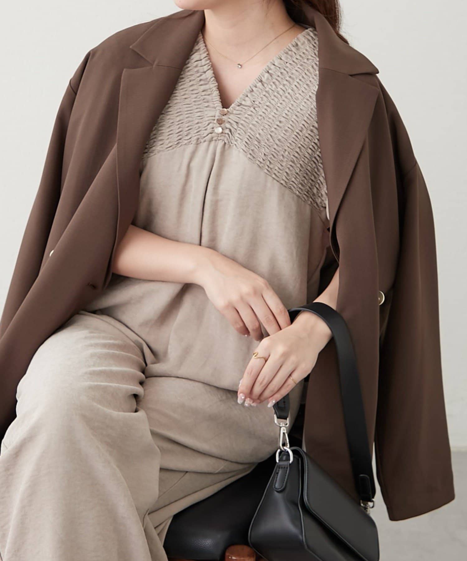 ・肩周りがシャーリング仕様になっており、着脱らくちん!