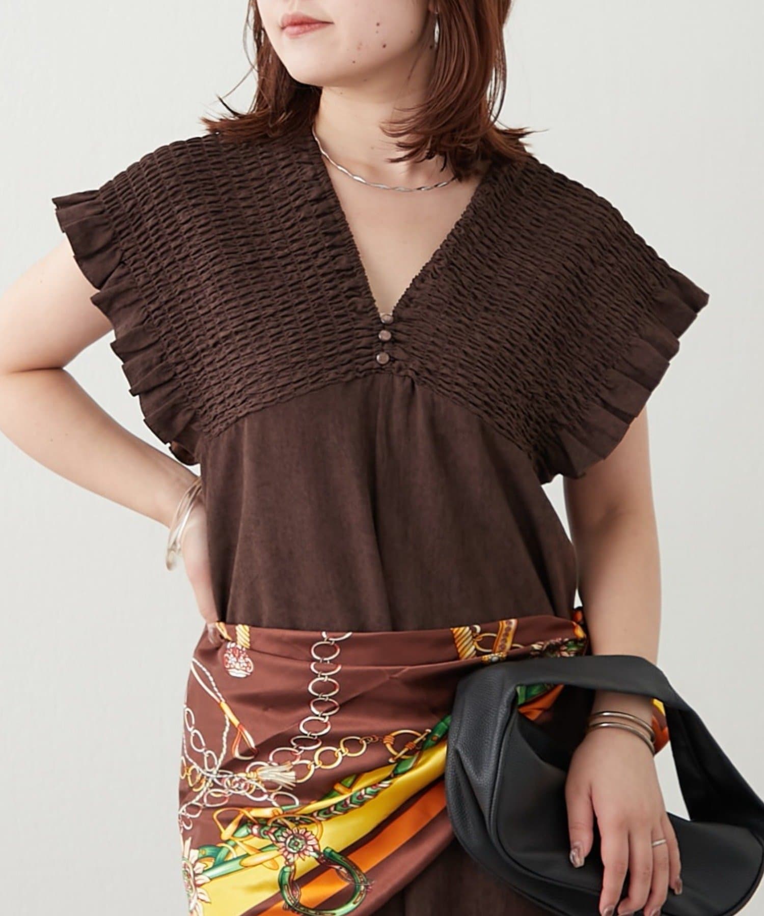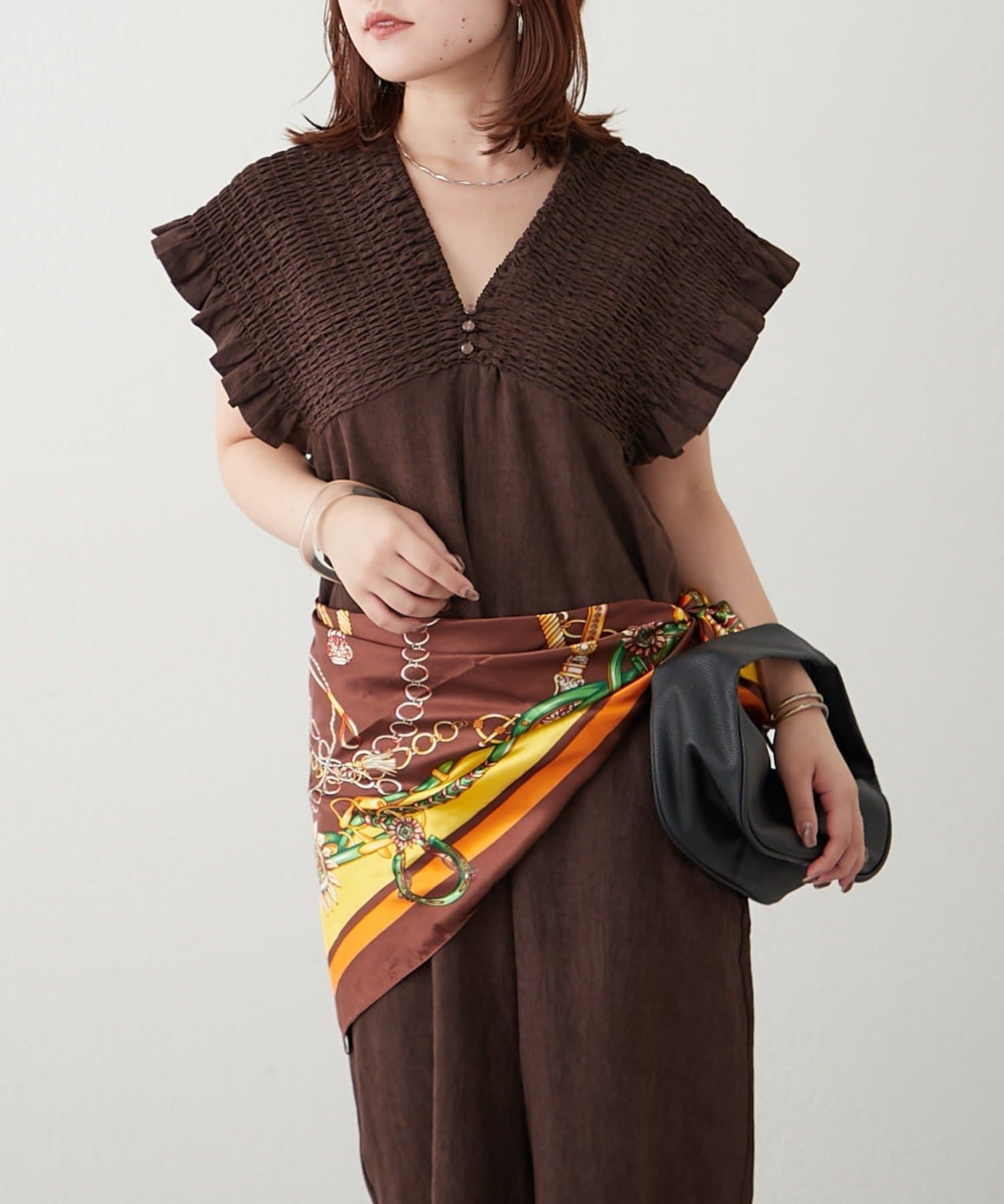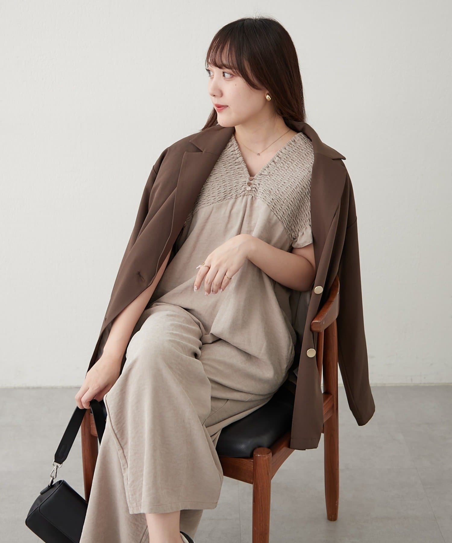 ・肩周りがシャーリング仕様になっており、着脱らくちん!