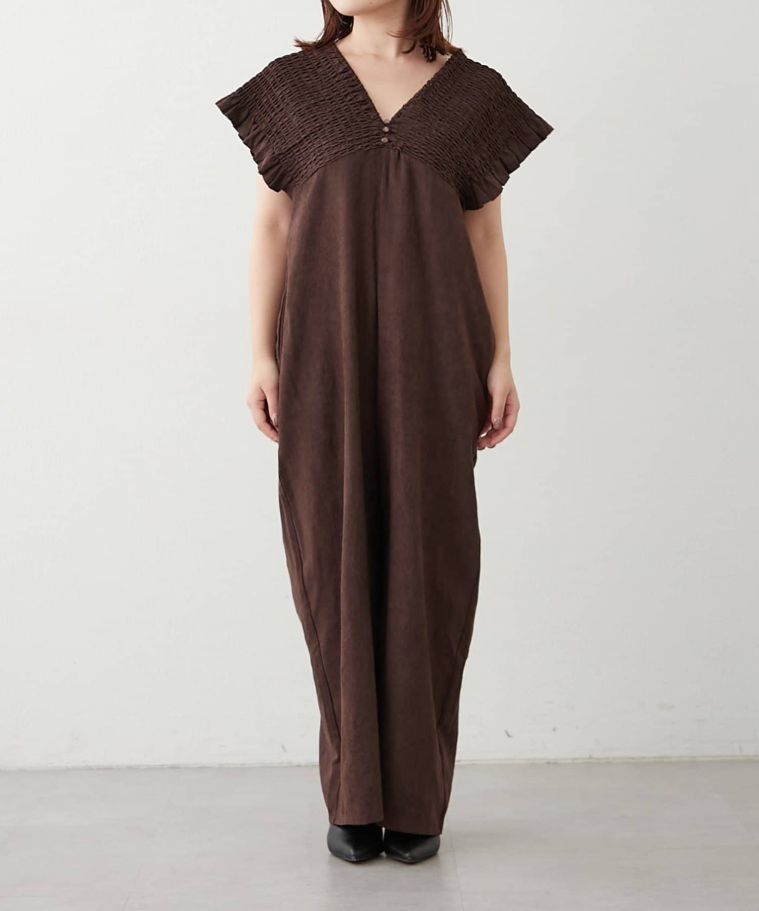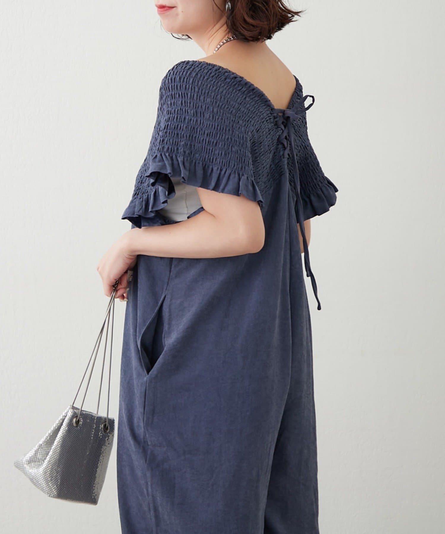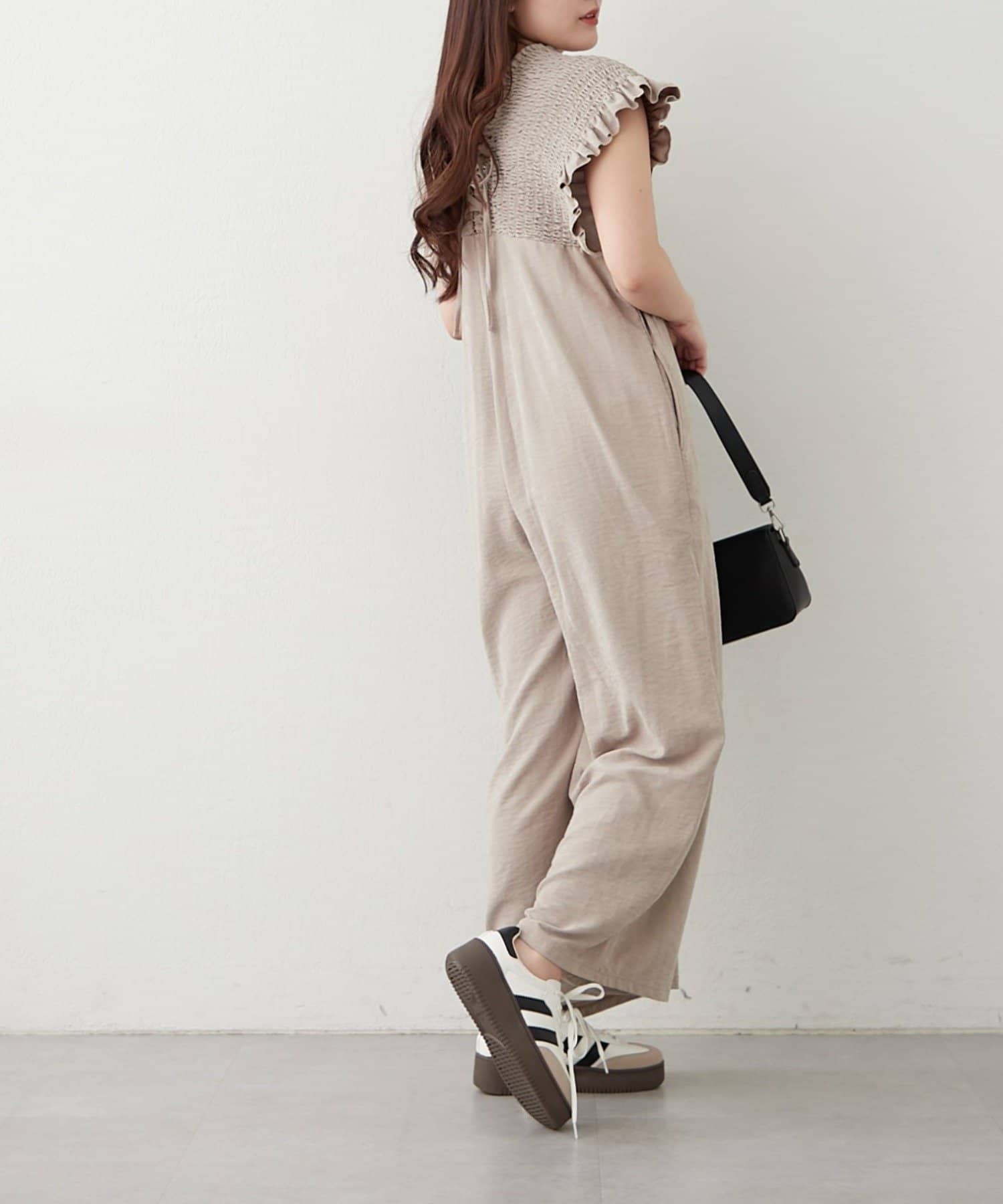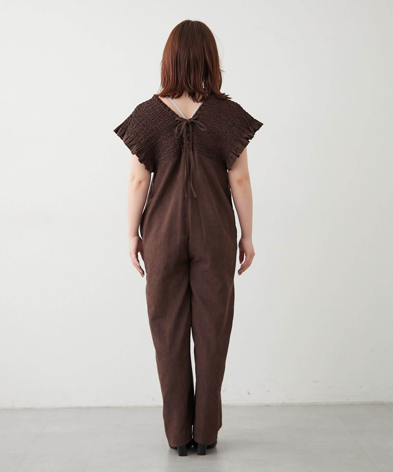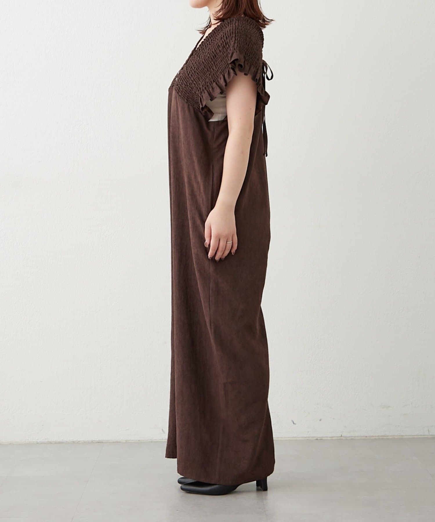 ピーチ起毛シャーリングサロペット