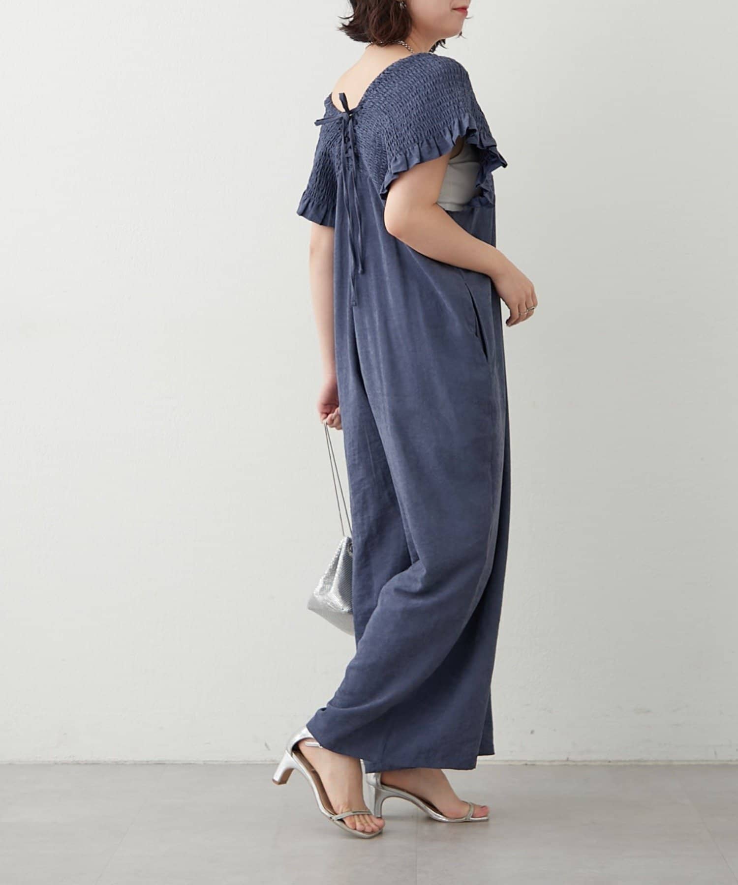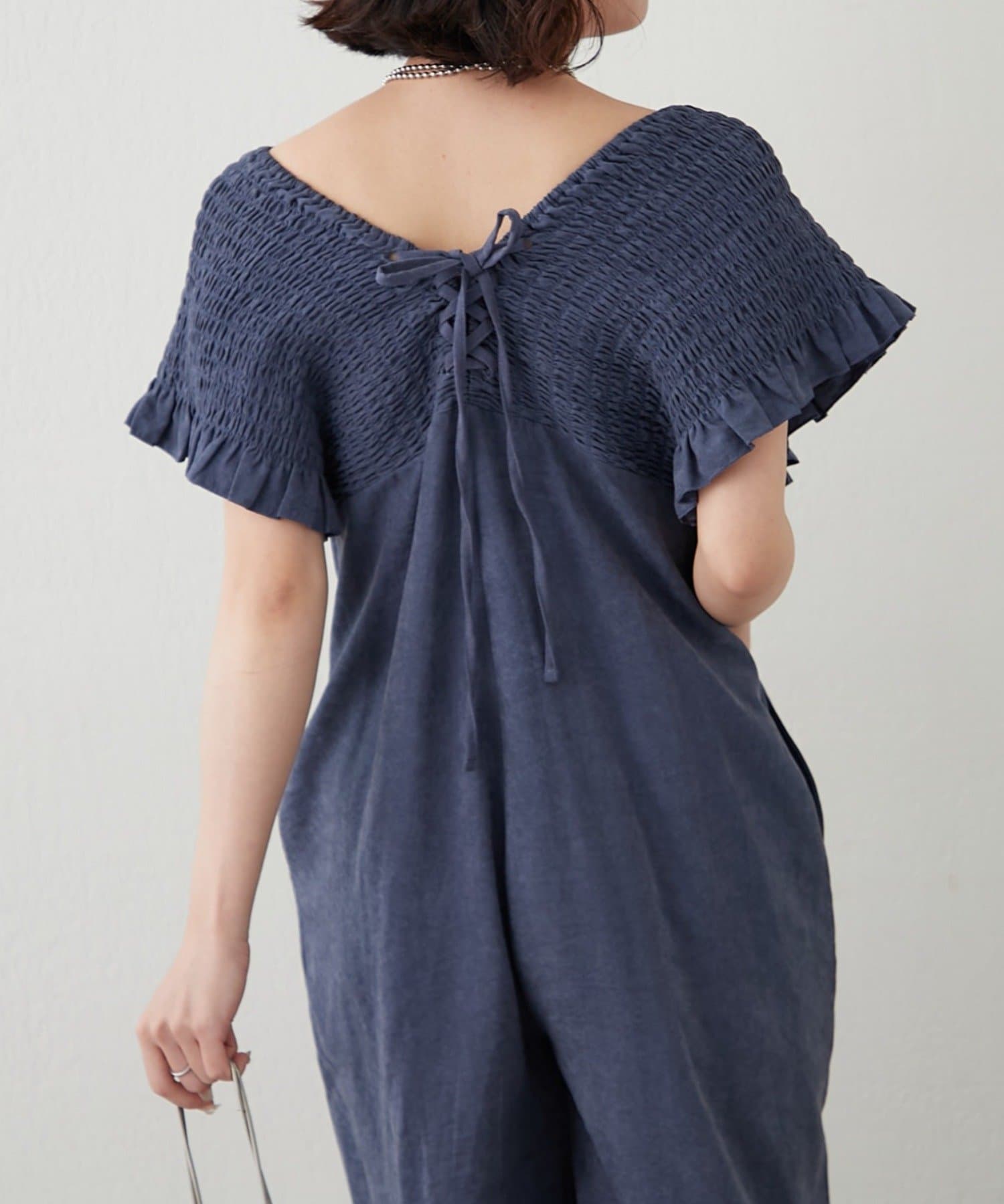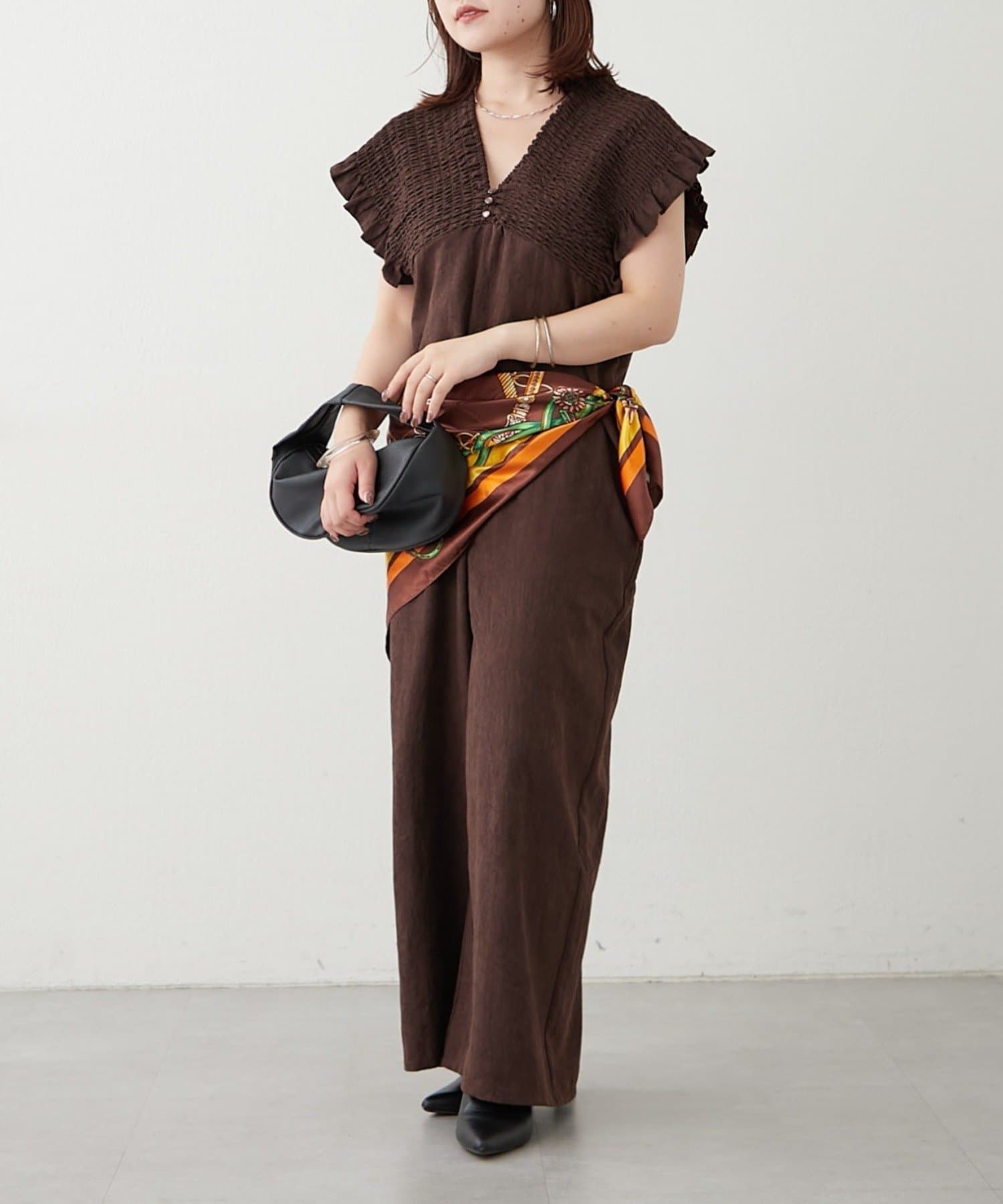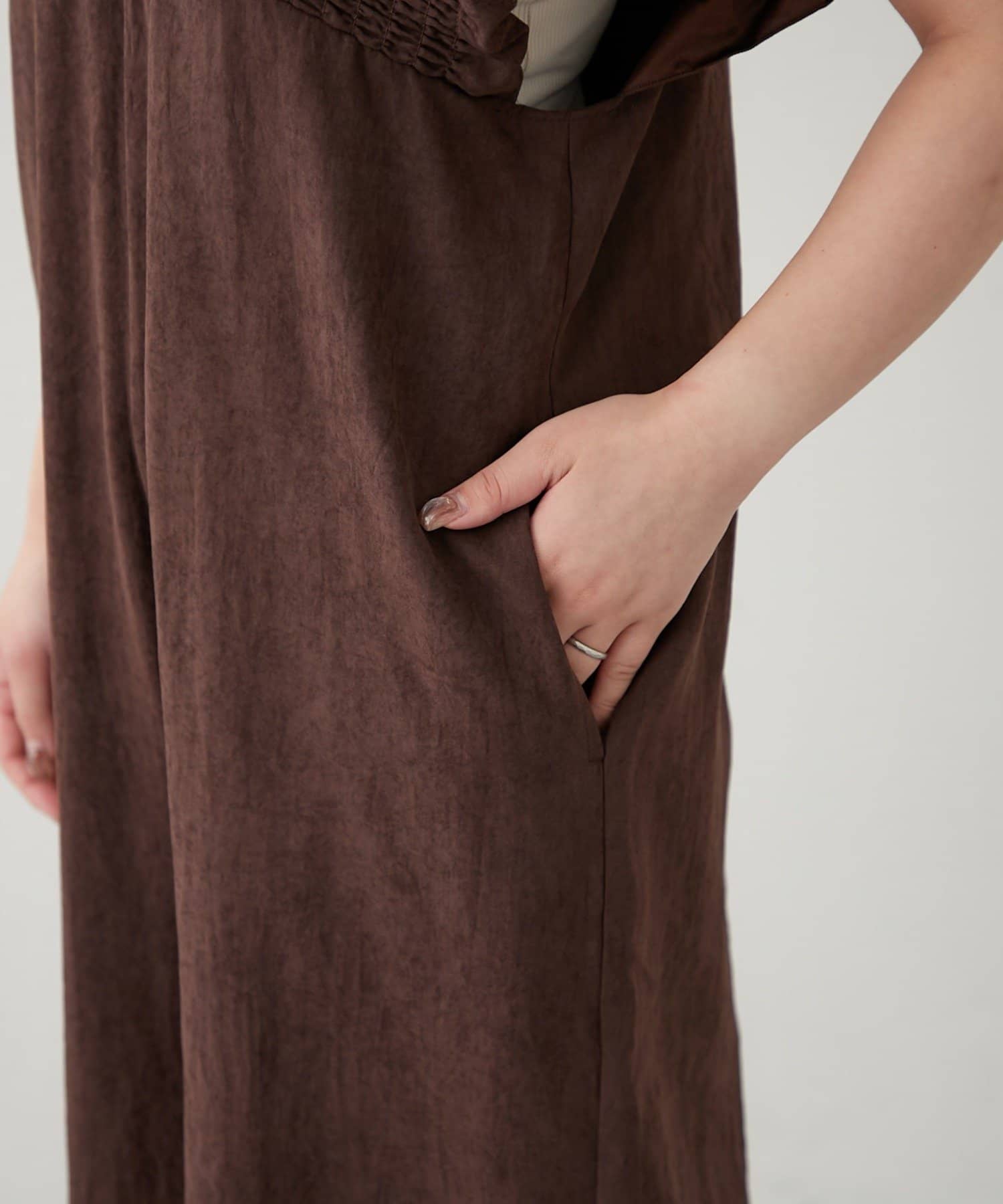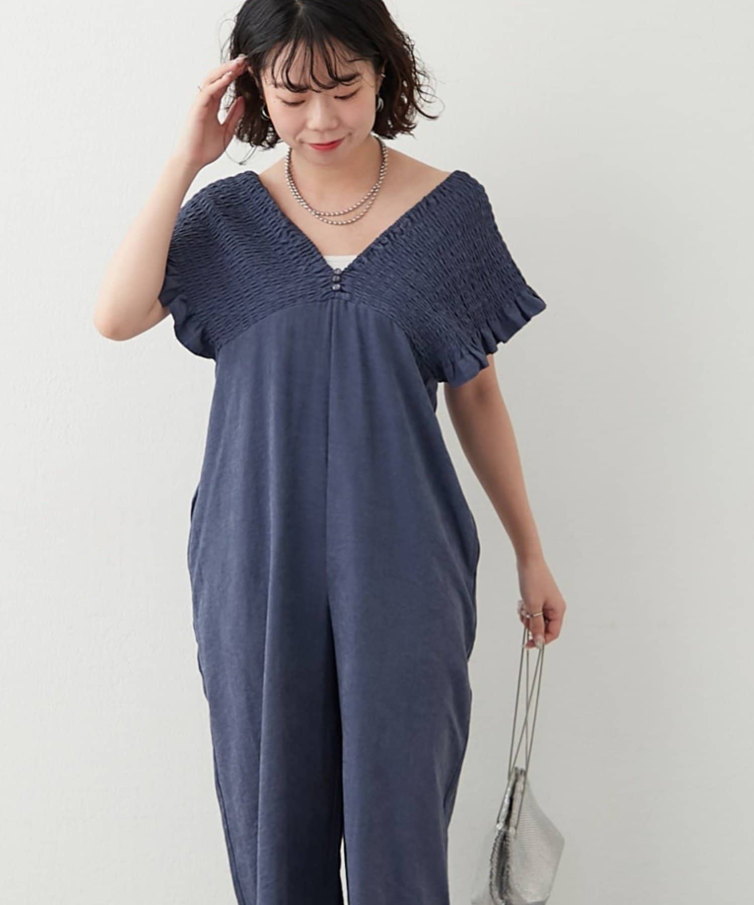ピーチ起毛シャーリングサロペット