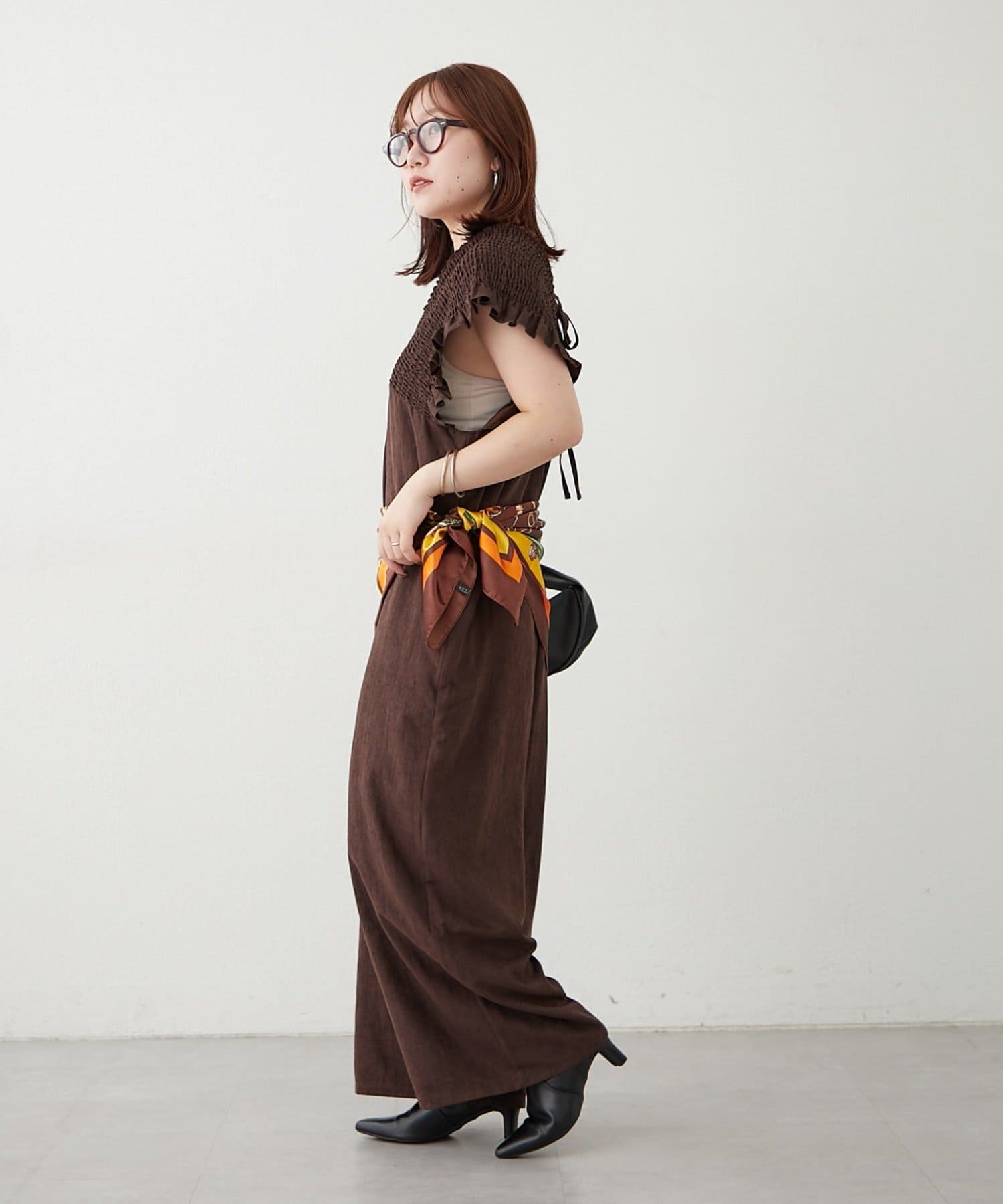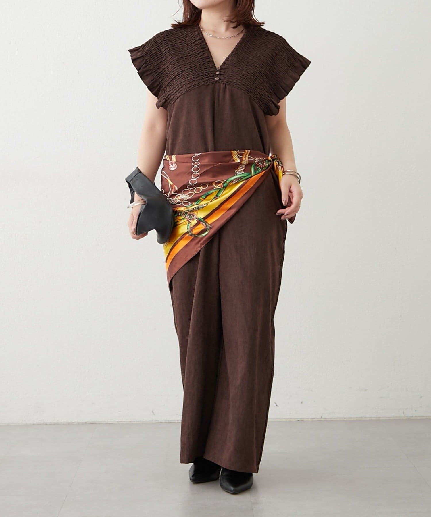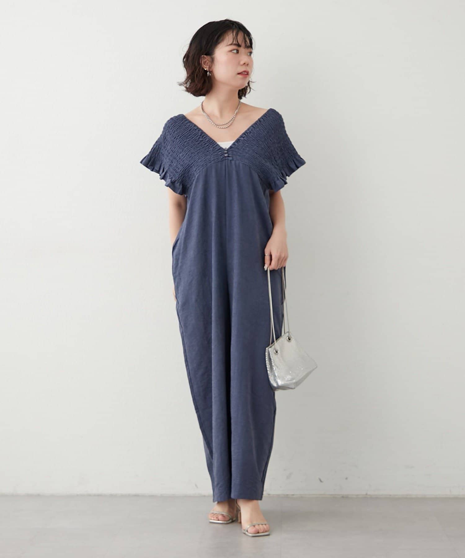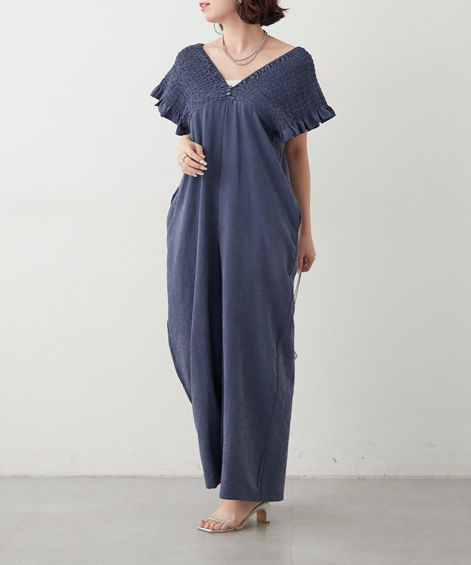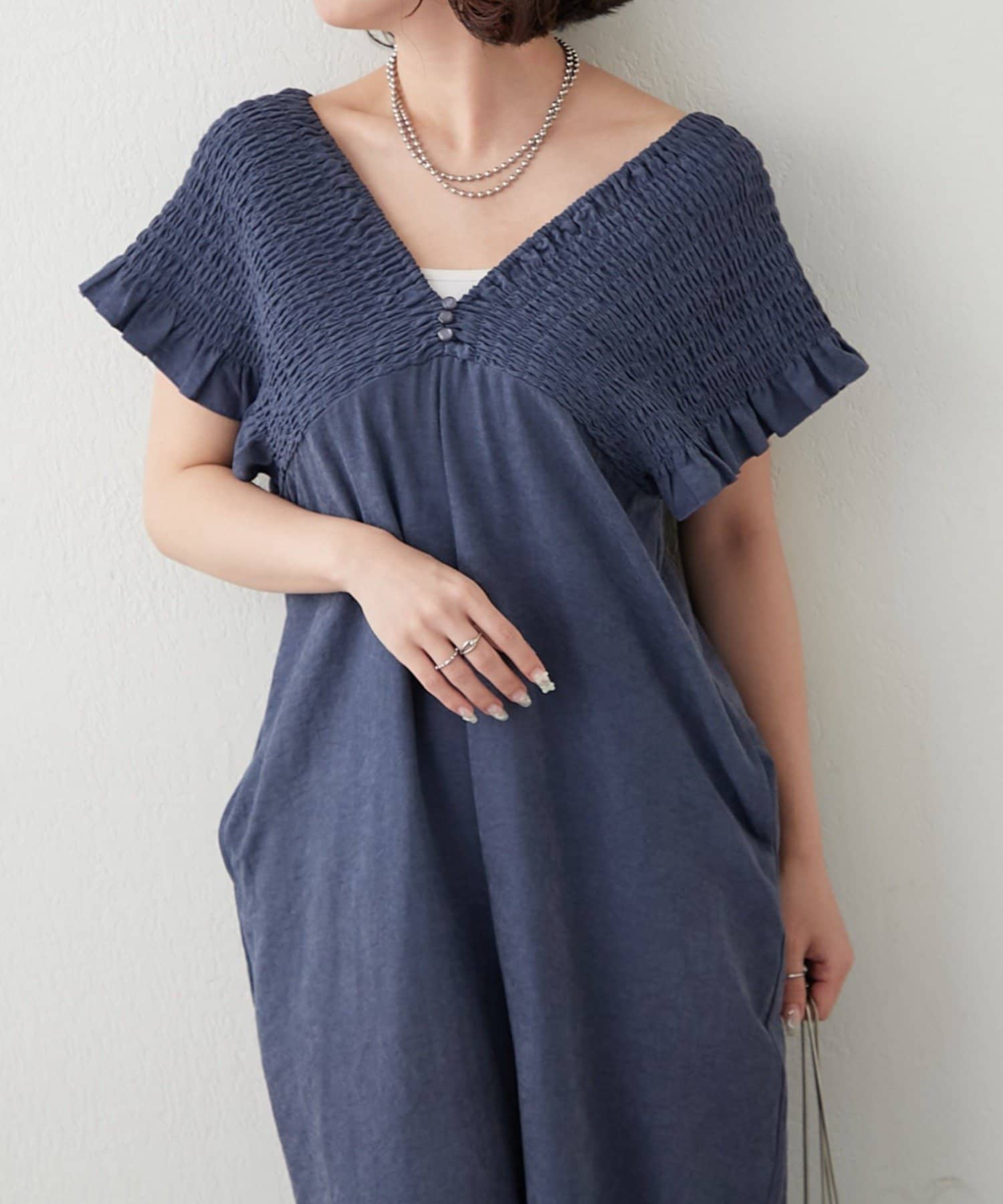 ピーチ起毛シャーリングサロペット