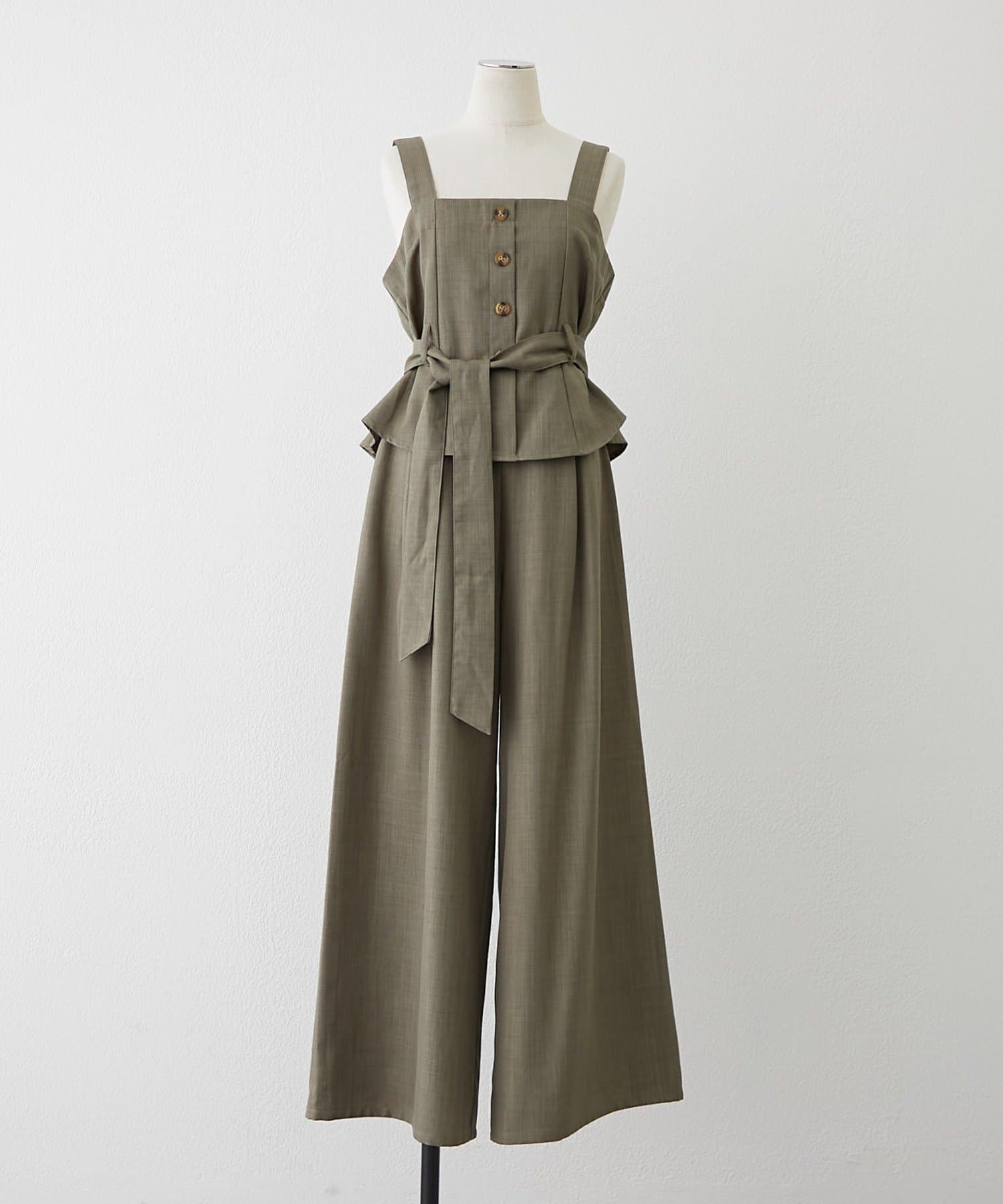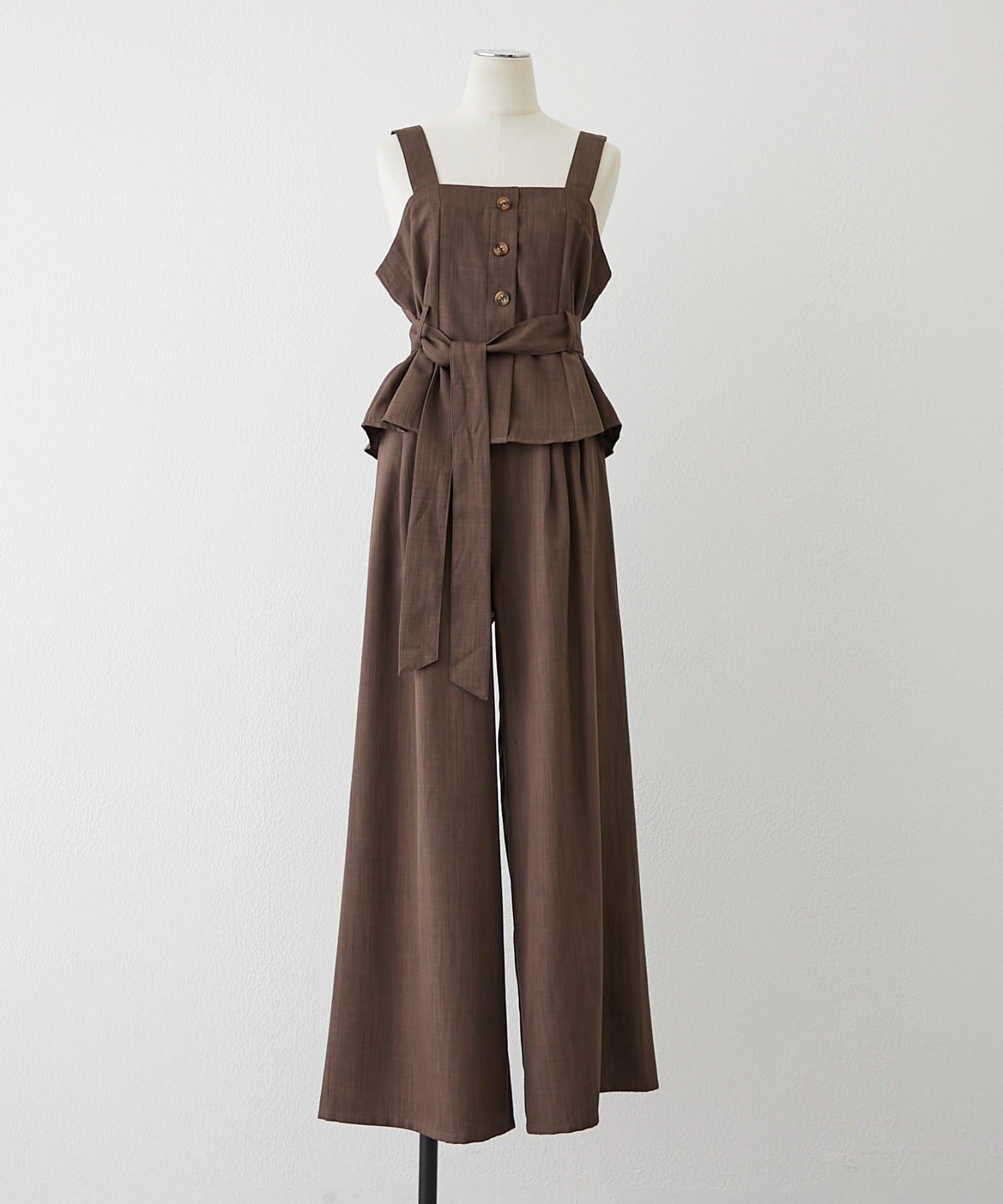人気につきリバイバル!【RMAF】【2枚セット】麻風素材の色々ぼたんキャミ+パンツセット