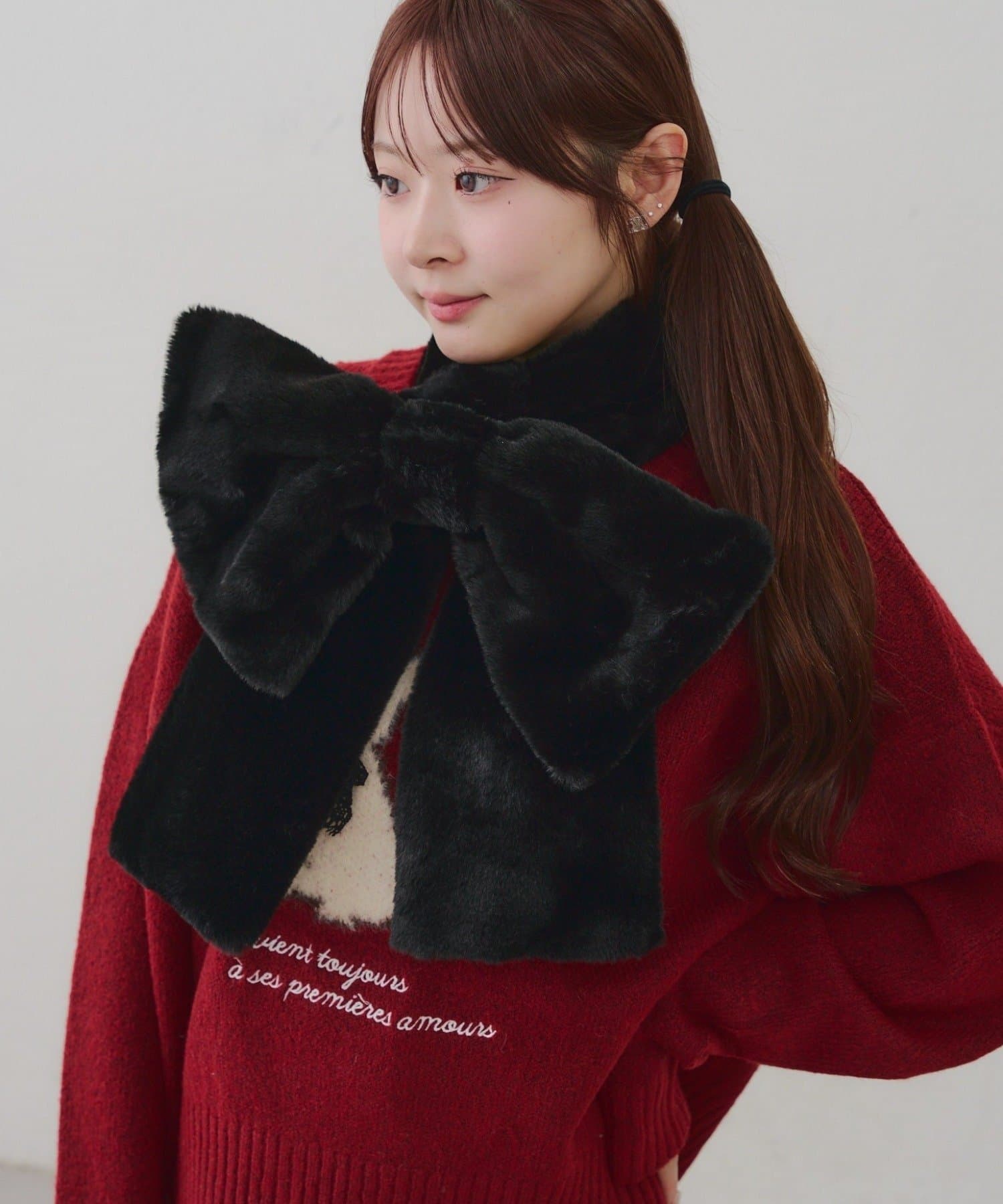 ふわふわファーリボンが映える♪【RMAF】ビッグリボンフェイクファースヌード