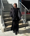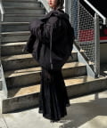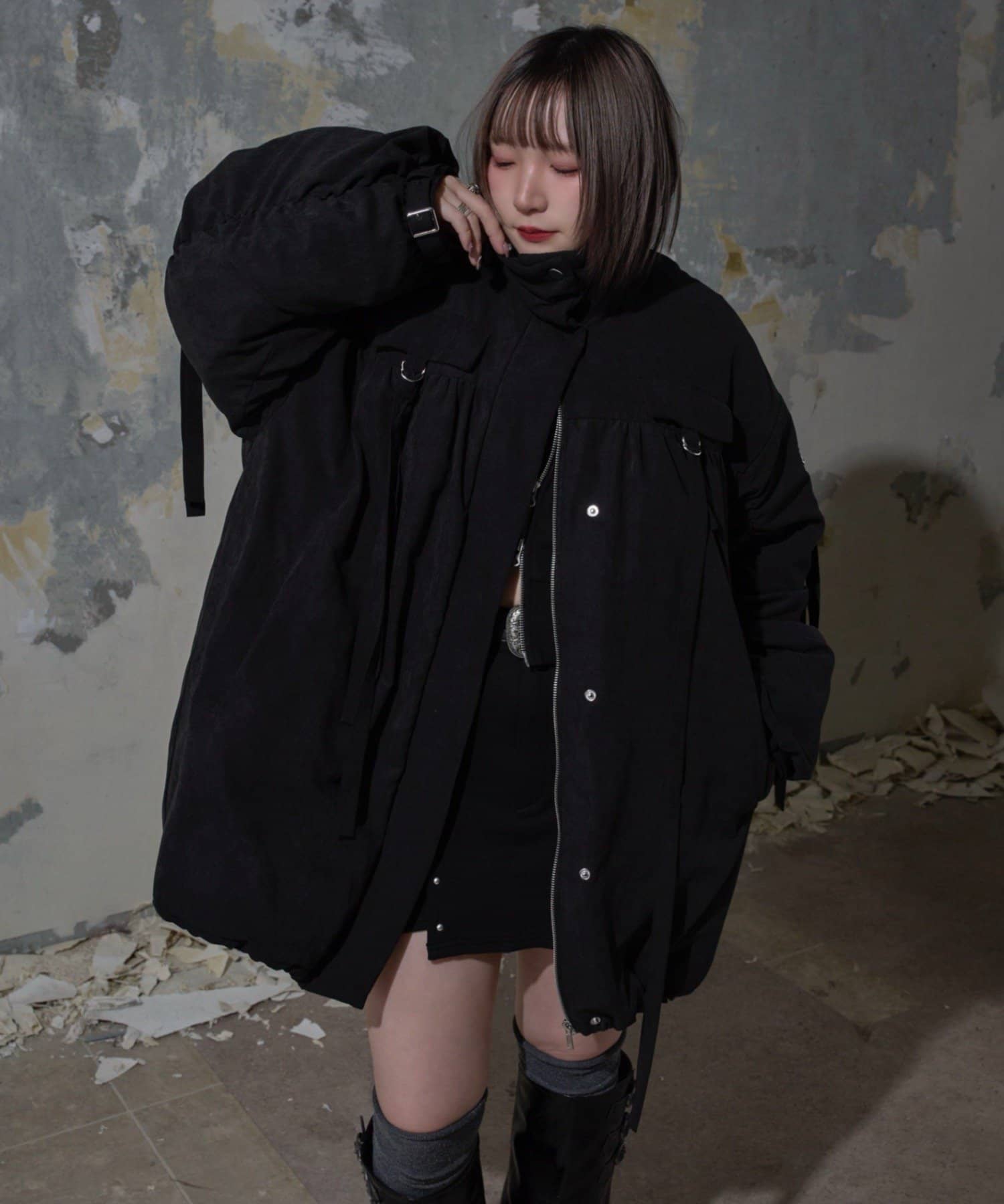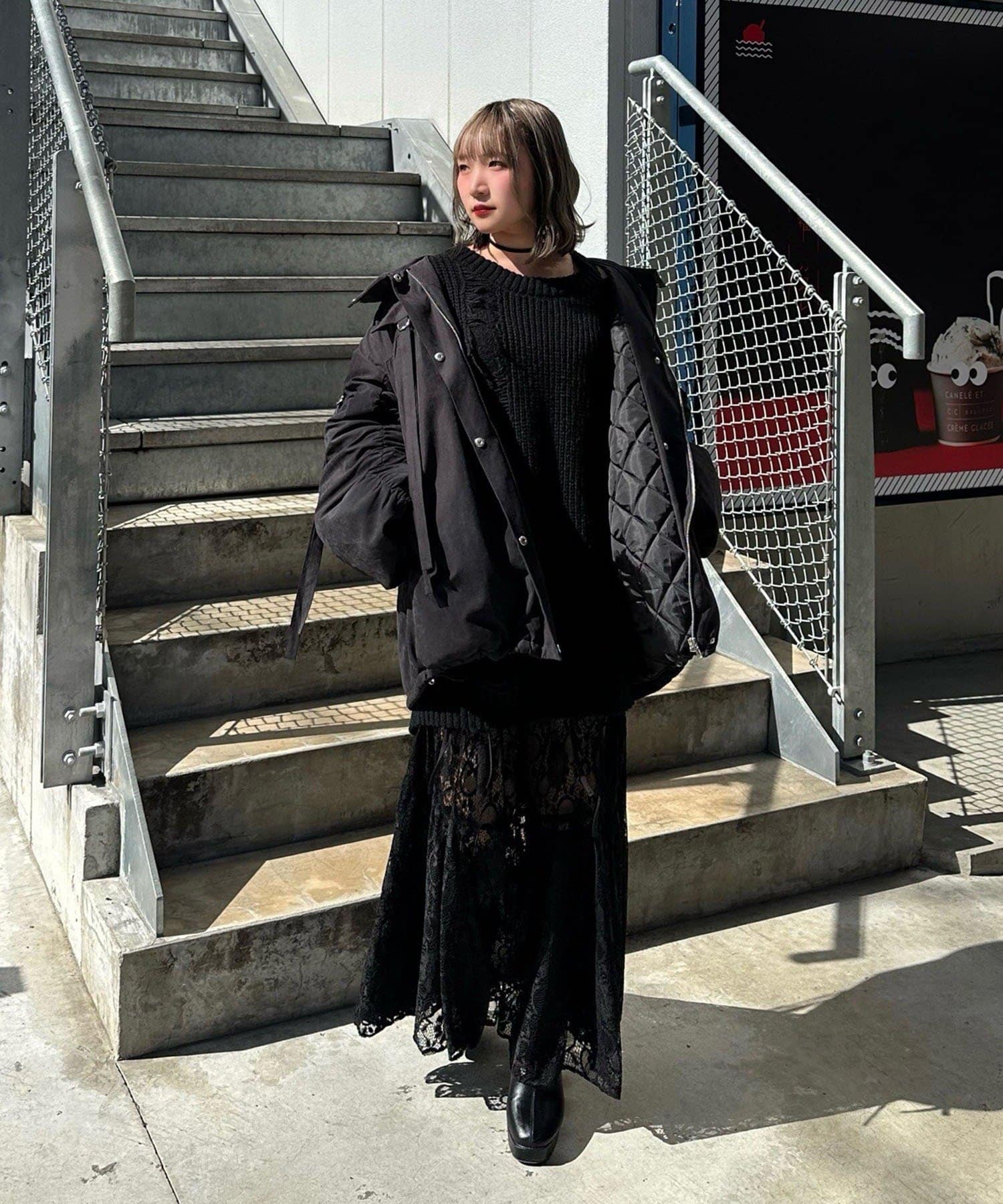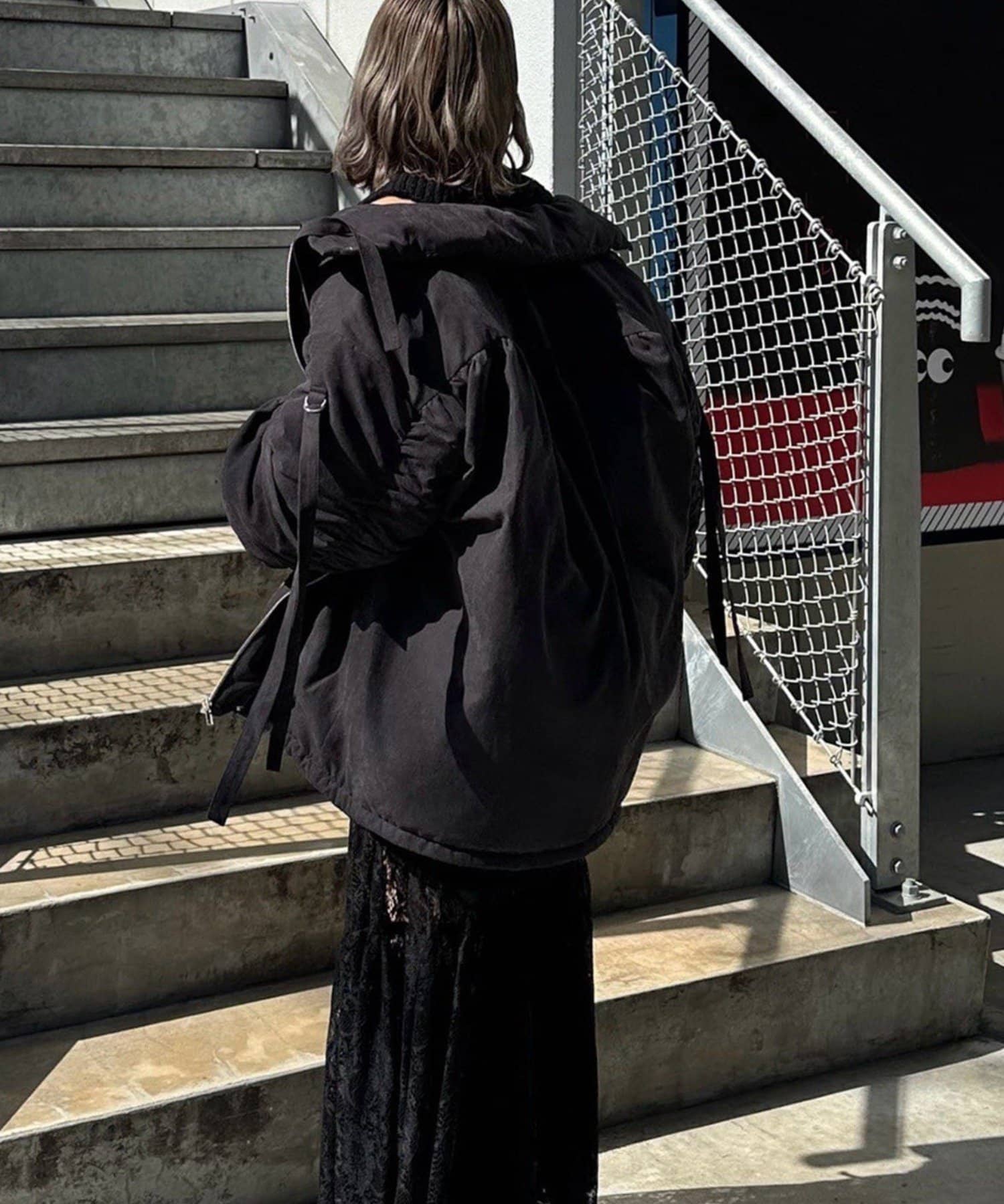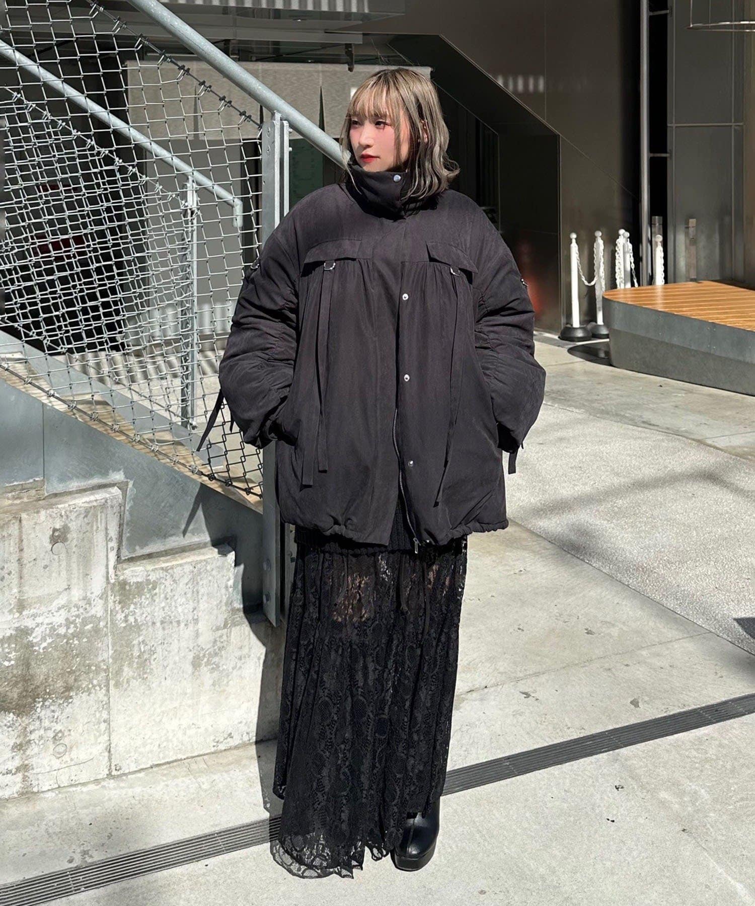 ・マットなお素材や袖口のベルトなどカジュアルすぎないデザインでキレイめなアイテムとも合わせやすいです。