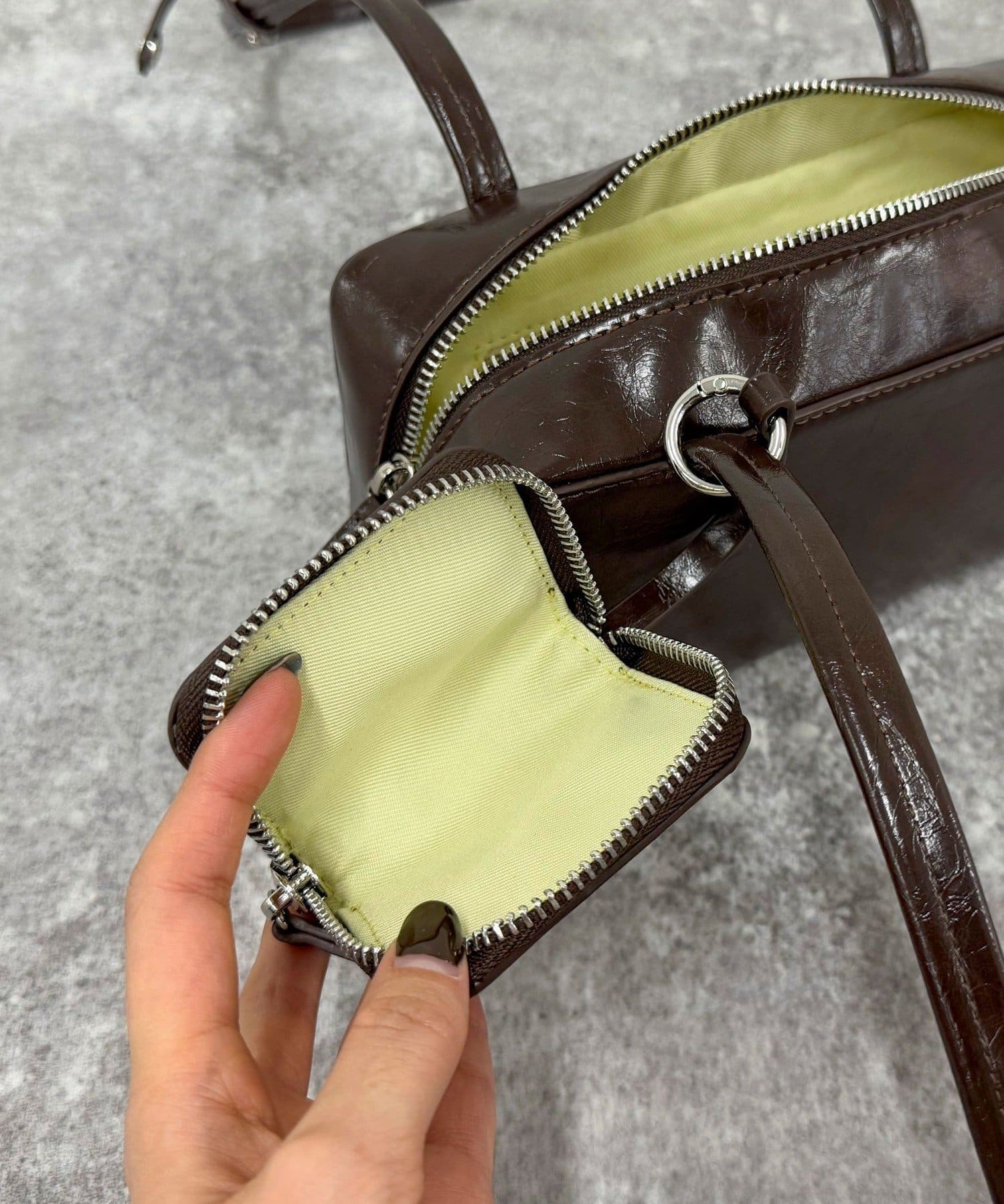 ・背面や内側にポケットがあり、ミニポーチも付いているので細かな物の収納にも便利!