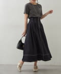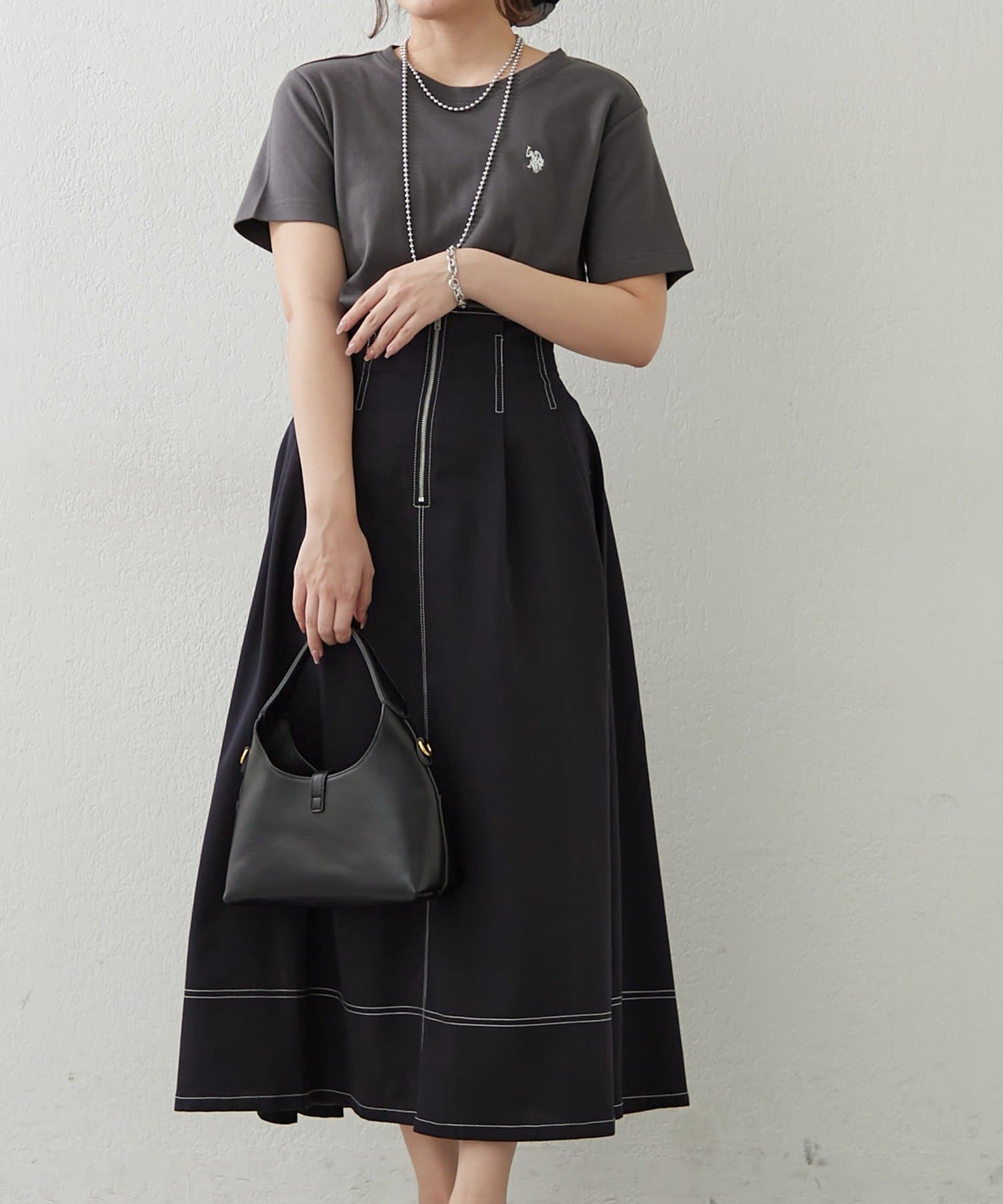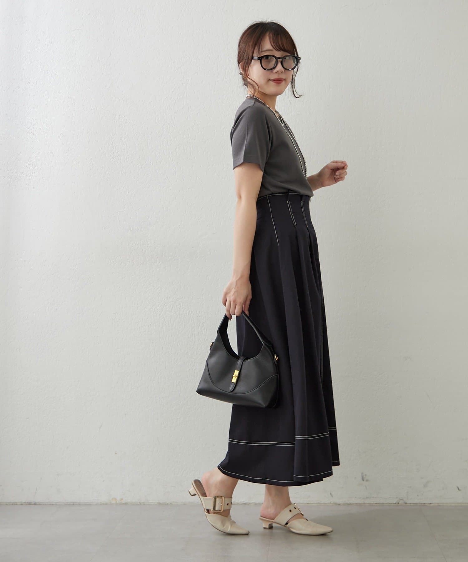 ・スカートにTシャツをインし、スニーカーを合わせれば、抜け感のある大人のカジュアルスタイルに