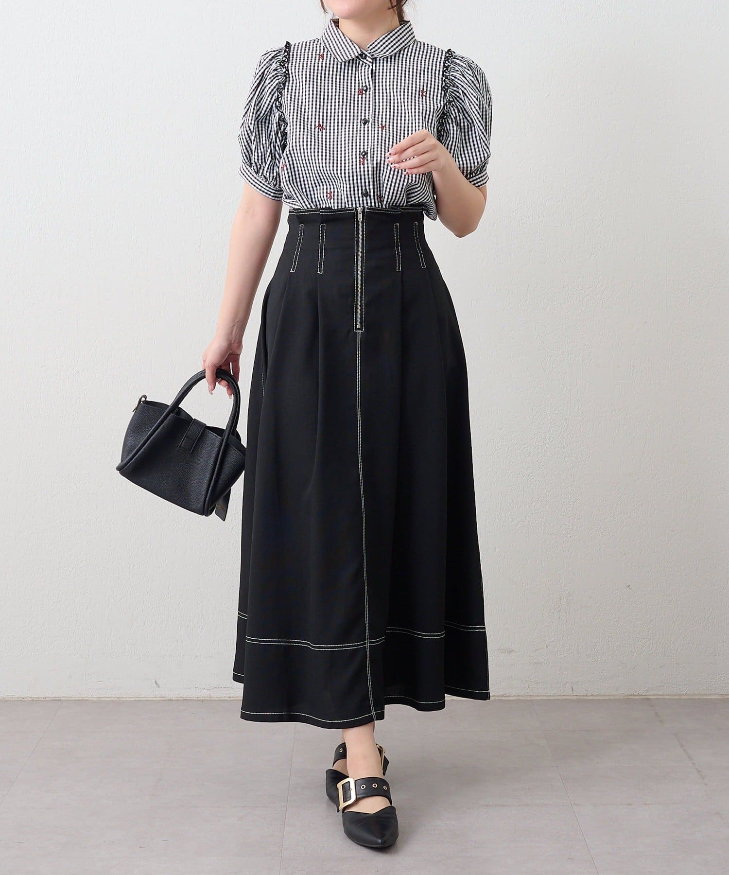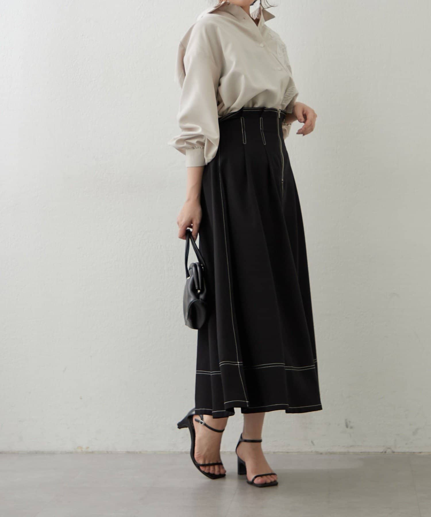 ・きれいめなブラウスを合わせ、パンプスを履けば、オフィスにも最適な上品なスタイルに