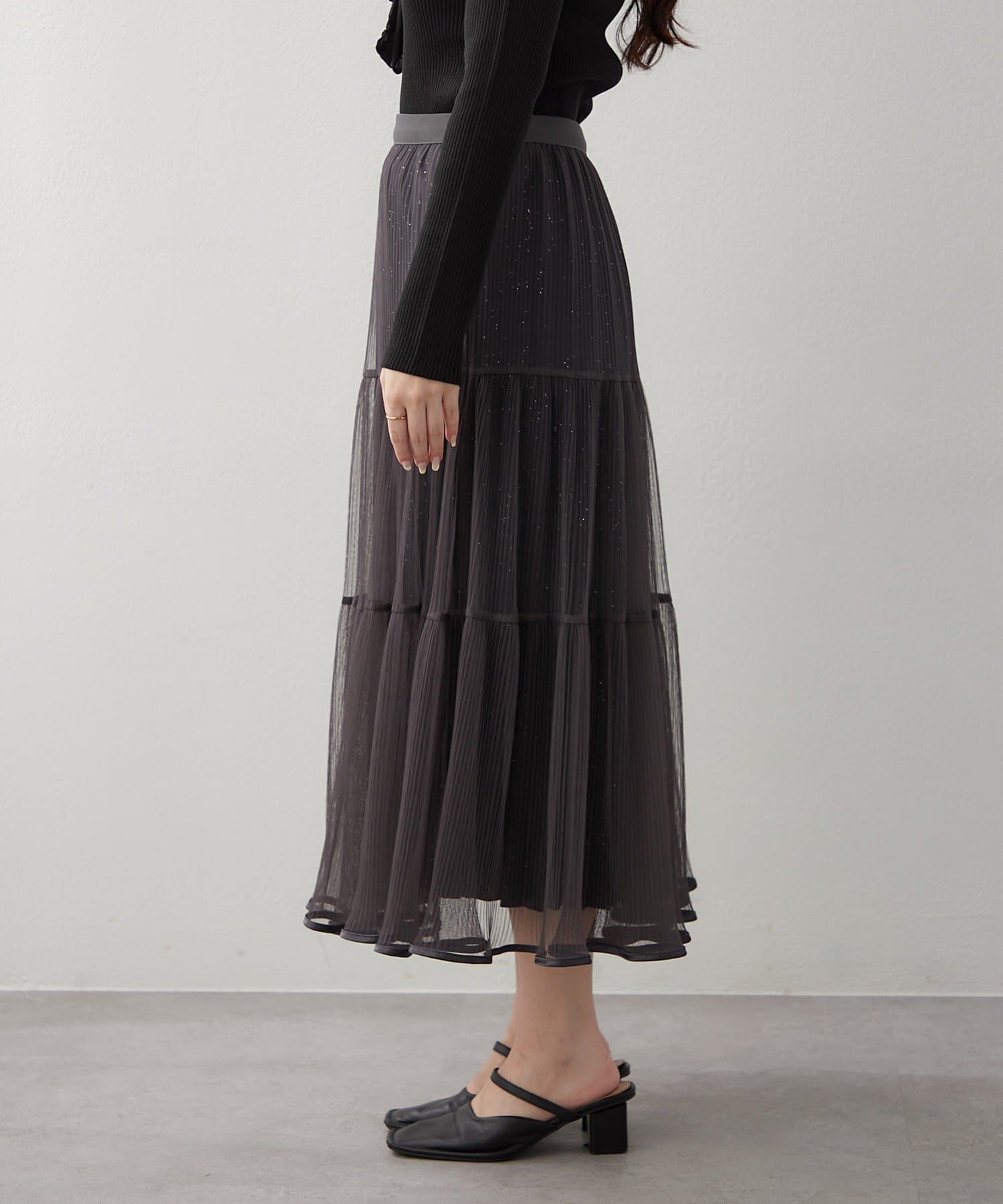 ・ラメ入り素材がさりげなくきらめくチュールスカート