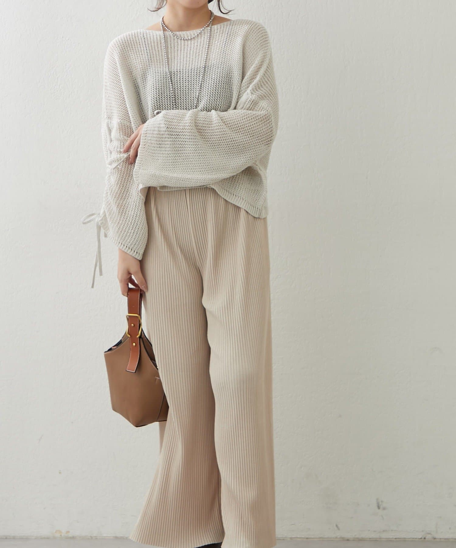 ・スキッパーシャツ合わせ、ネックレスで飾ればラフな大人のお出かけルックが完成!足元はパンプス合わせで軽やかに♪