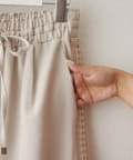 ・ウエストは総ゴムでらくちんながら、キレイ見えするスラックス素材でどんなスタイルにもマッチします