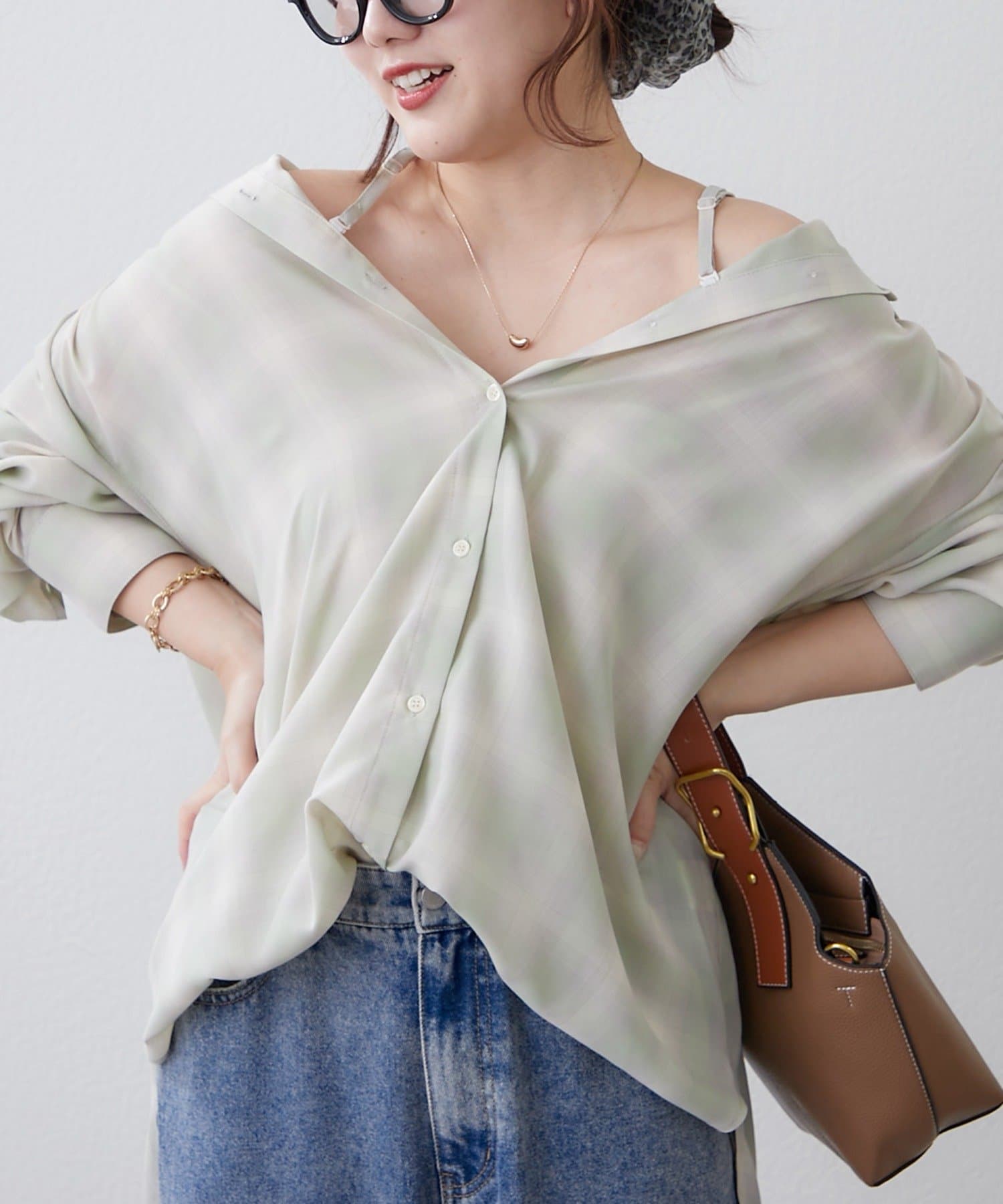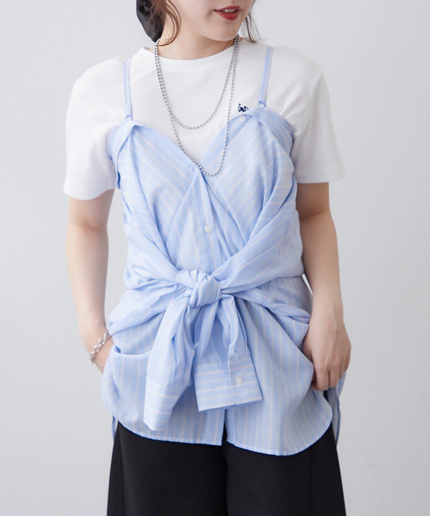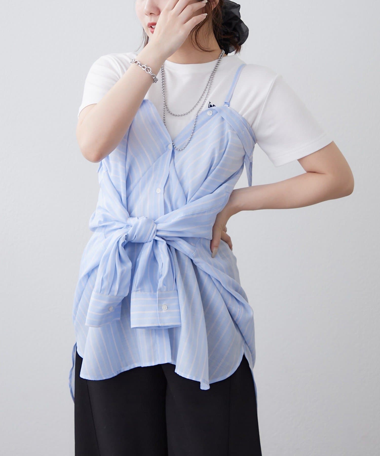 一枚着シャツ、オフショルシャツ、キャミビスチェとして