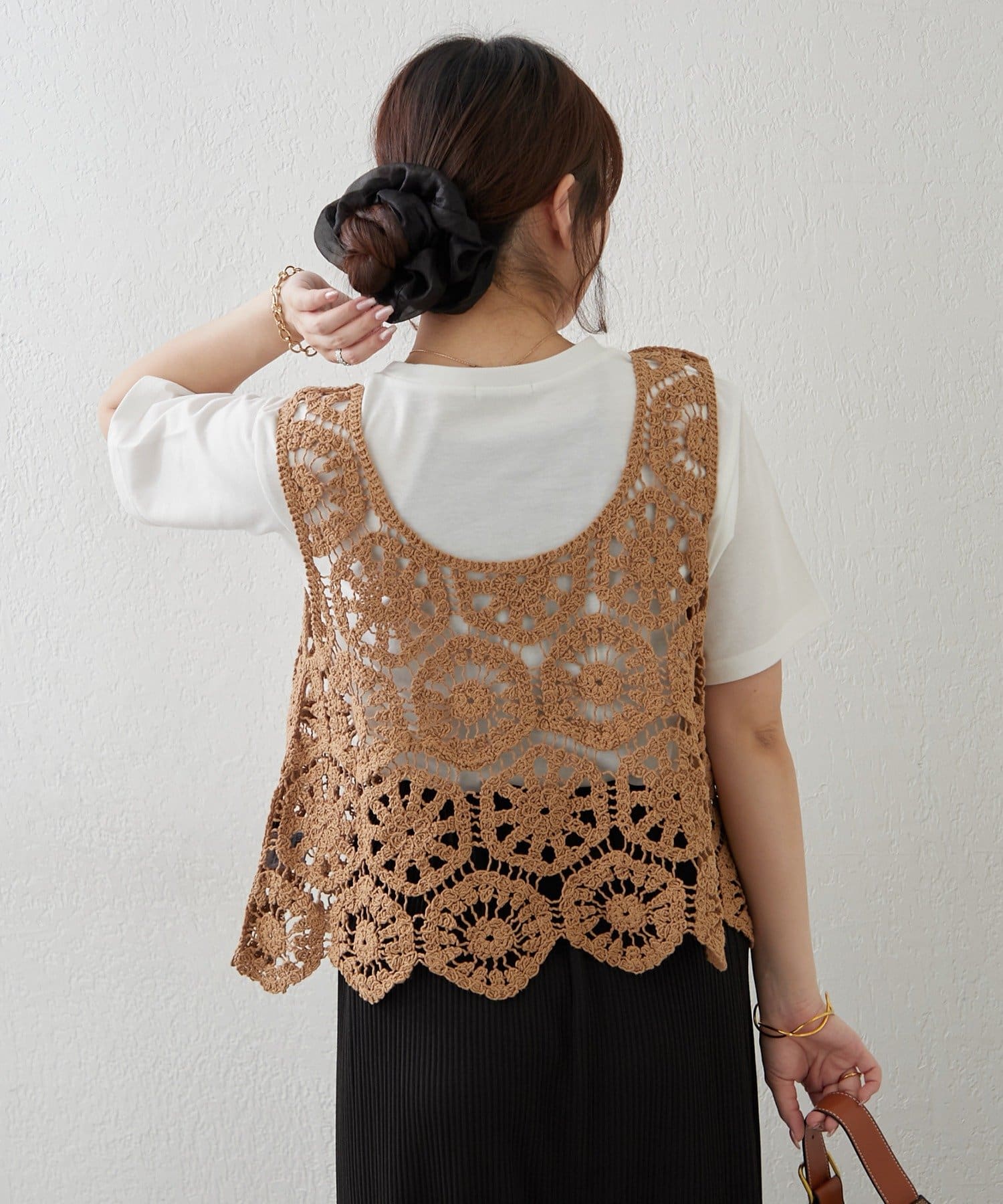 【きれいめカジュアルセットアイテム】かぎ針ベスト&Tシャツ