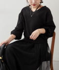 【2枚SET】Vネックニット+チュールキャミワンピース