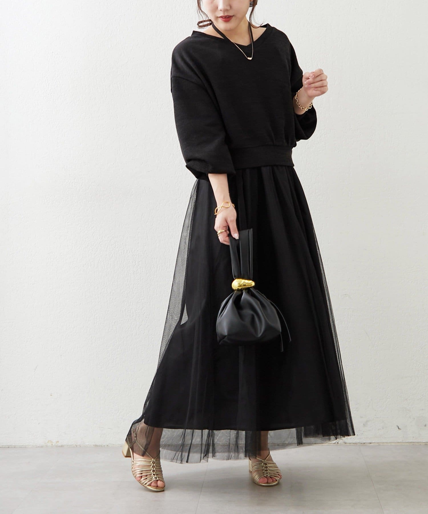 ※チュール素材のワンピースとなっておりますので、ペチコートのご着用をおすすめします。