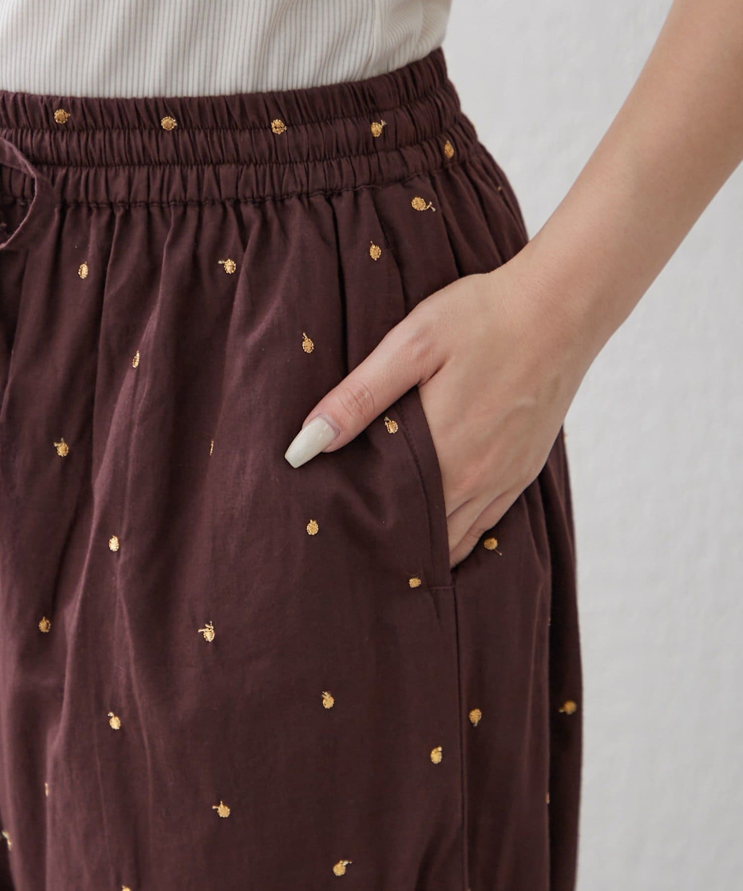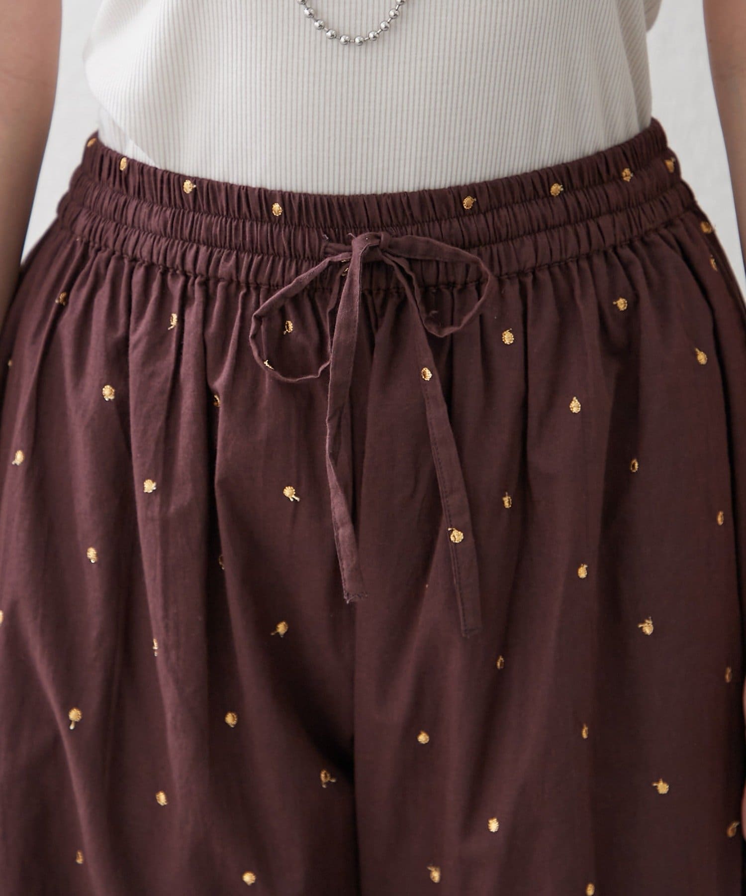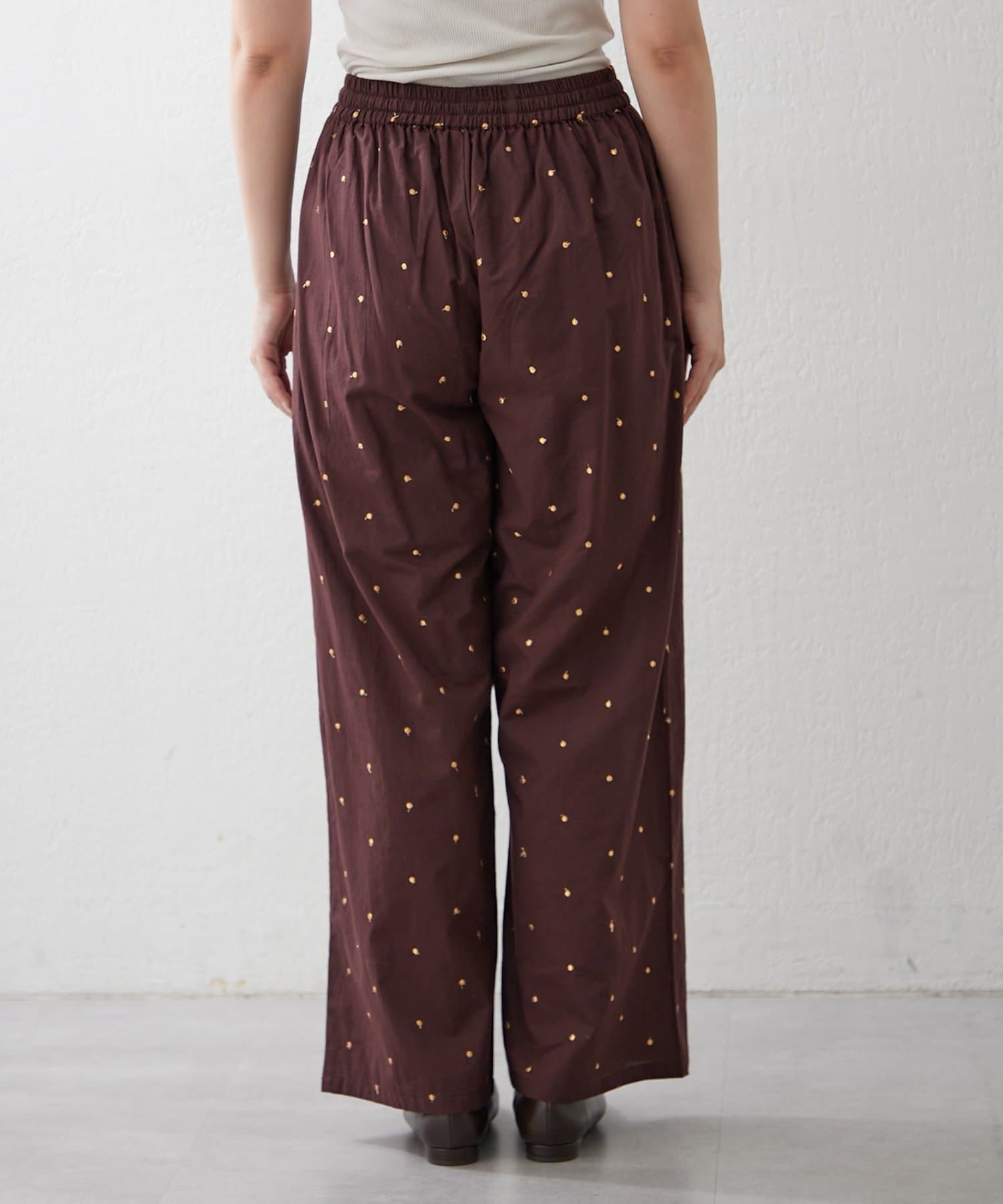 【nane】【軽い素材感のインド綿使用】ドット柄刺繍パンツ