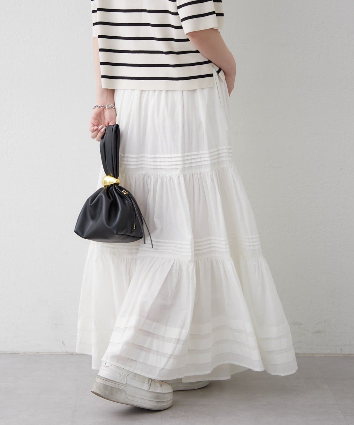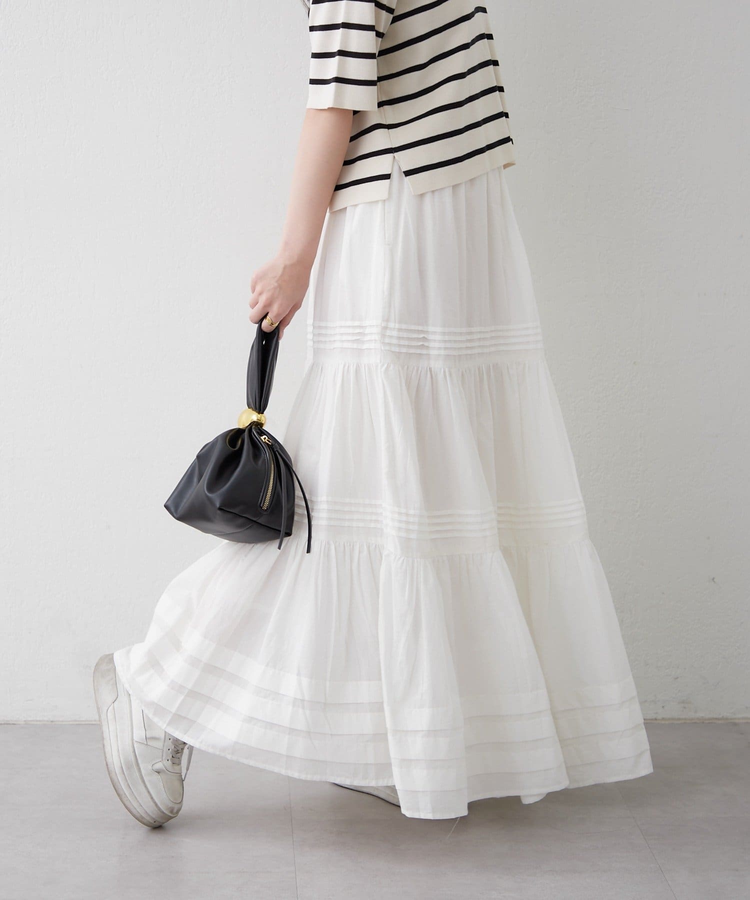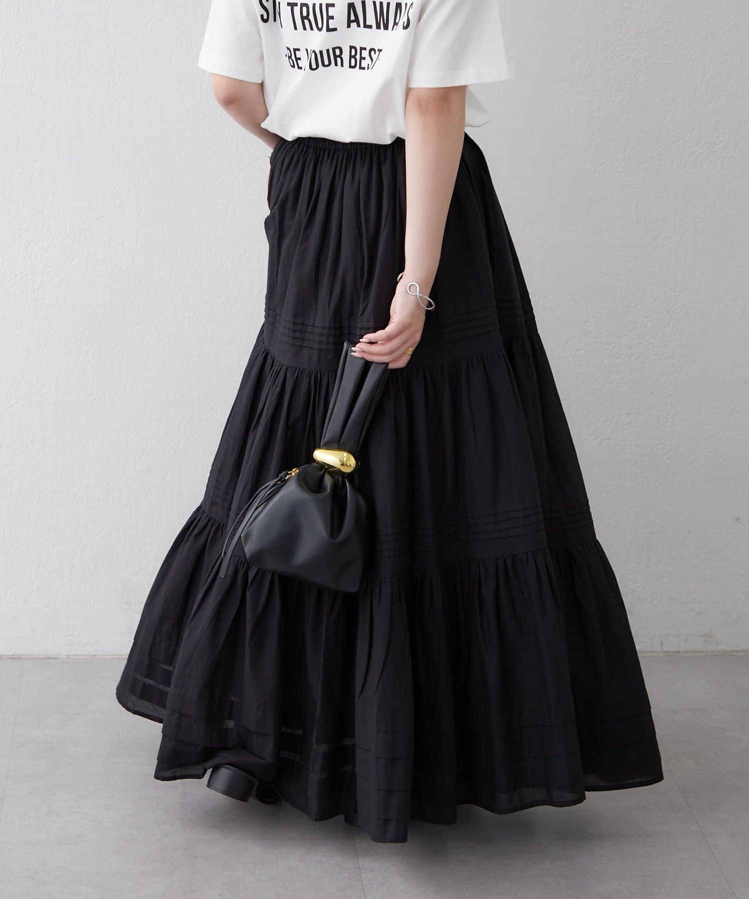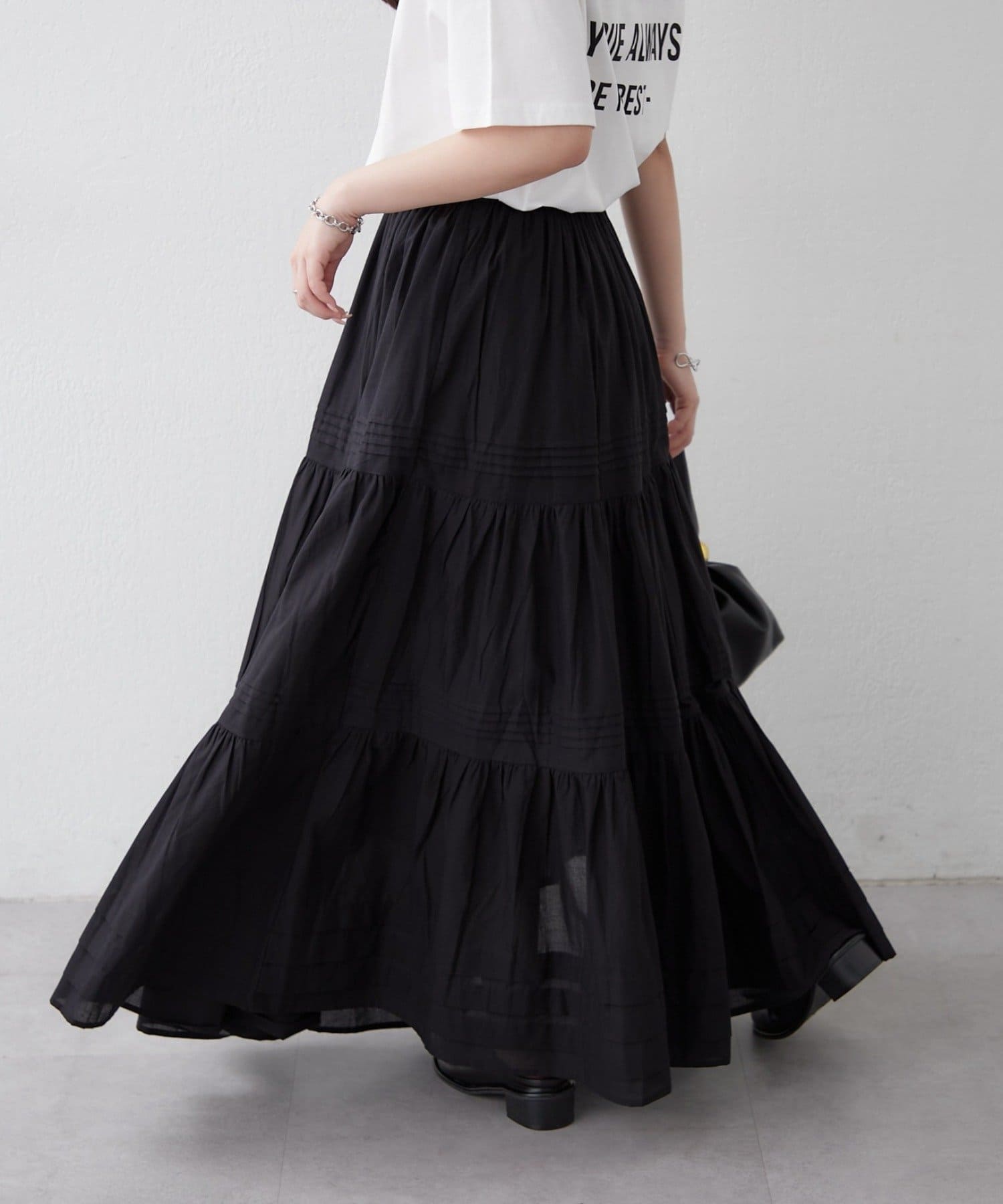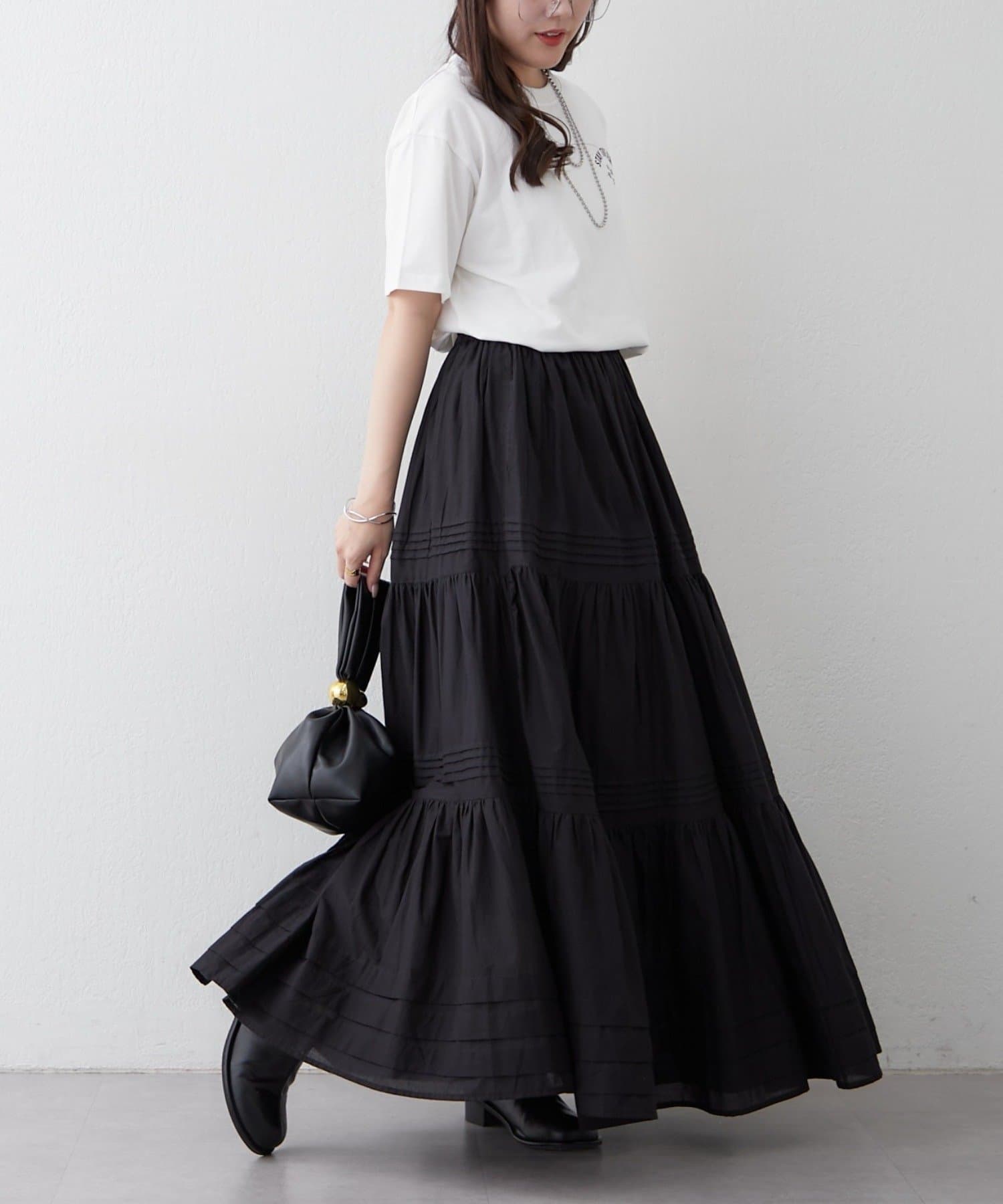 ・ふわっと広がるシルエットが華やかさをプラスするティアードスカート