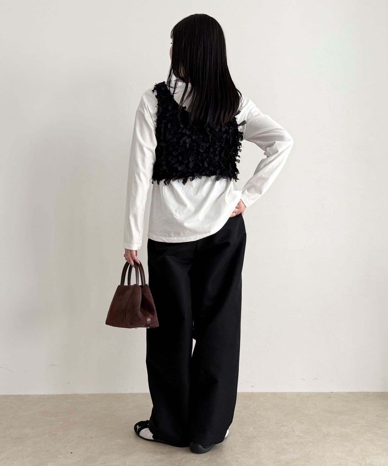・コンパクトながらレイヤードしやすいサイズ感でバランスよく着こなせます