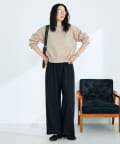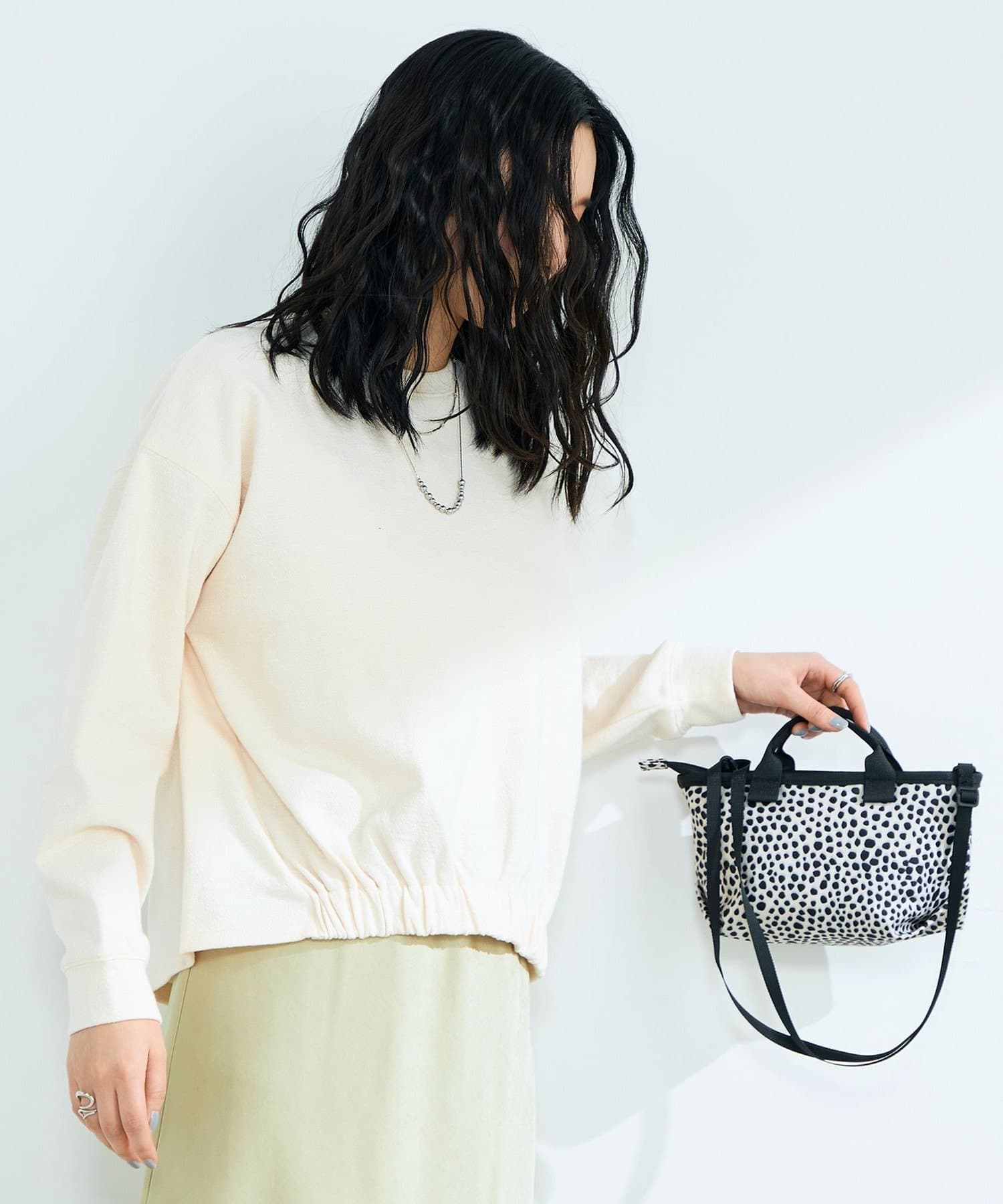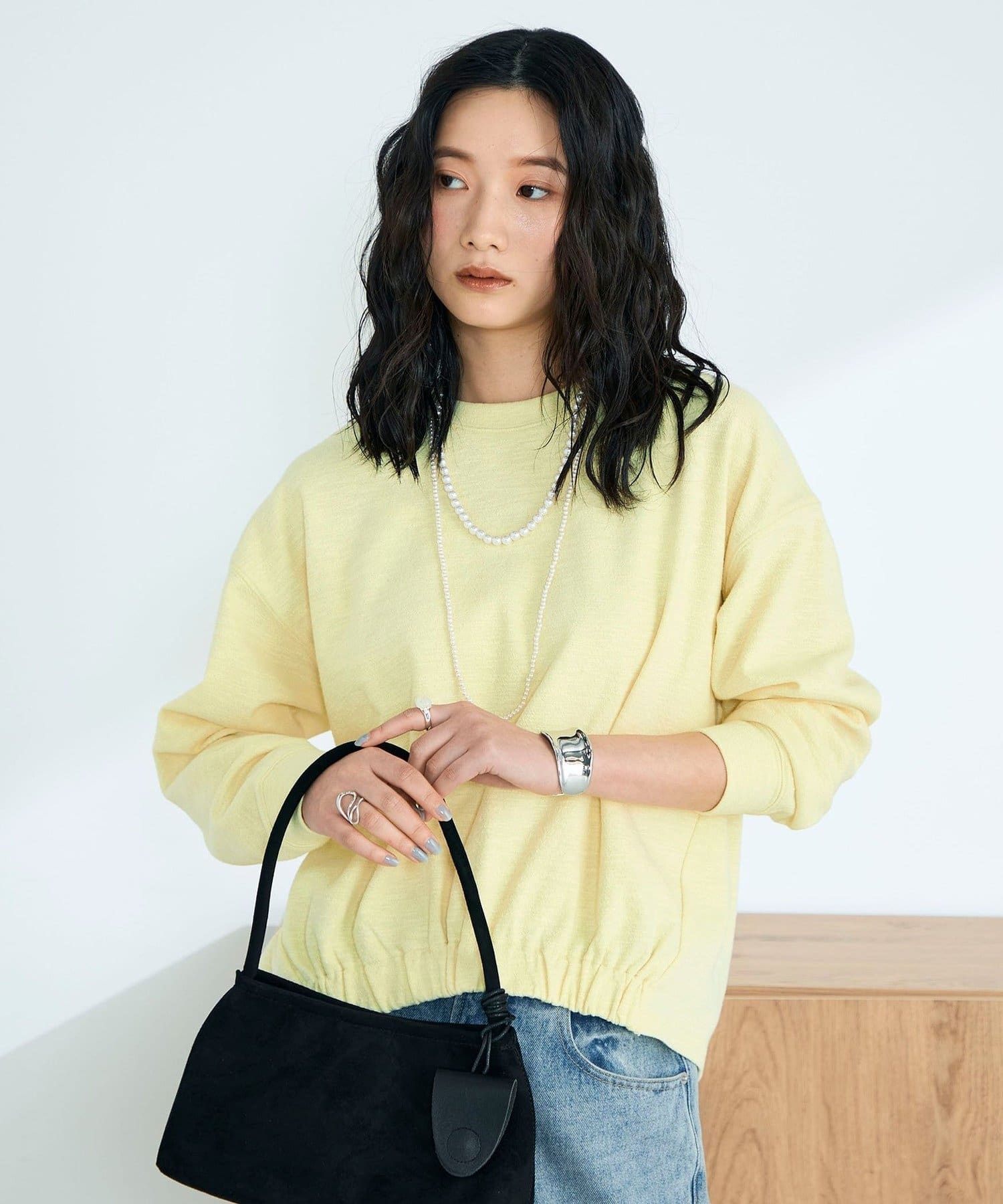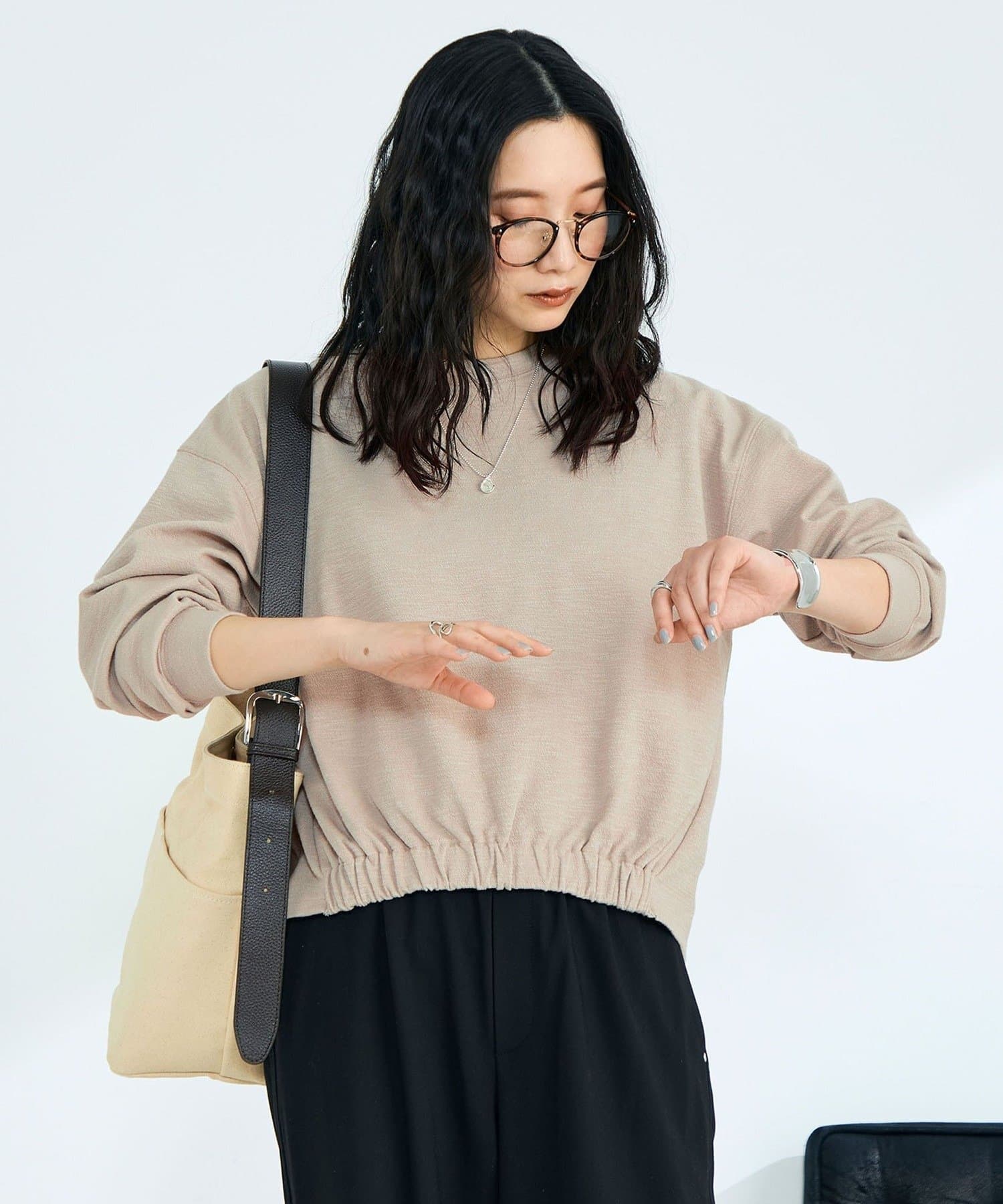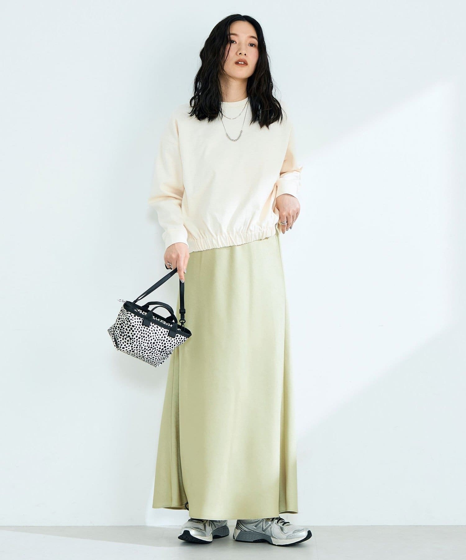 ・フロントのウエスト部分にギャザーのデザインを施し、インしなくてもバランスよく決まるシルエット