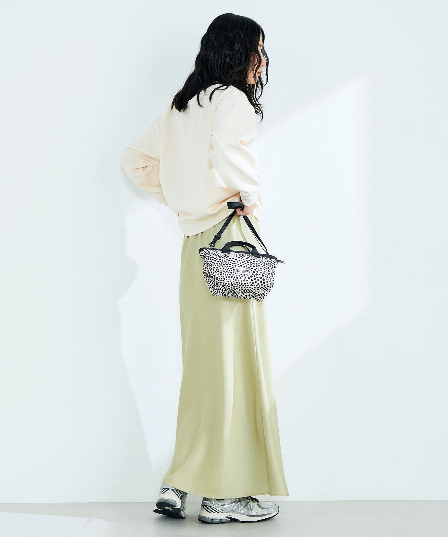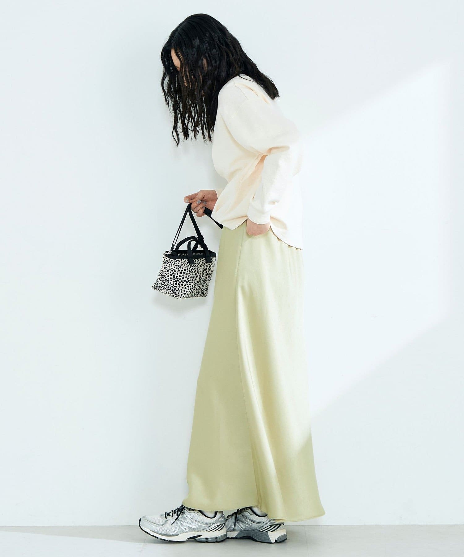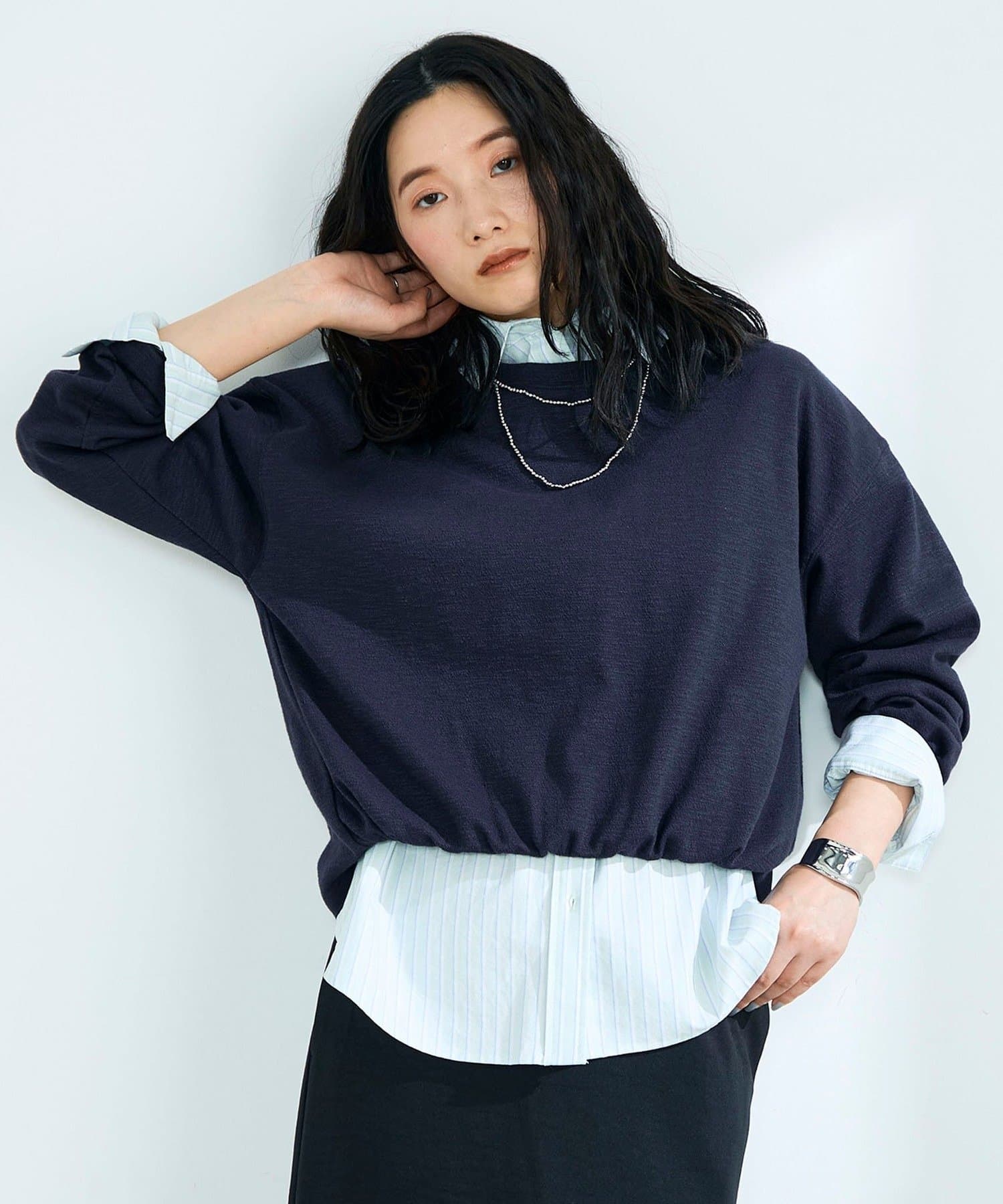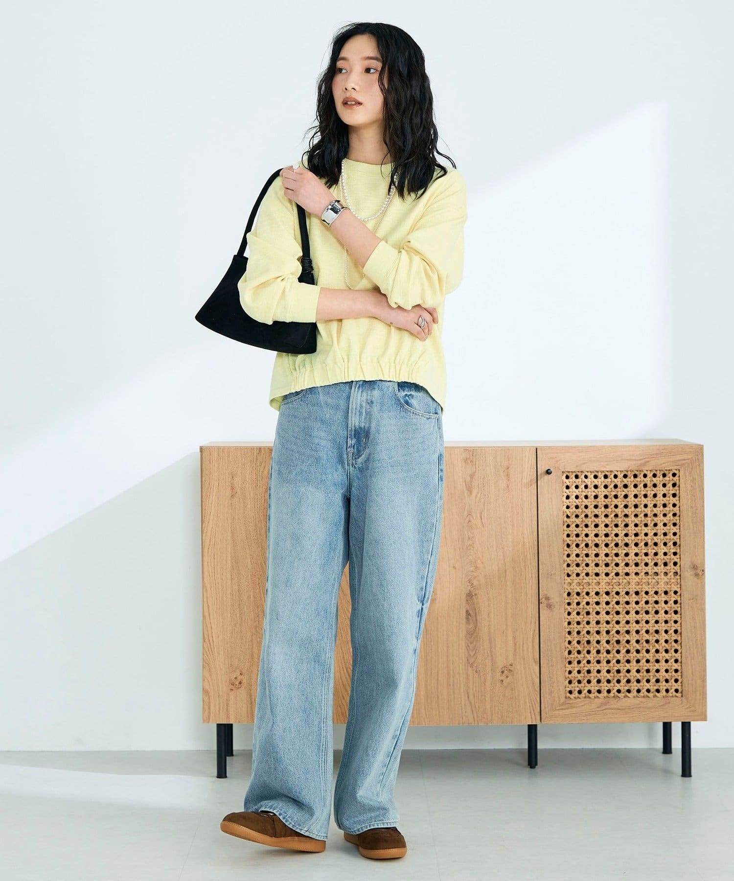 ・フロントのウエスト部分にギャザーのデザインを施し、インしなくてもバランスよく決まるシルエット