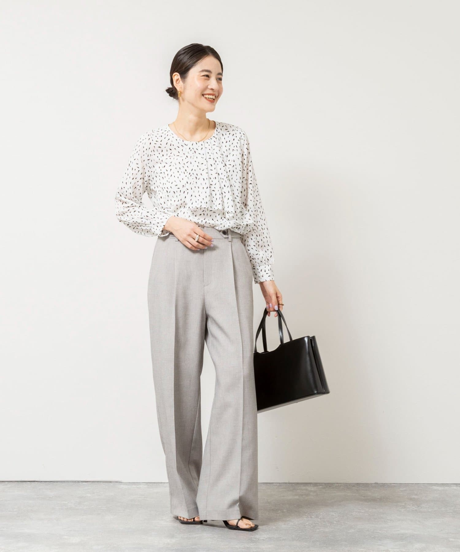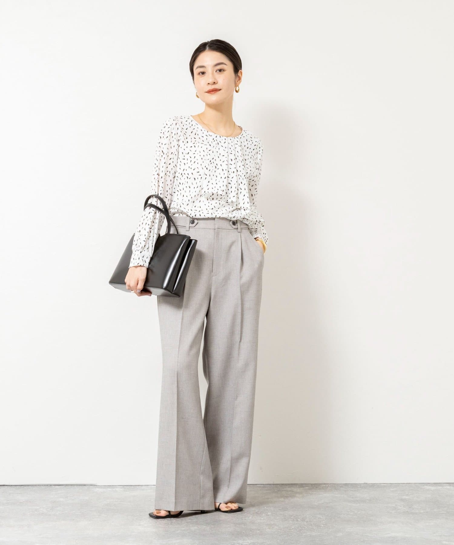 ウォッシャブルファンクショナルジョーゼットプリントタックフレアーブラウス