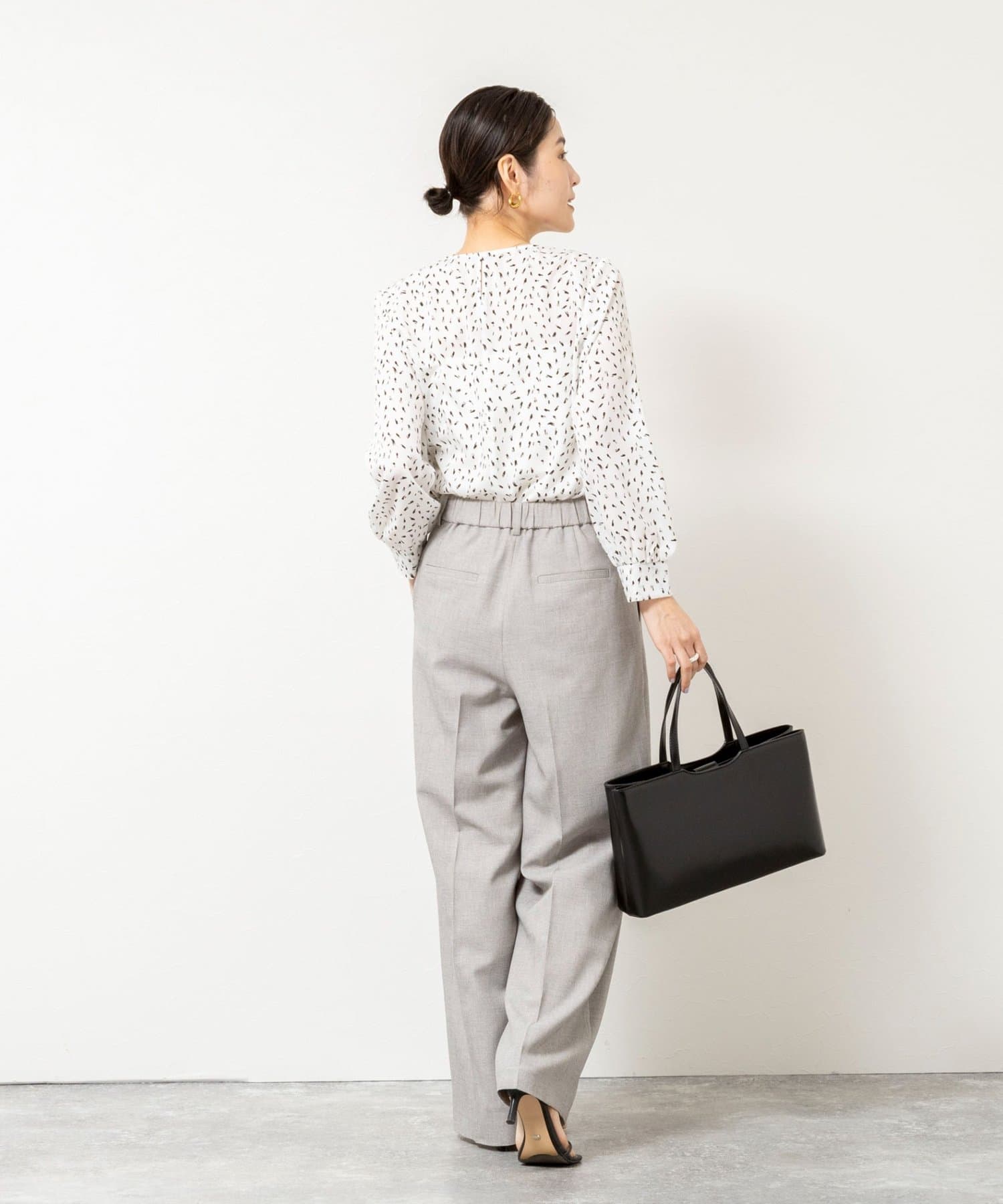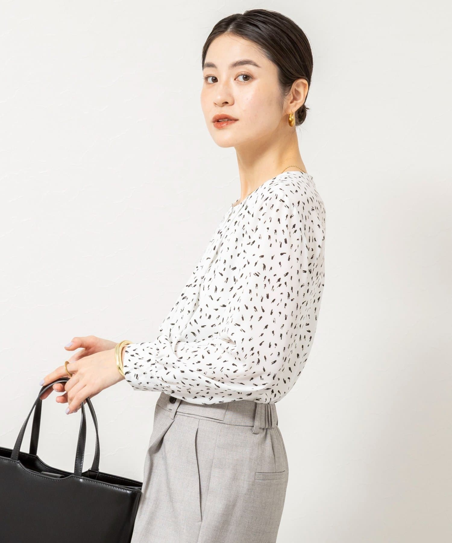 • NOLLEY'S(ノーリーズ) ウォッシャブルファンクショナルジョーゼットプリントタックフレアーブラウス