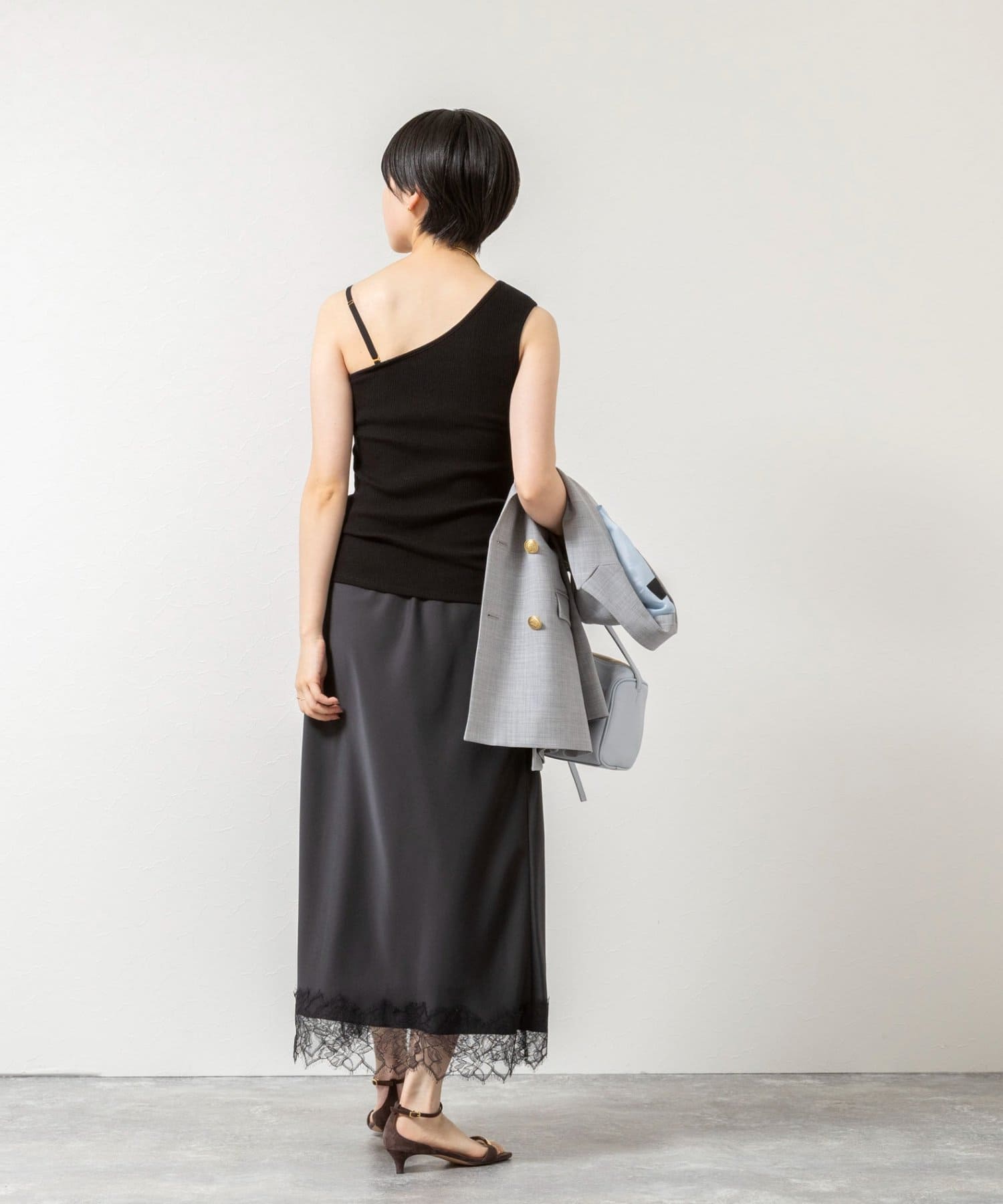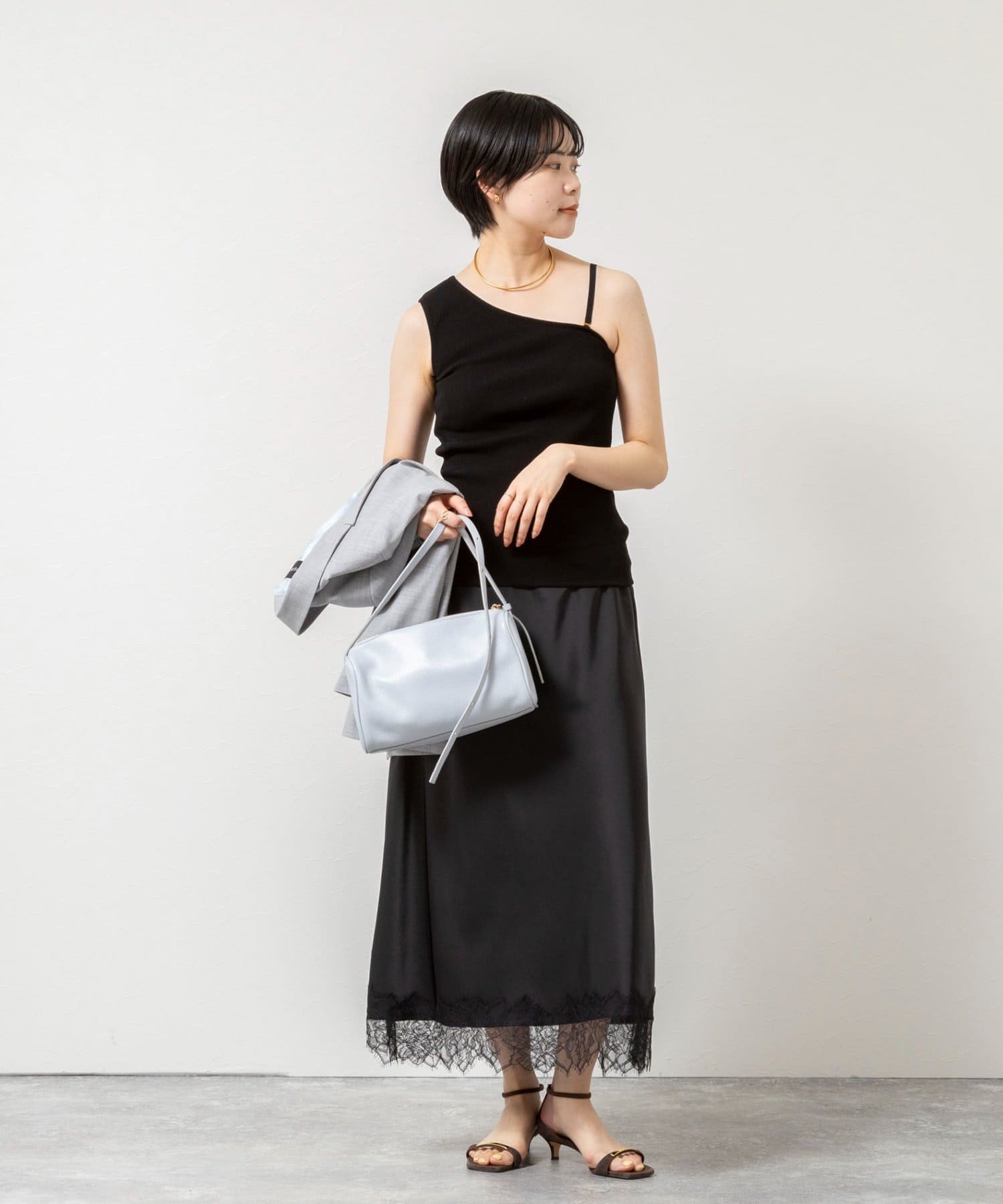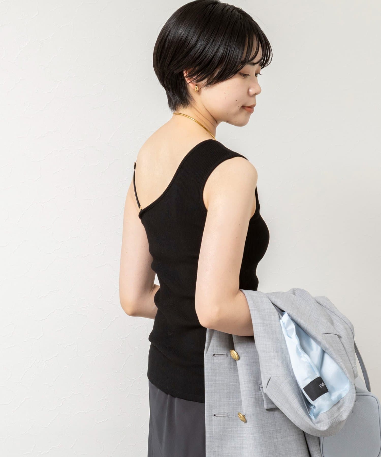 ・シアーシャツやジャケットのインナーにあわせて、スタイリッシュなコーデに仕上がる1枚