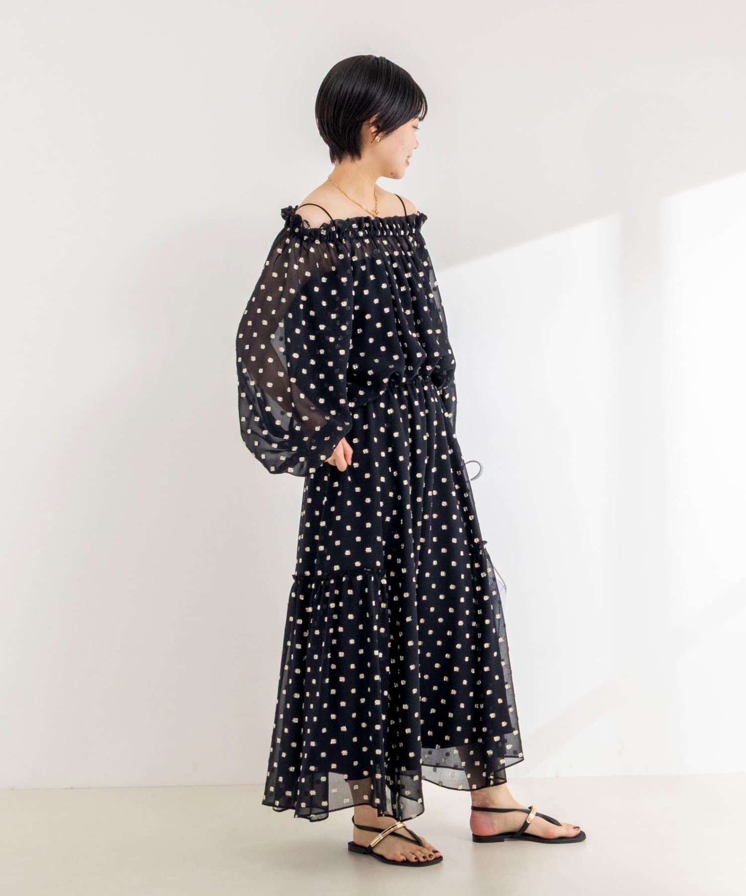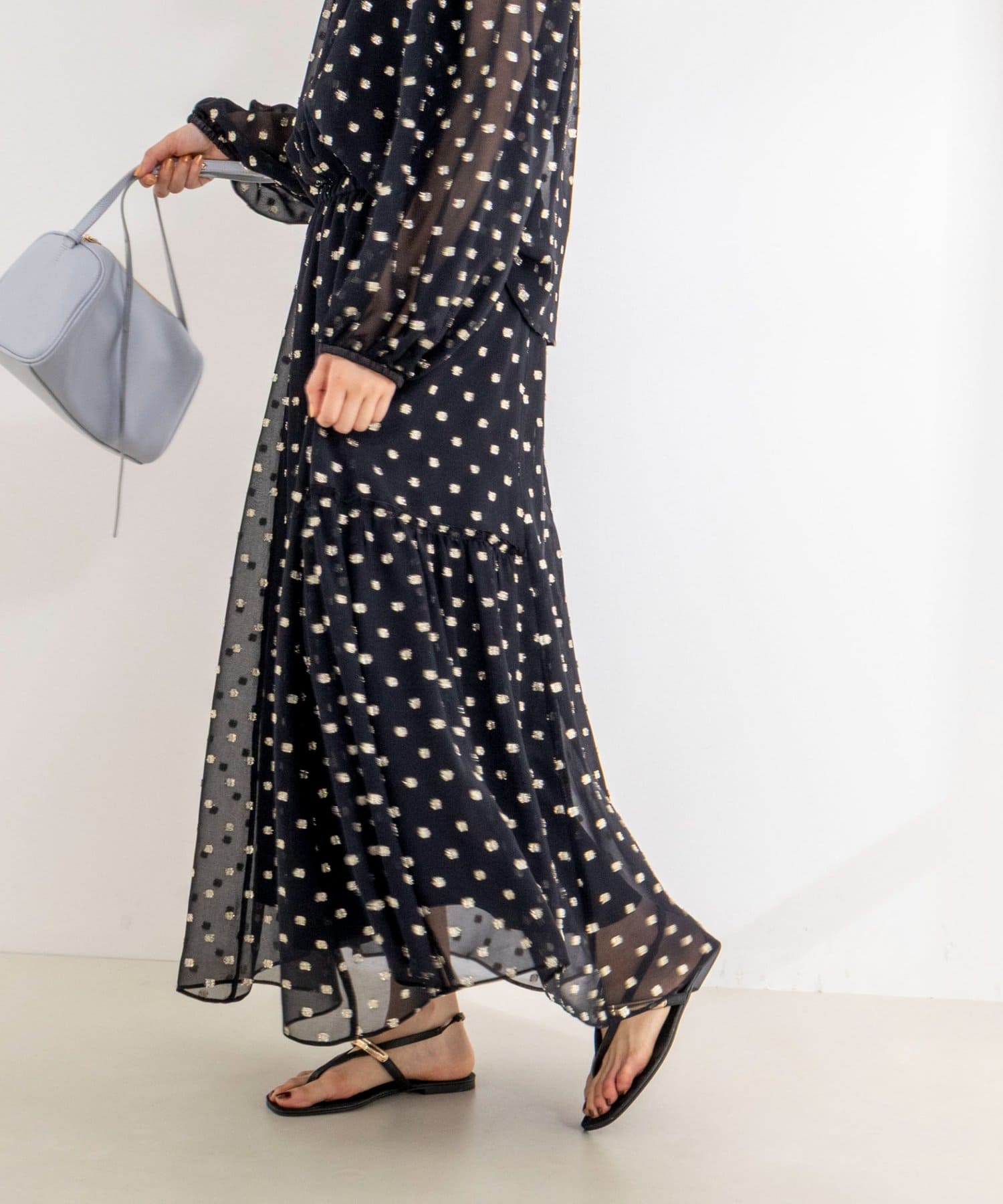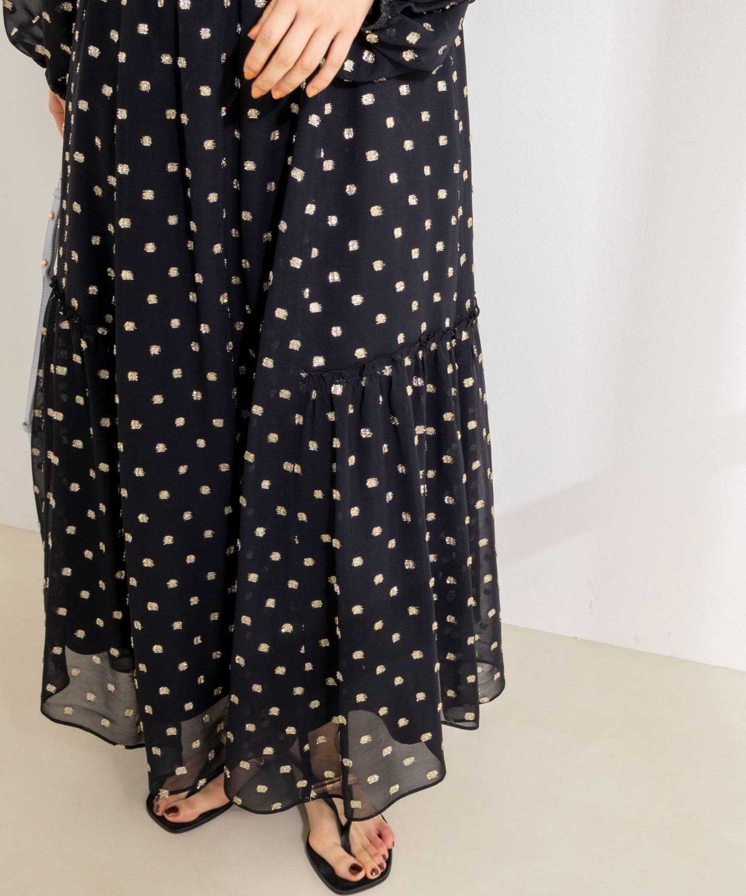 ・ジョーゼット素材に金糸のドット柄のカットジャガードを施した、華やかな主役アイテム