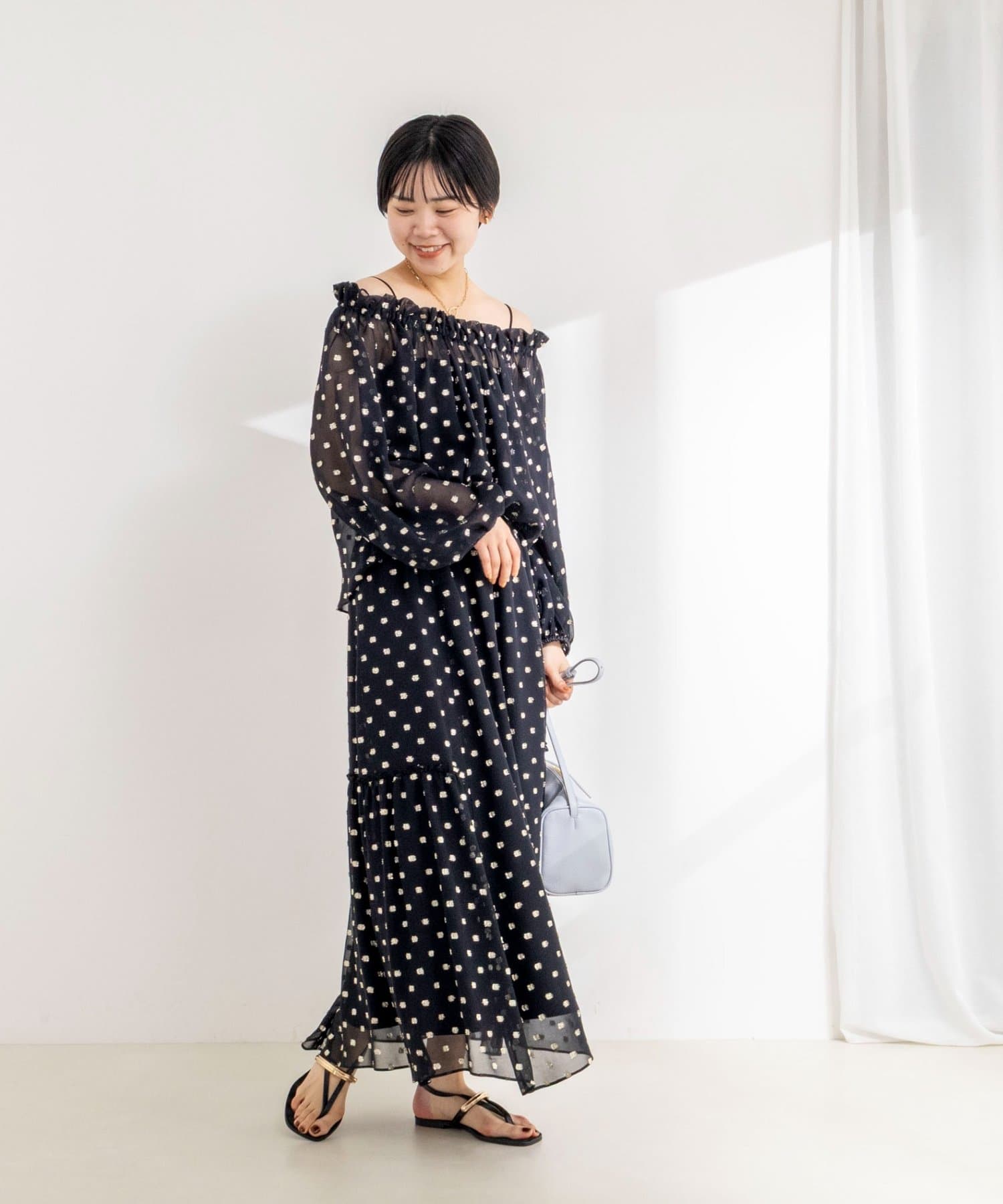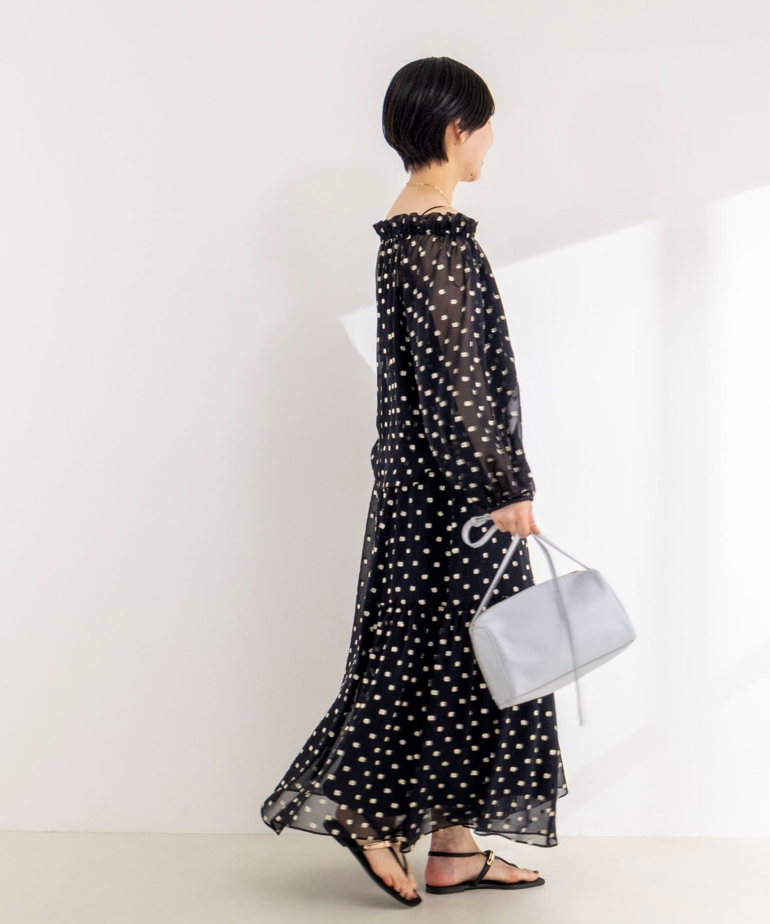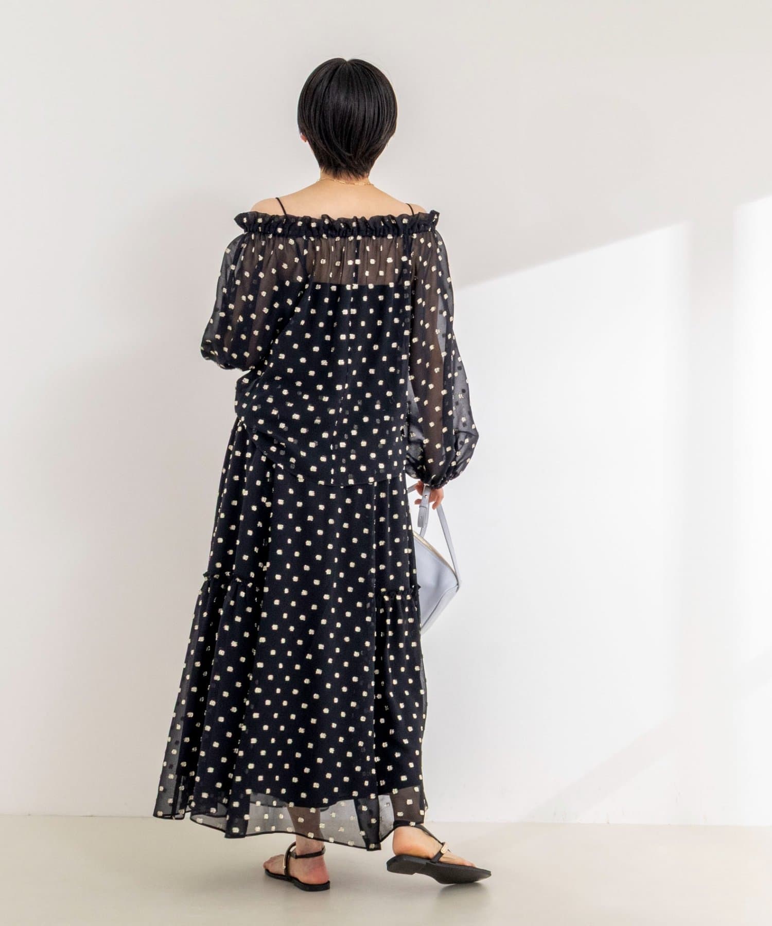 ・ジョーゼット素材に金糸のドット柄のカットジャガードを施した、華やかな主役アイテム