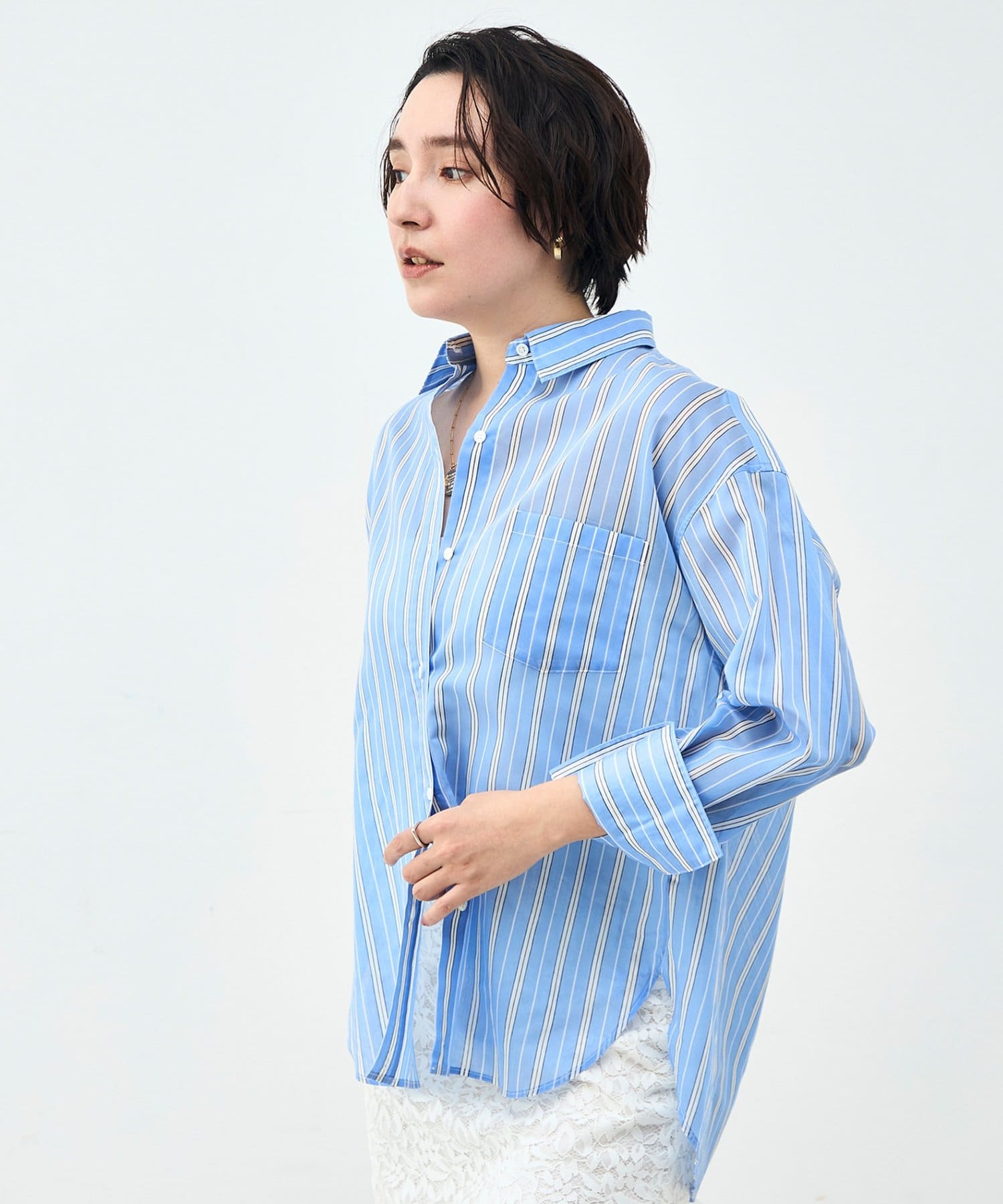 TOP > NOLLEY'S > レディース > トップス > シャツ/ブラウス(ボタン) > ウォッシャブルMARSALAシアーストライプ3WAYシャツ