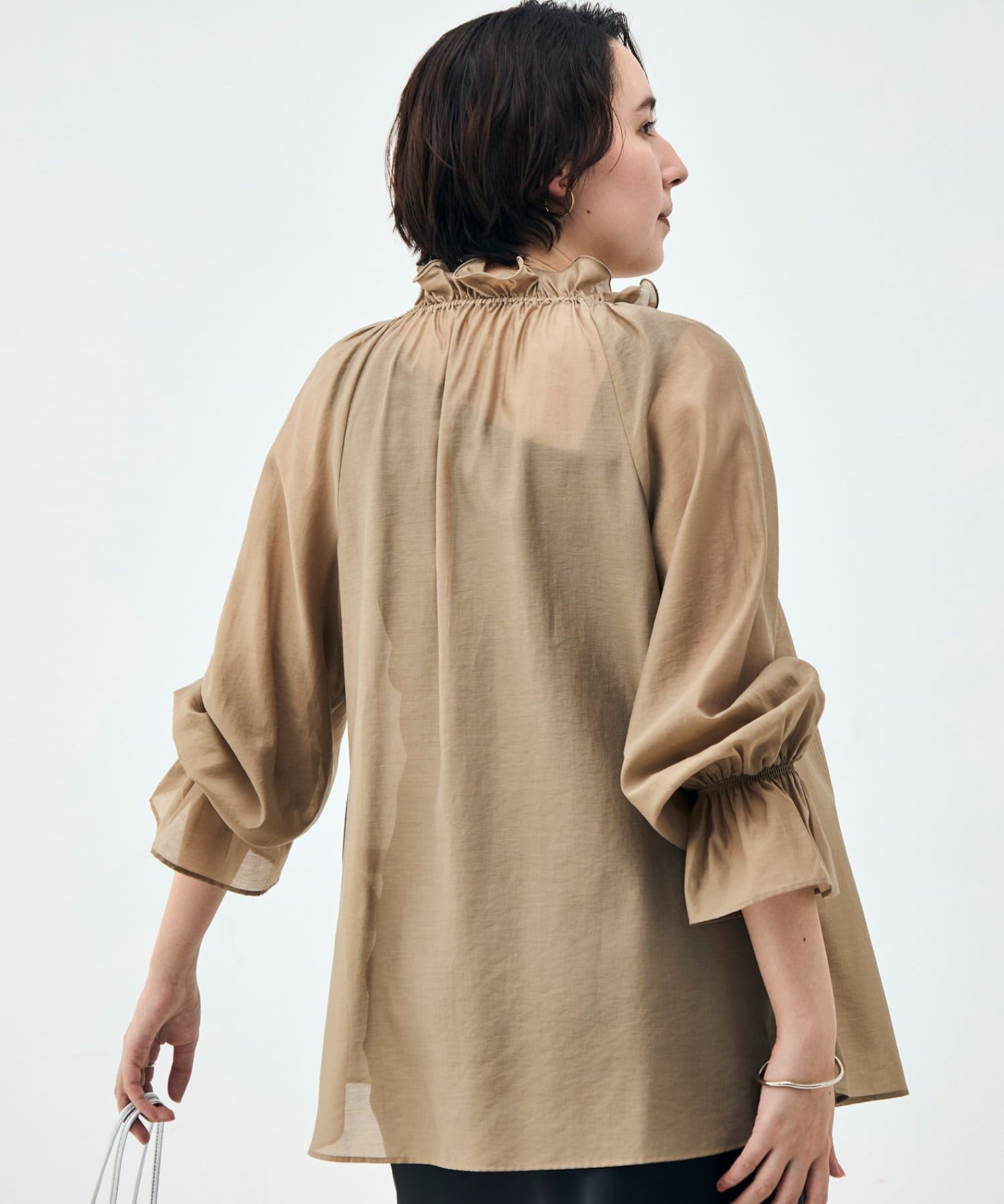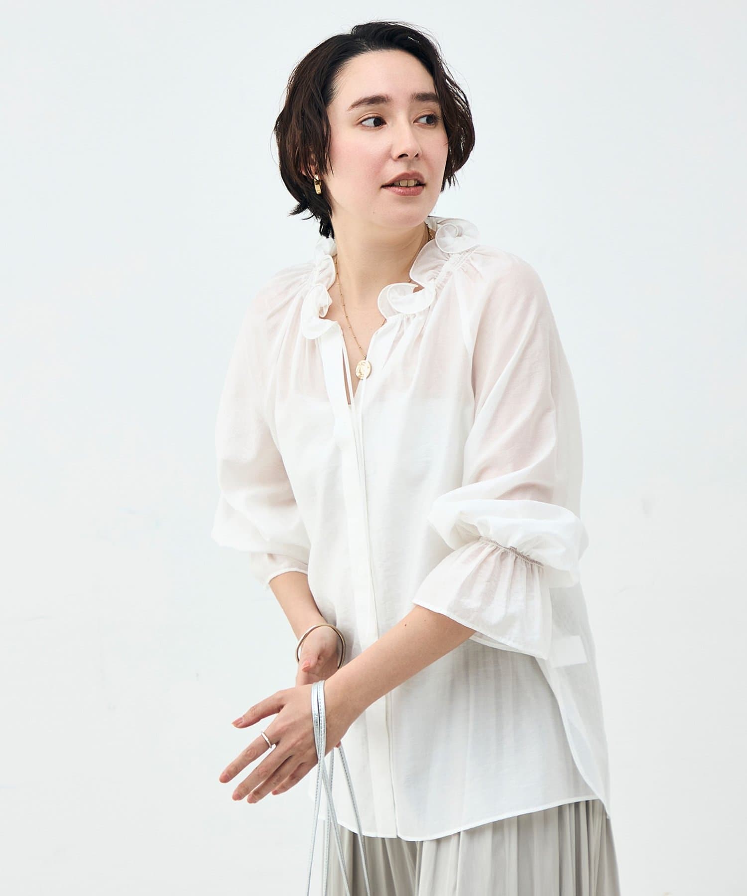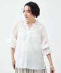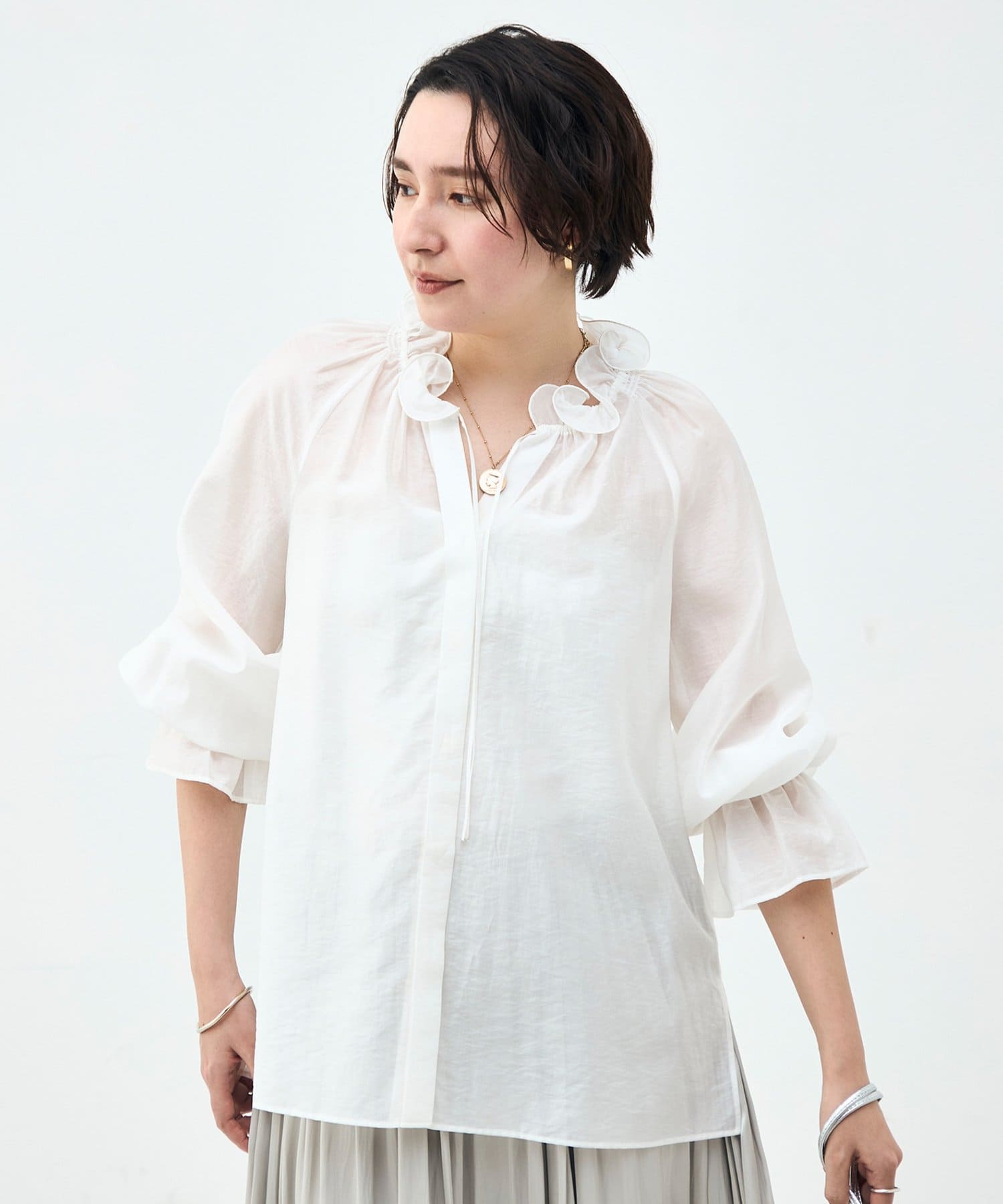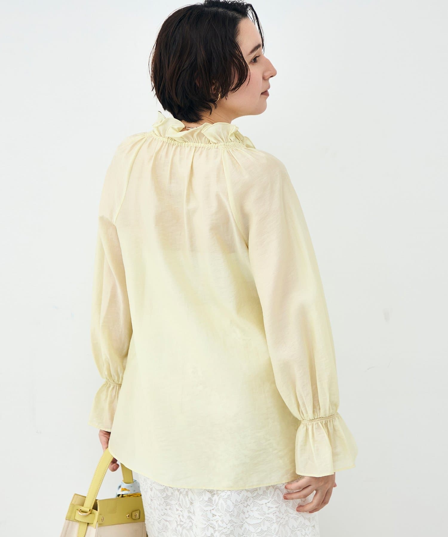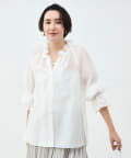 ウォッシャブルシアーオーガンジーフリルネックブラウス