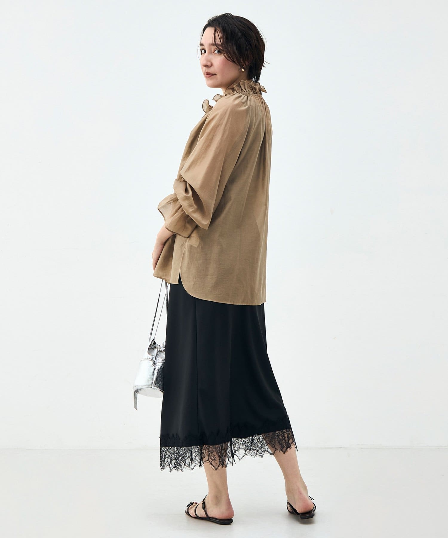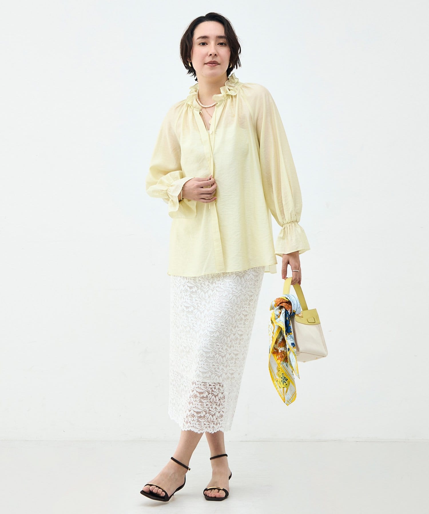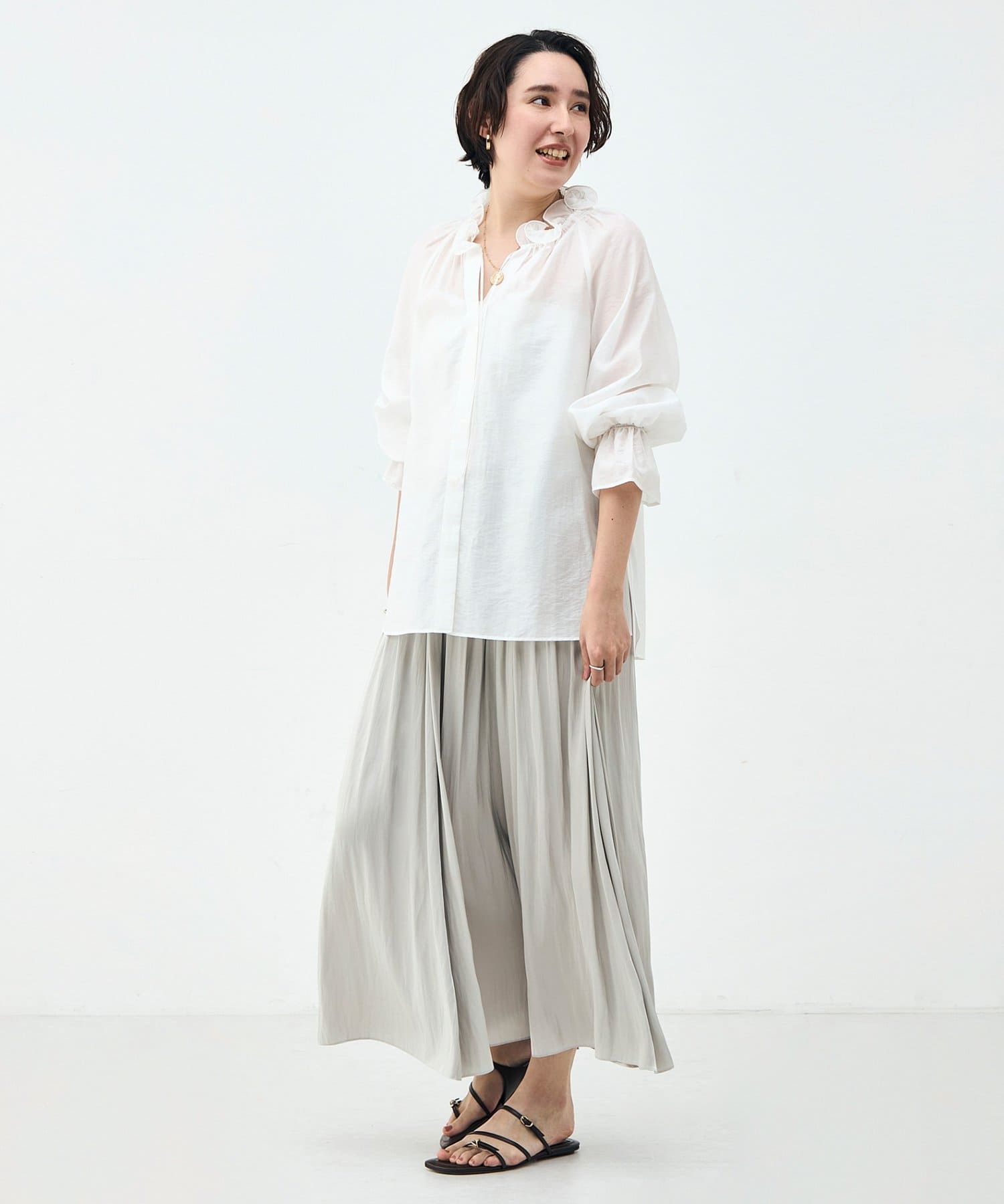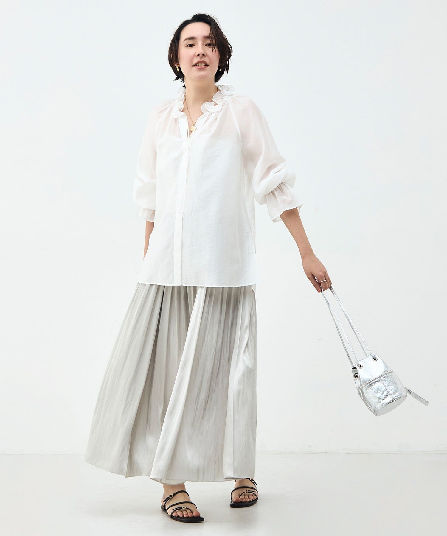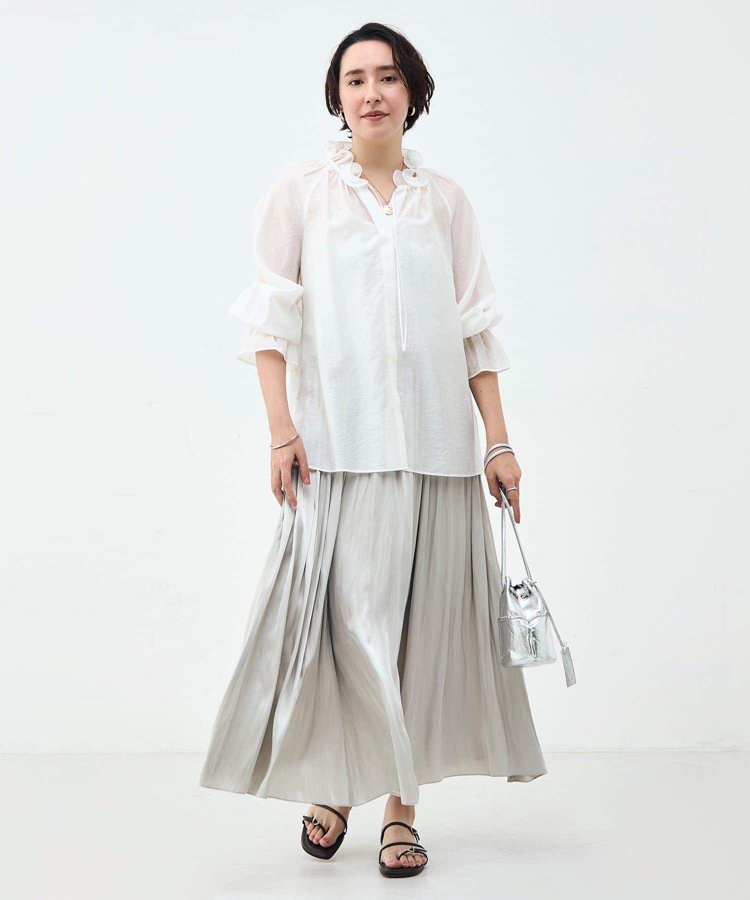 ウォッシャブルシアーオーガンジーフリルネックブラウス