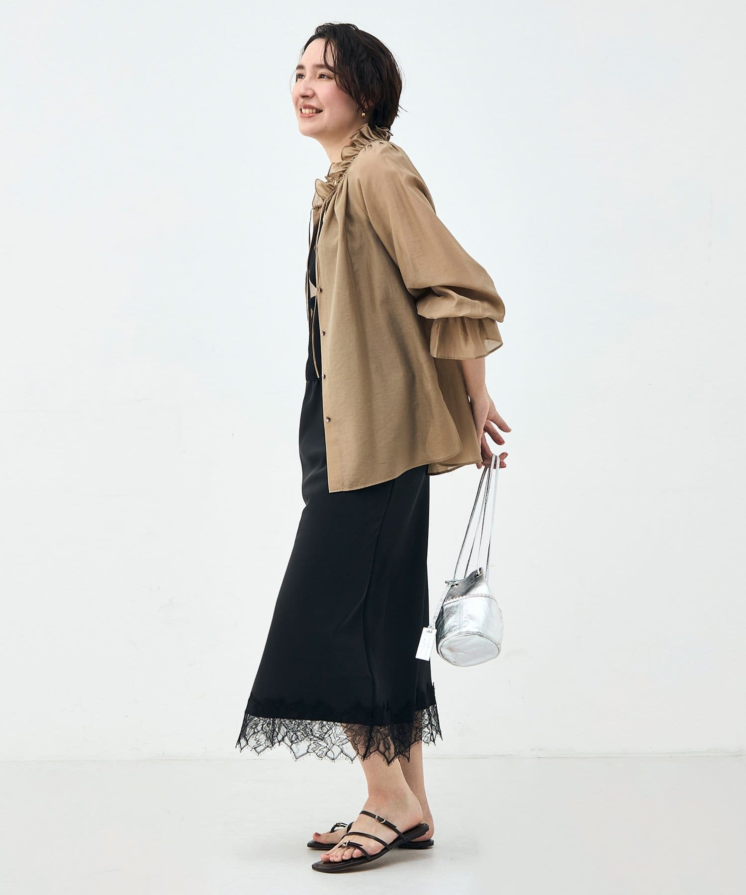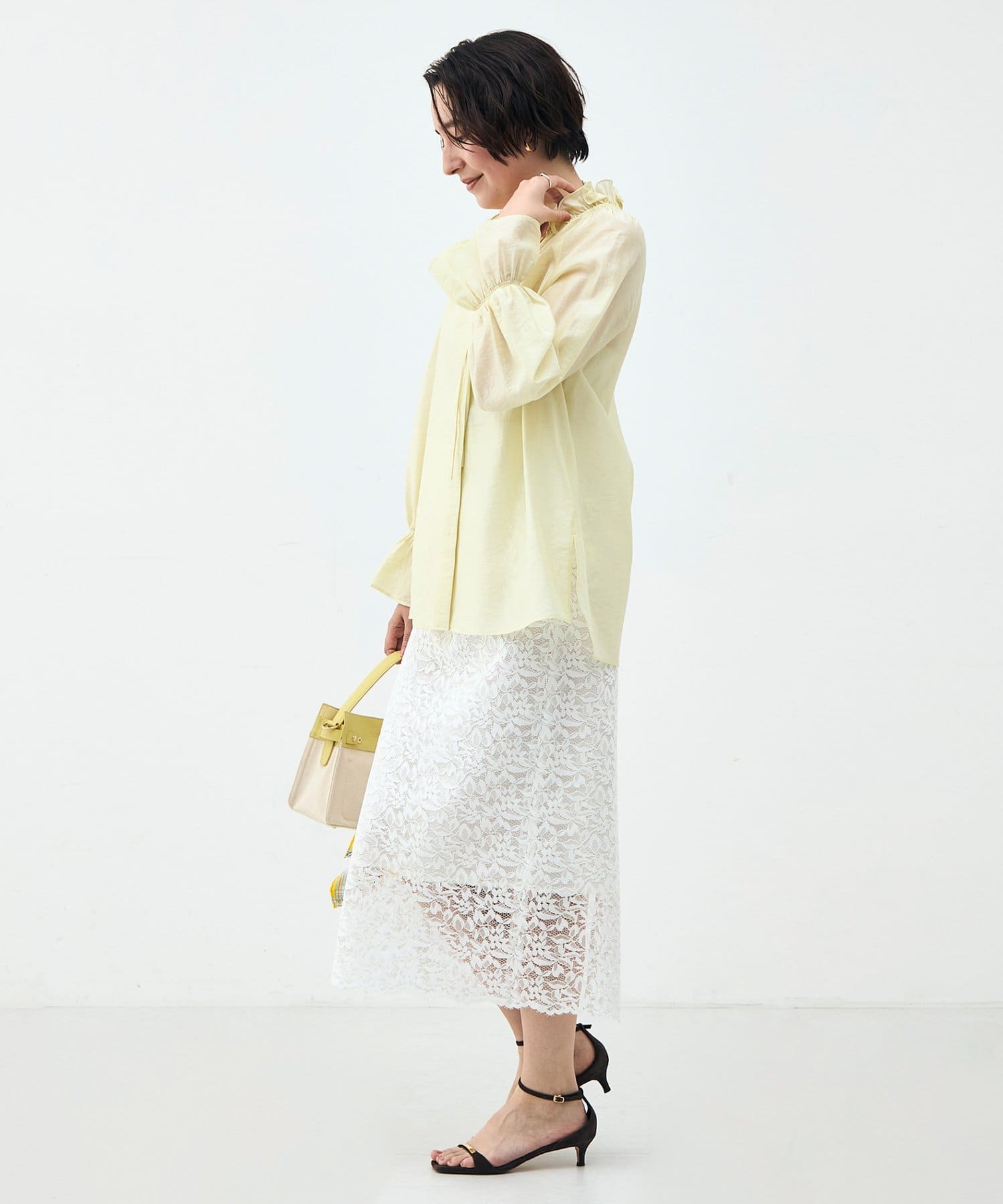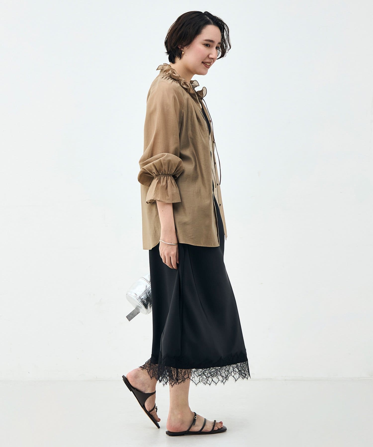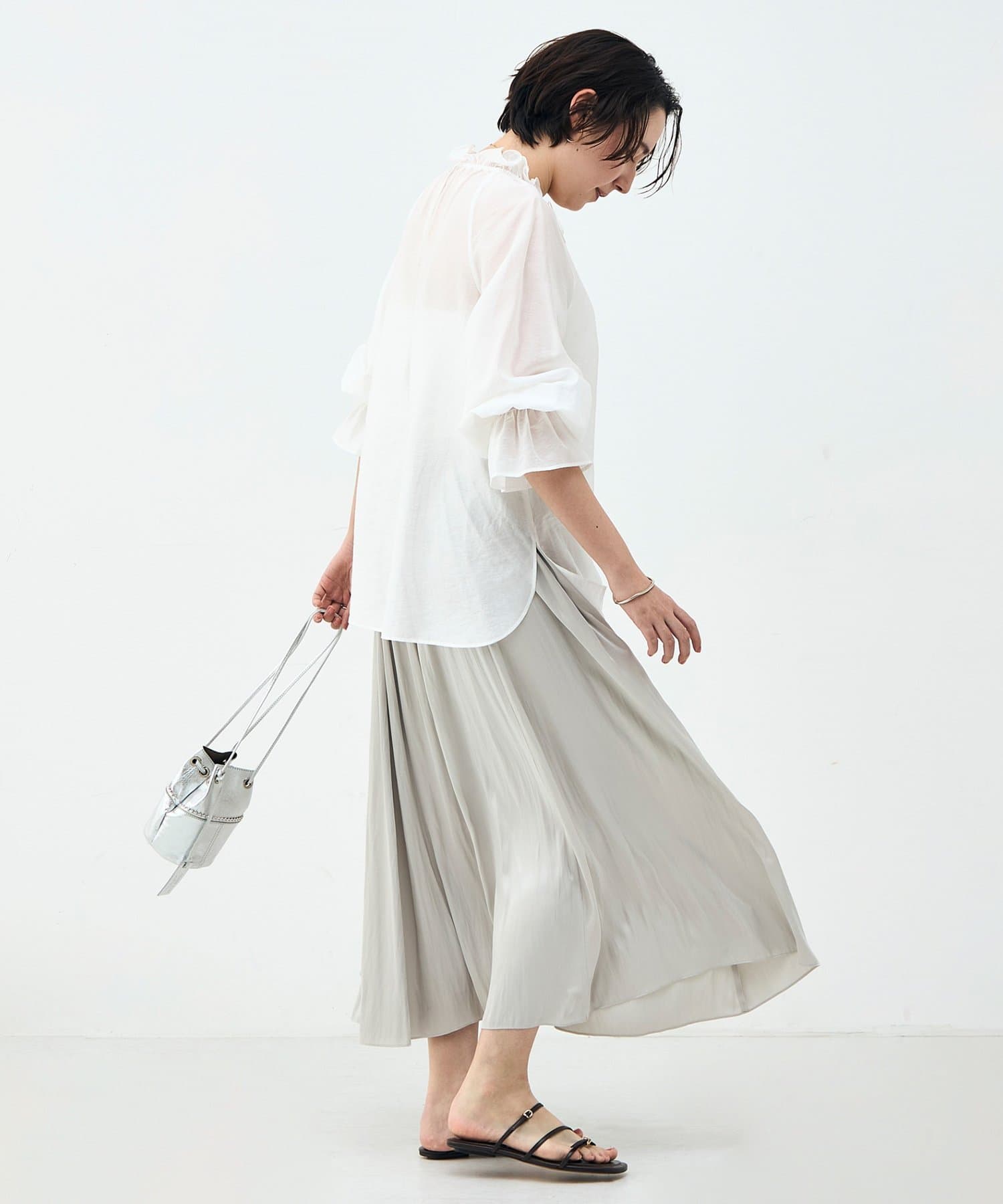 ウォッシャブルシアーオーガンジーフリルネックブラウス