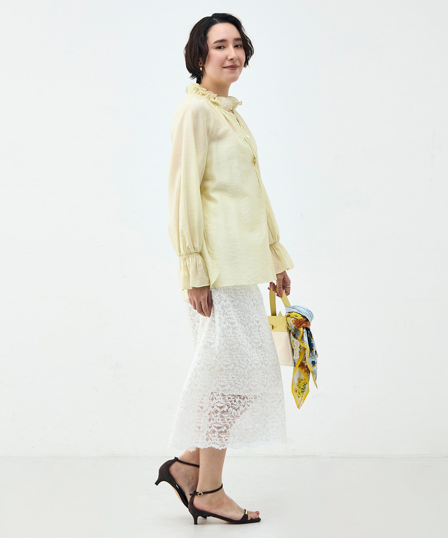 • NOLLEY'S(ノーリーズ) ウォッシャブルシアーオーガンジーフリルネックブラウス