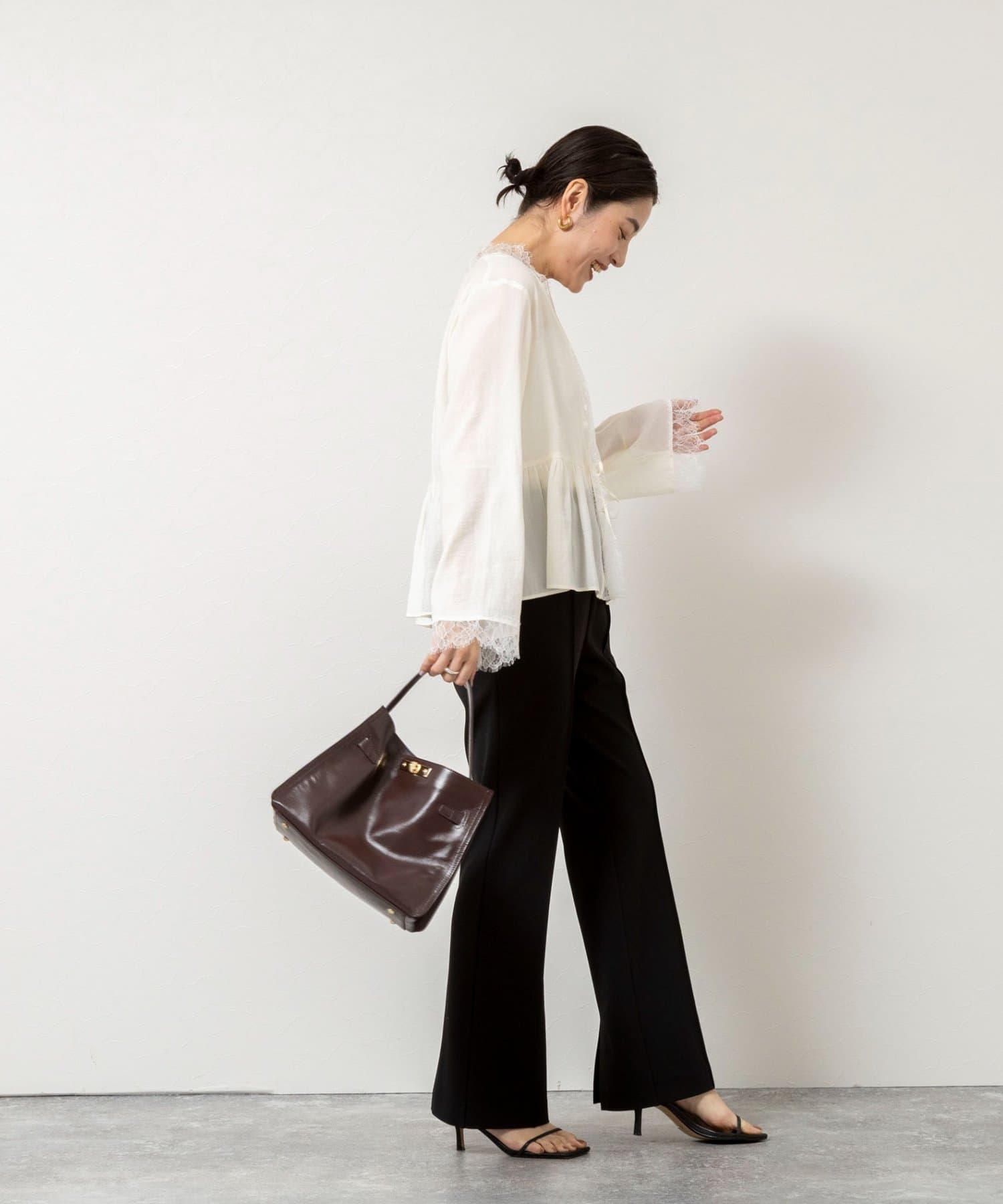 ・好評のカットジョーゼット素材を使用したスリットパンツ