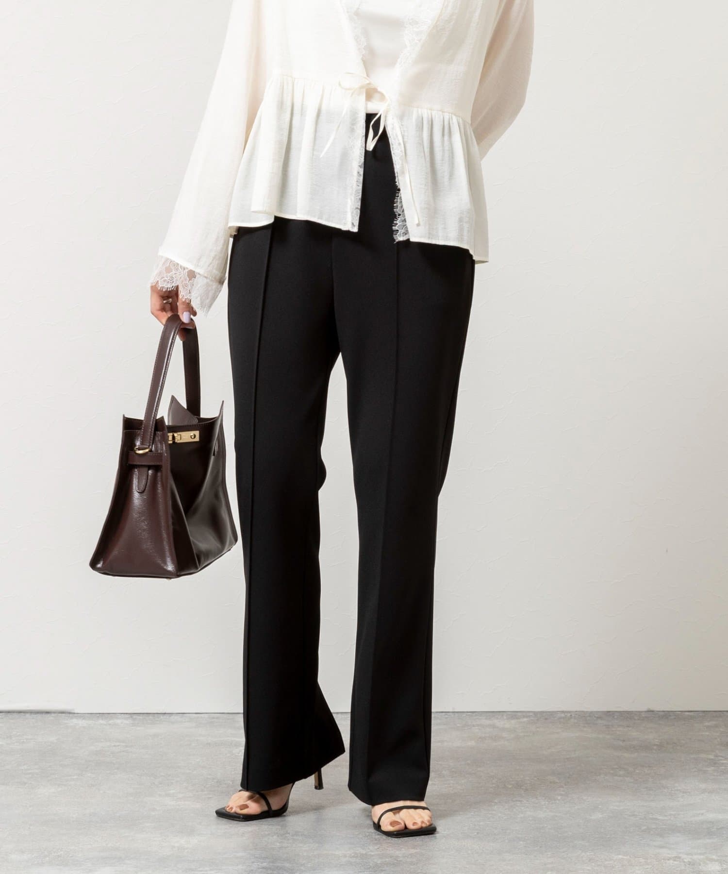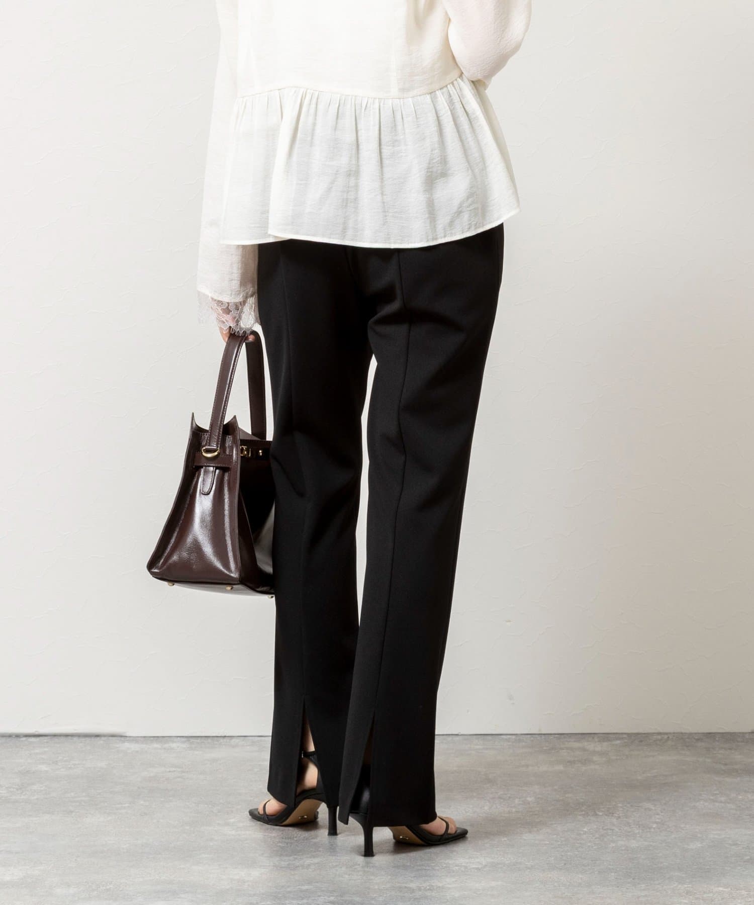 ウォッシャブルカットジョーゼットスリットパンツ