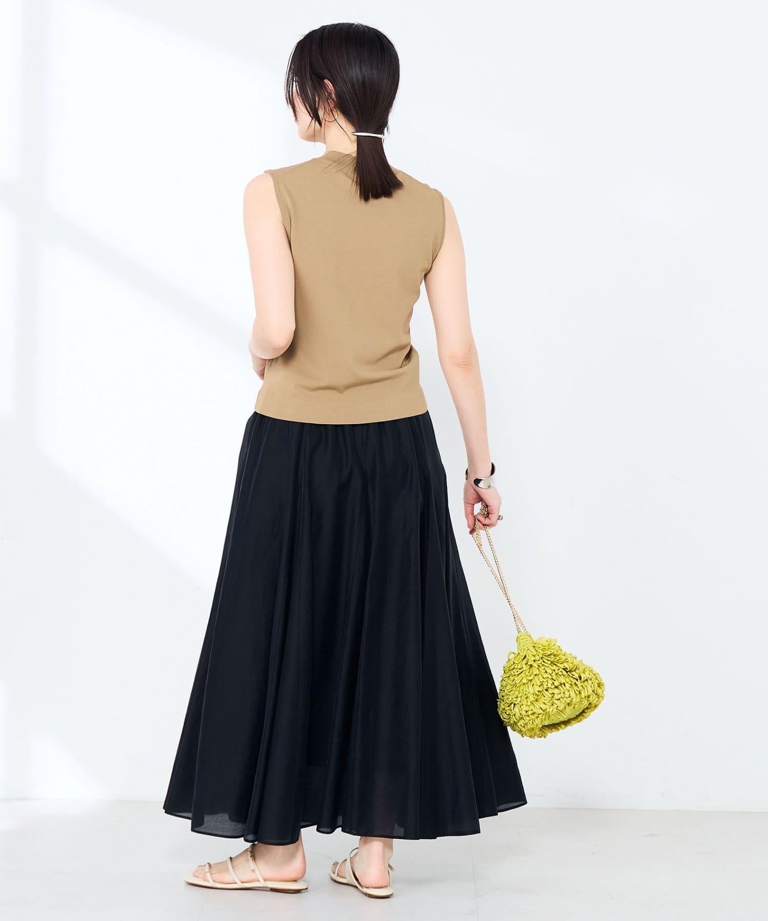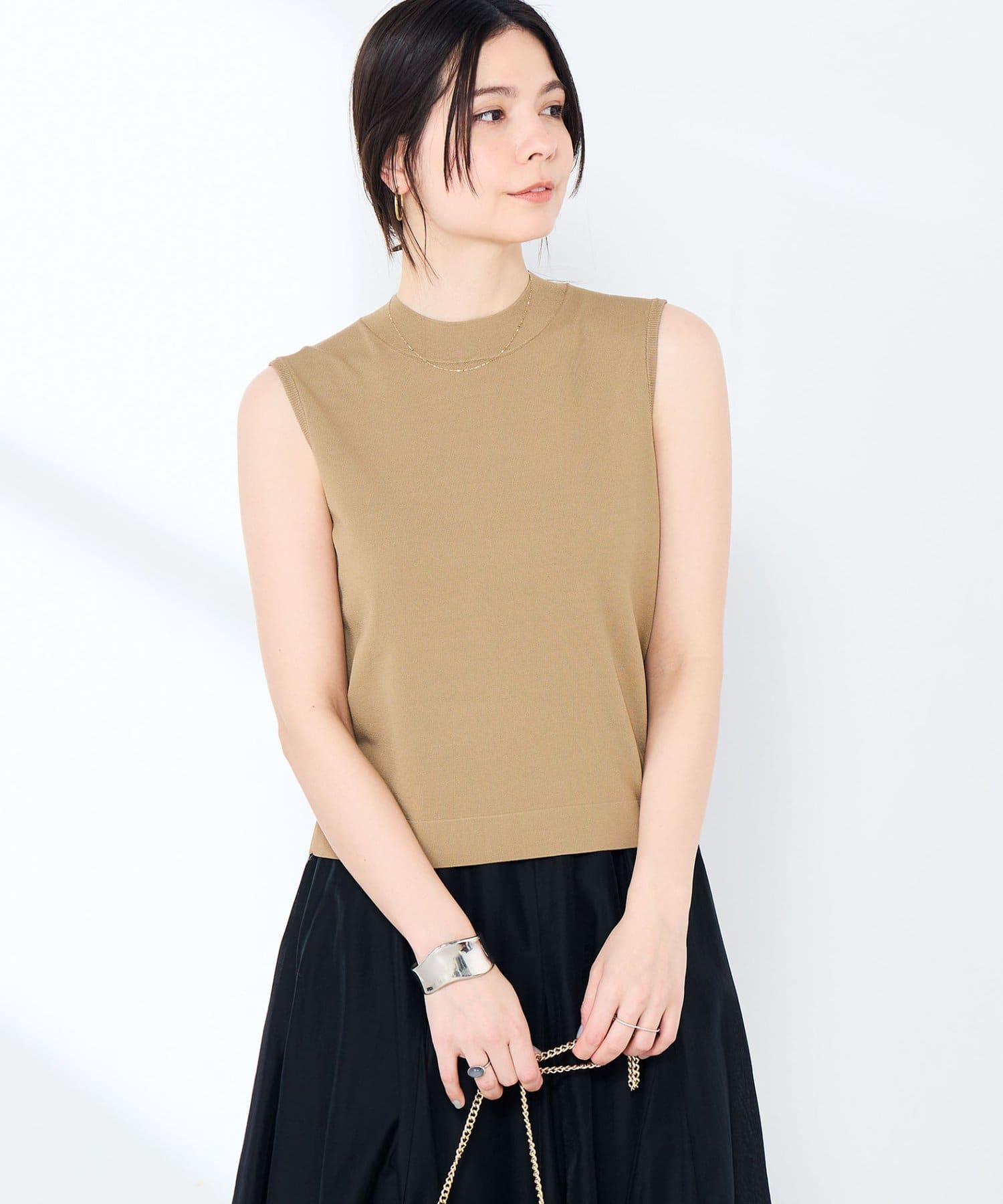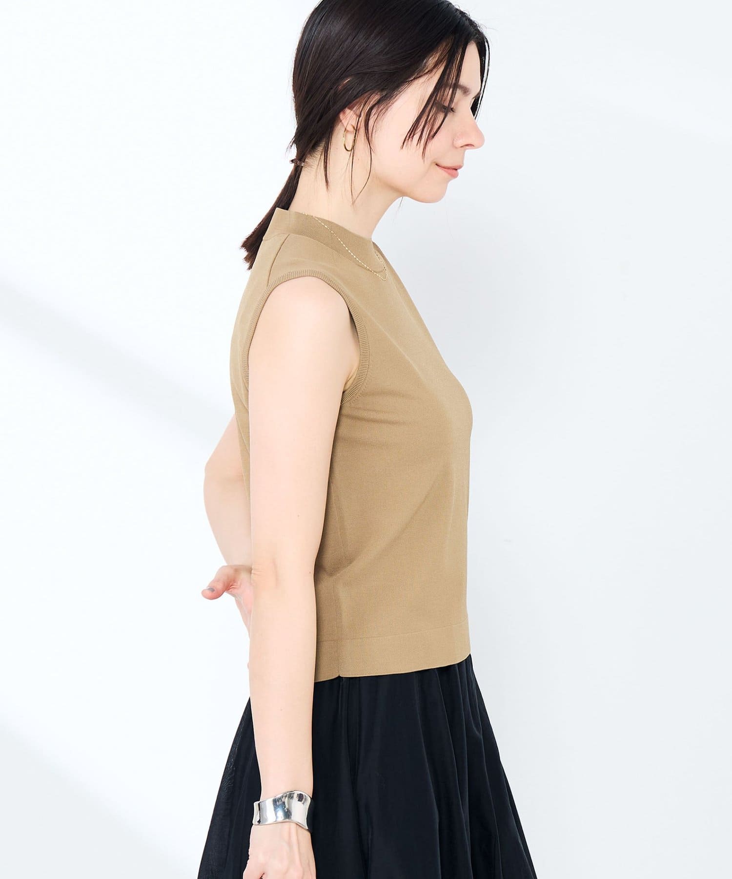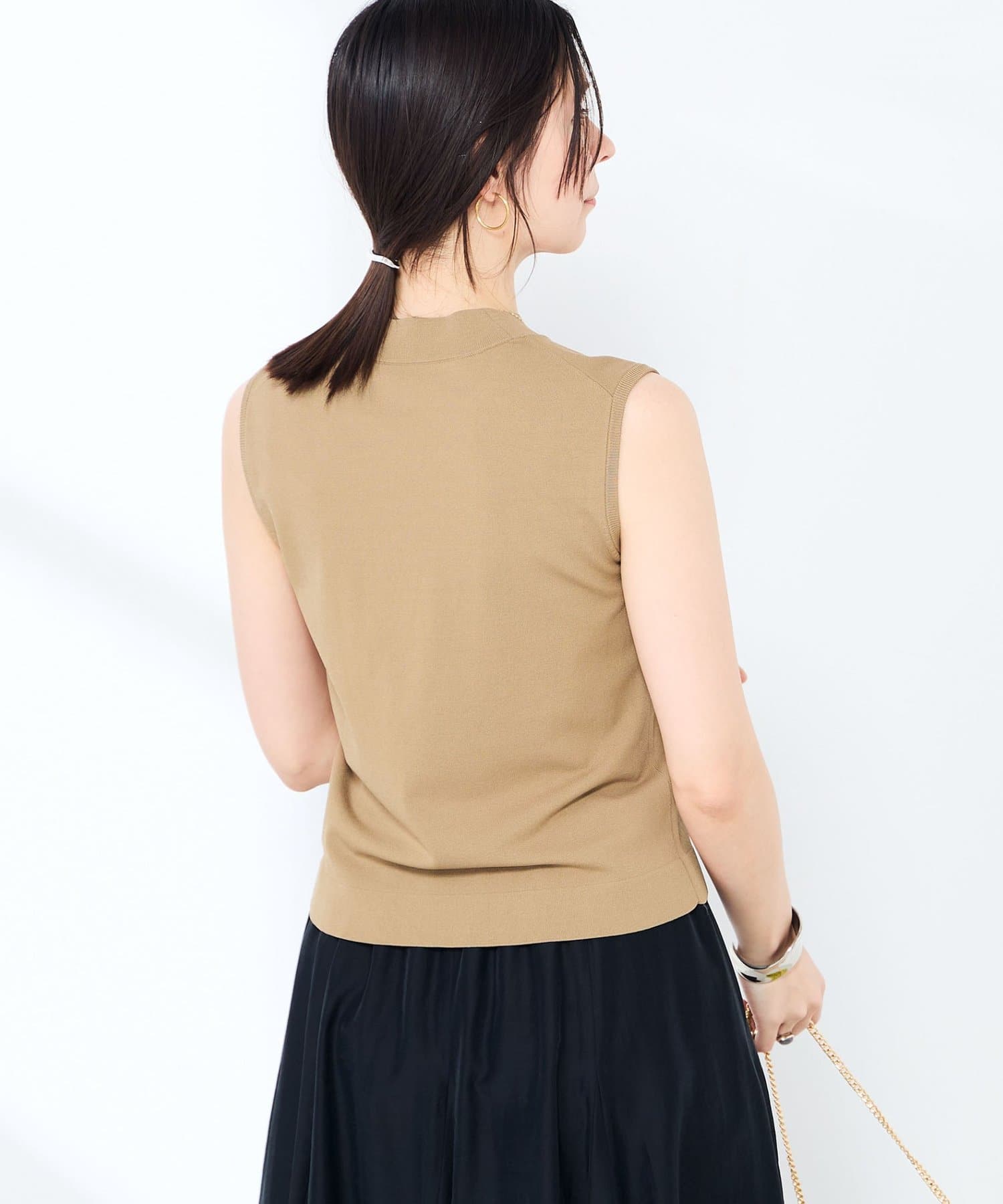 ・マルチファンクション素材のハイネックノースリーブプルオーバー