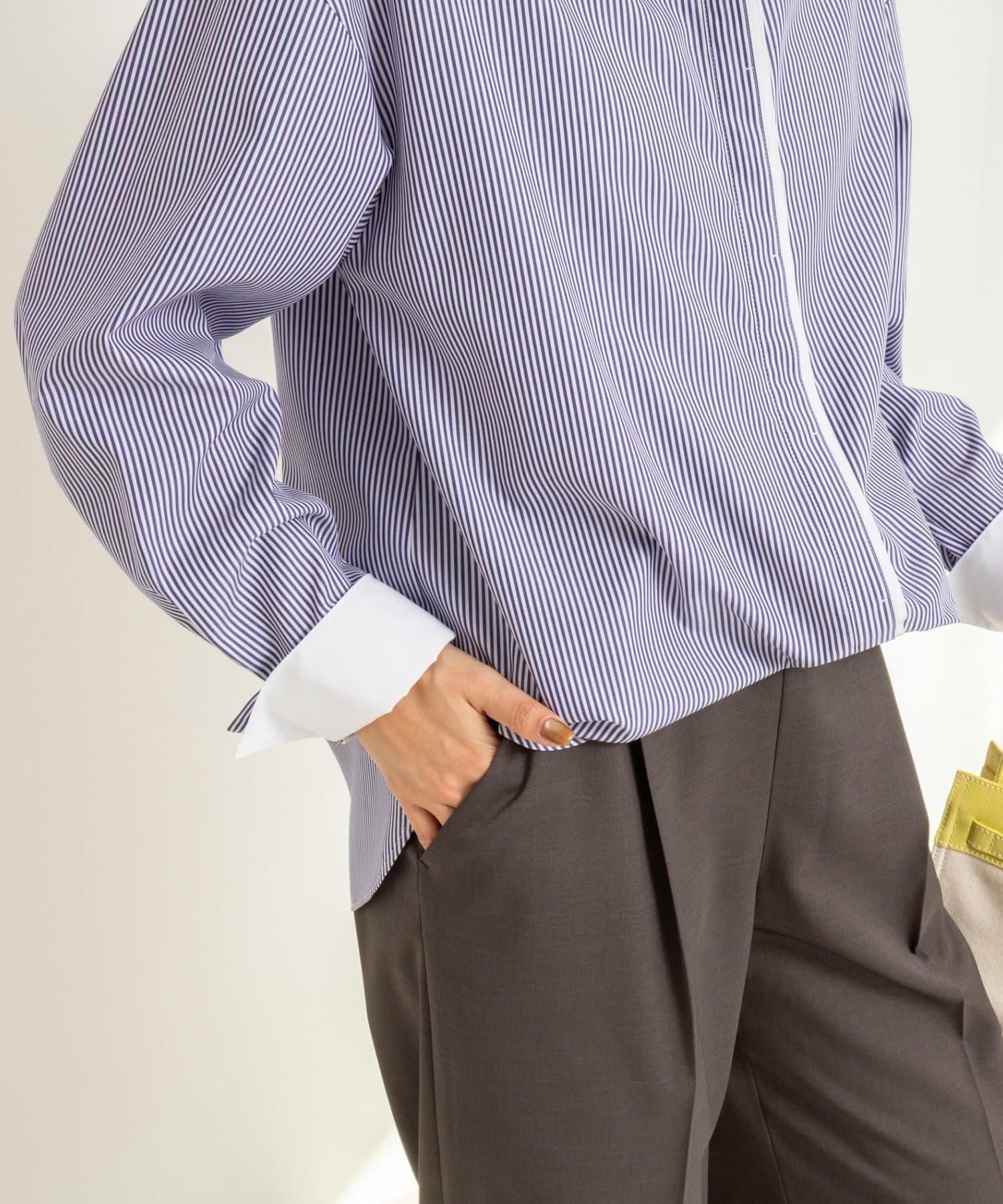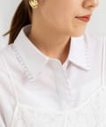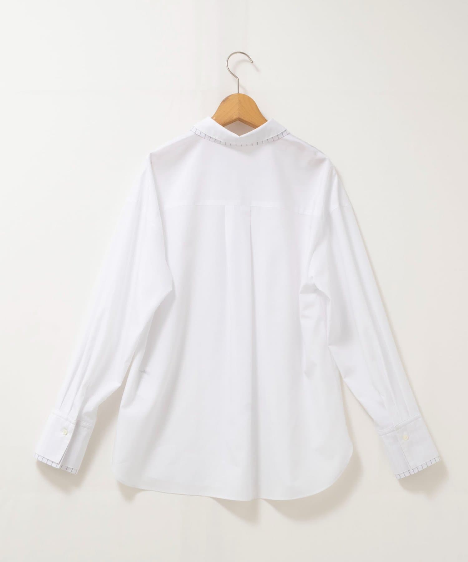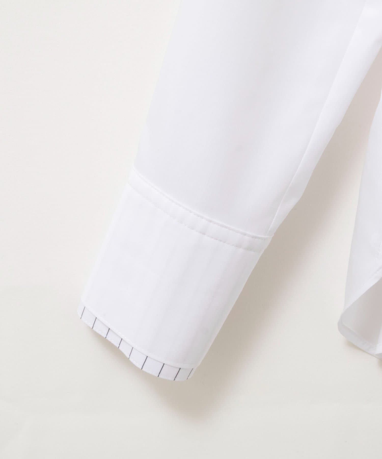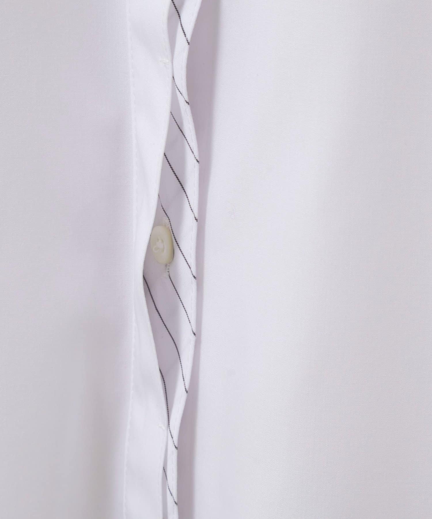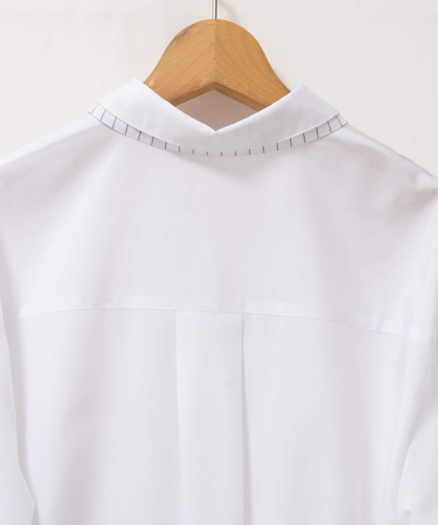・今季注目のレイヤード風ディテールを襟元、前立て、カフスに配したシャツ