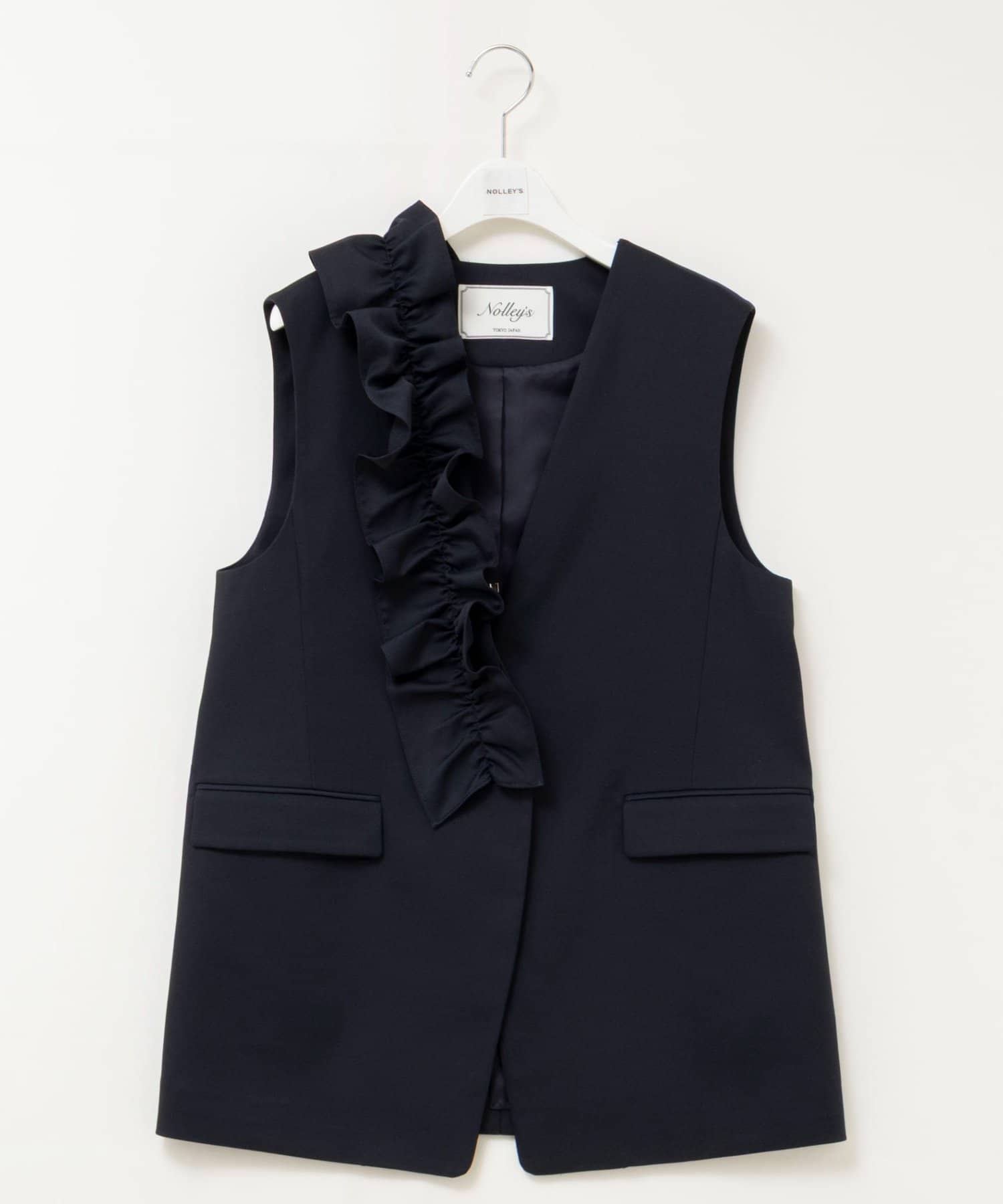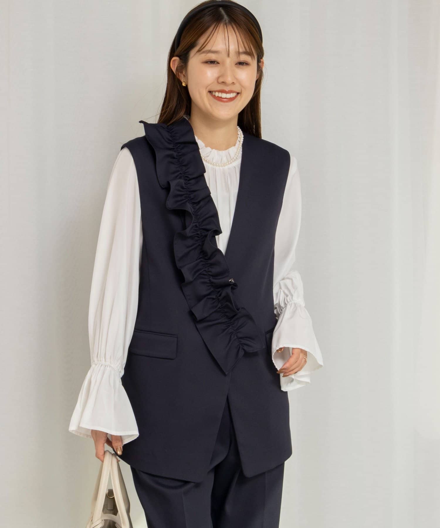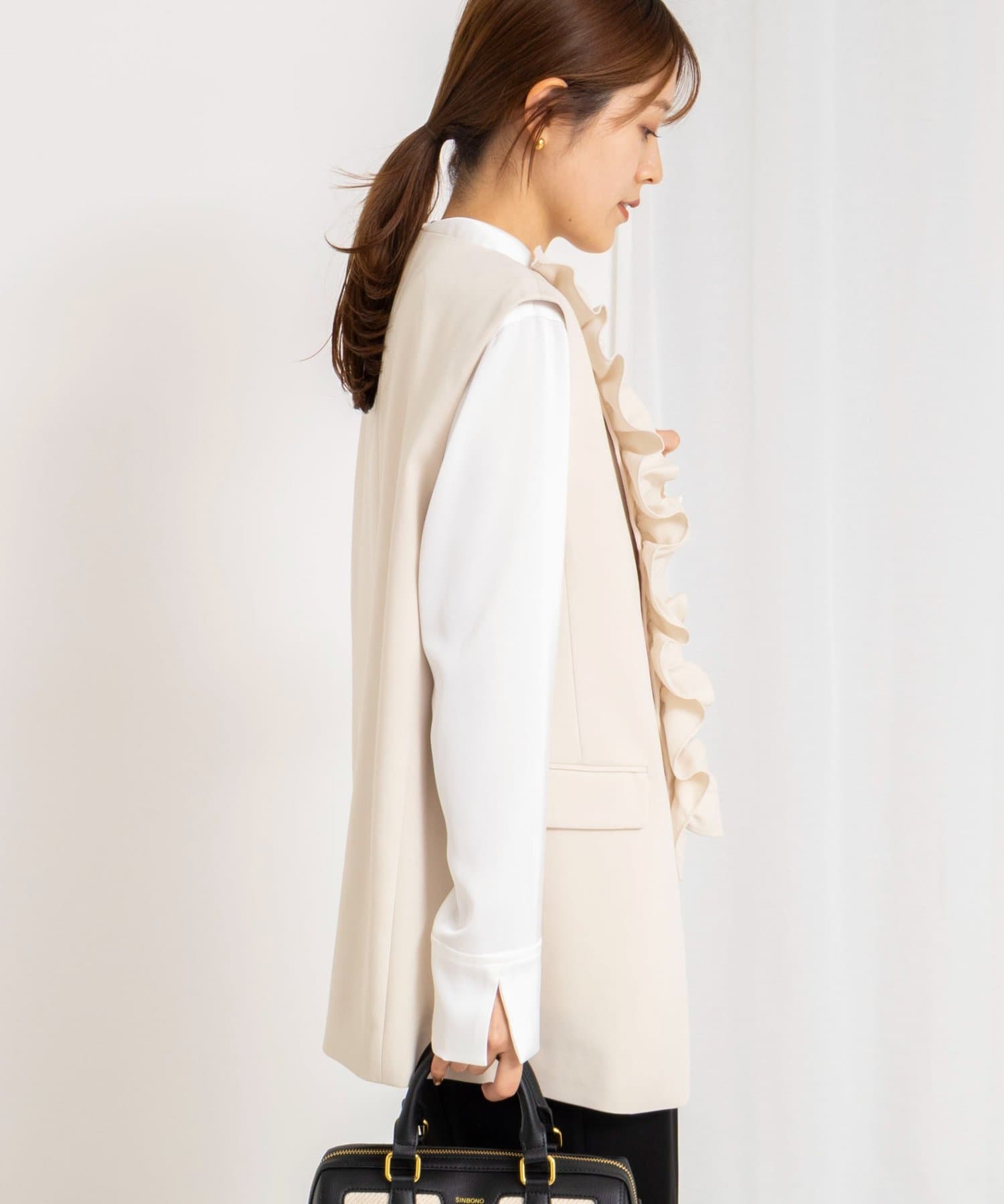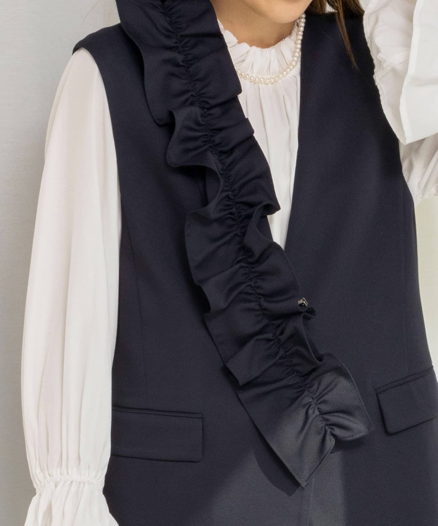 《セットアップ対応》ウォッシャブルジョーゼットフリル付きマルチWAYジレ