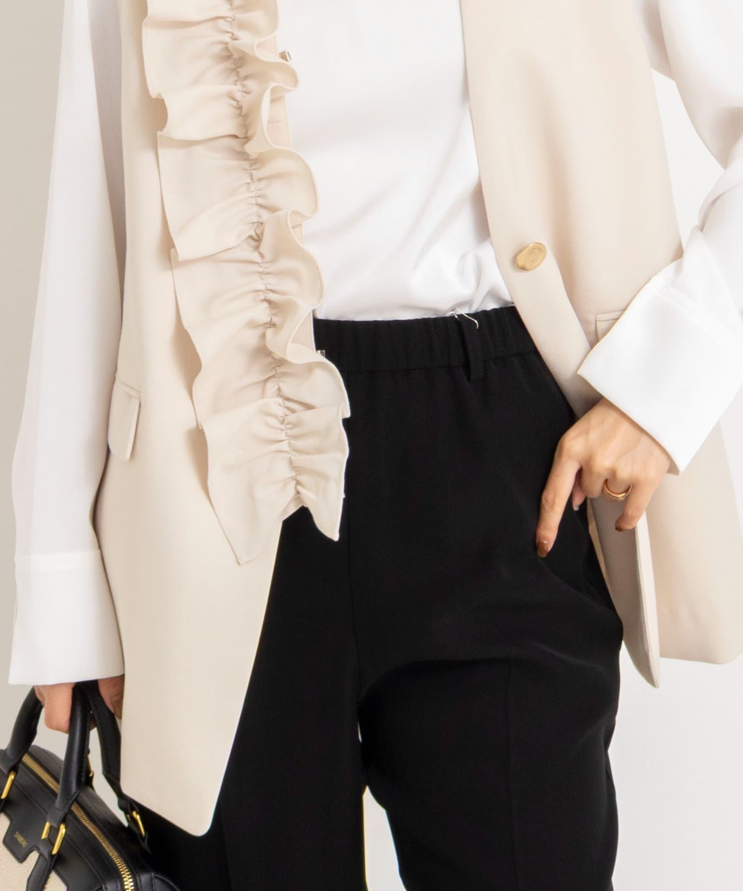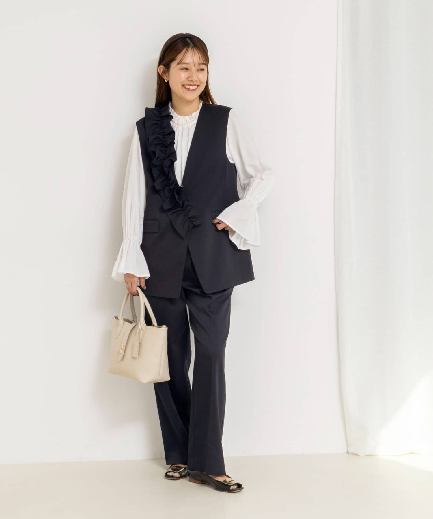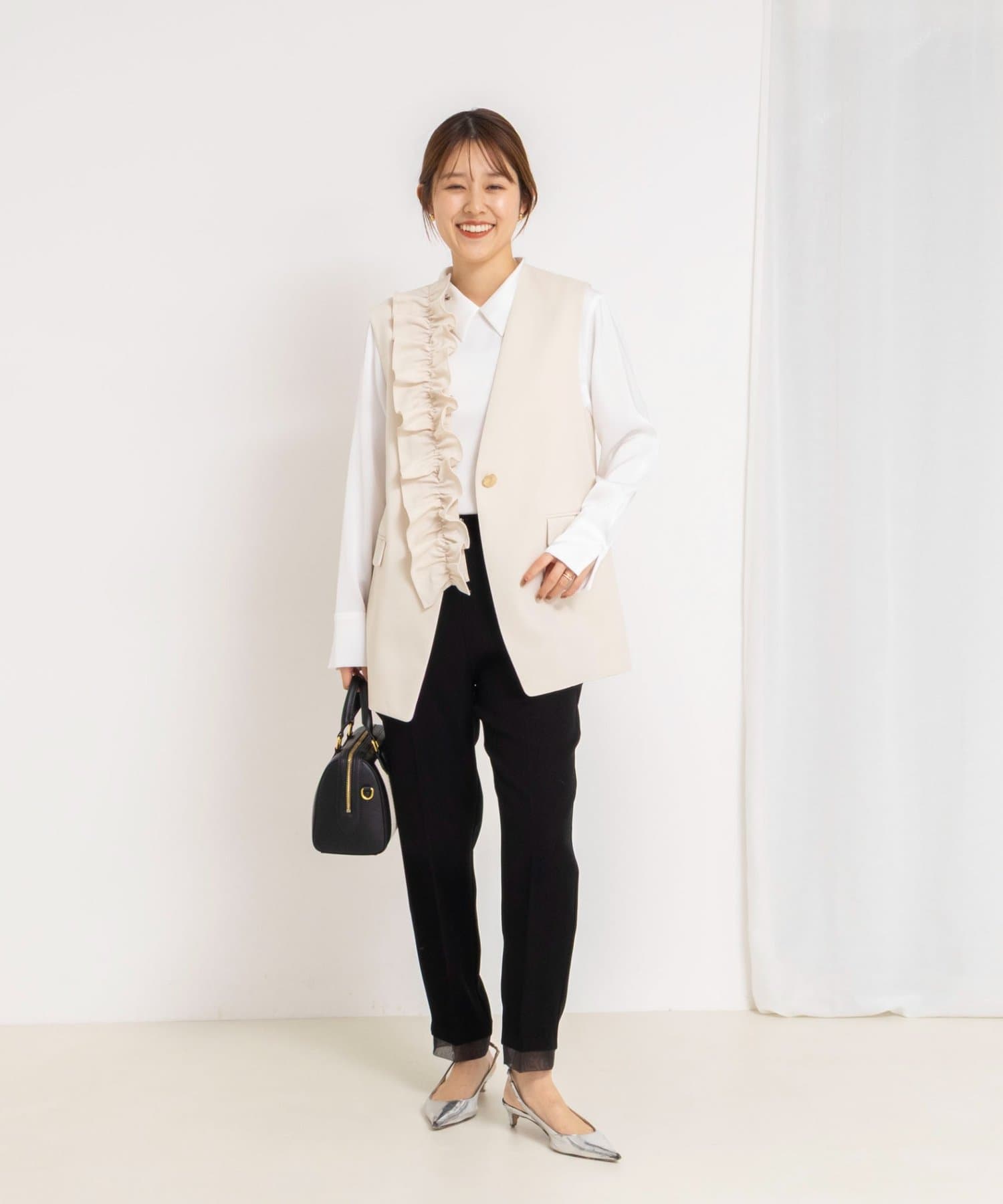 《セットアップ対応》ウォッシャブルジョーゼットフリル付きマルチWAYジレ