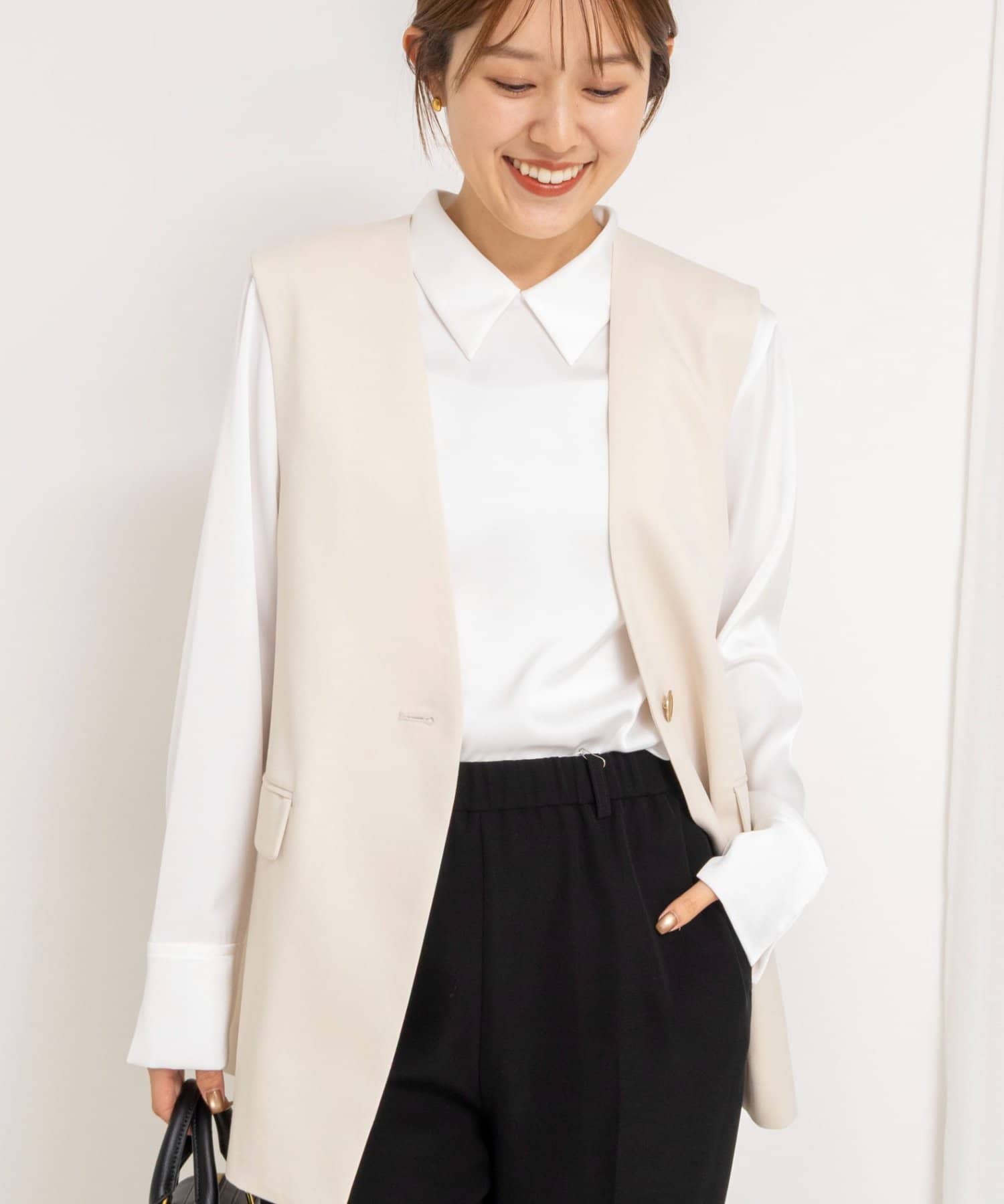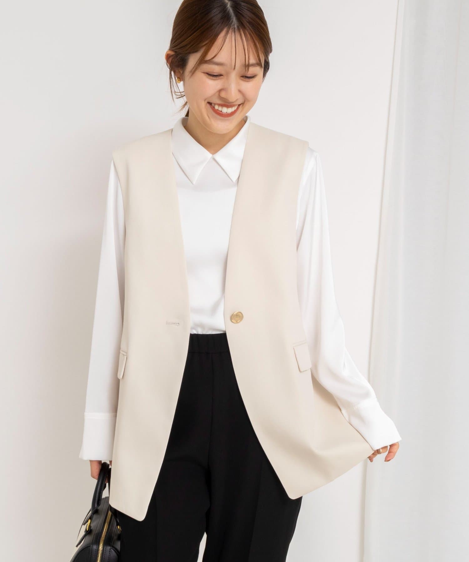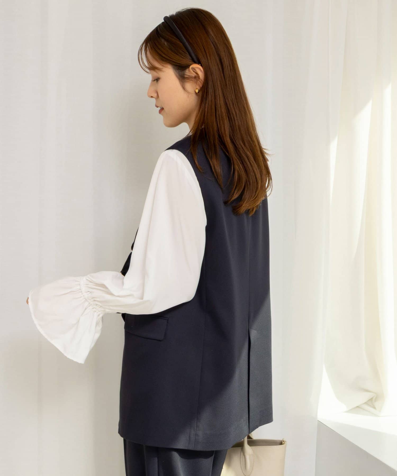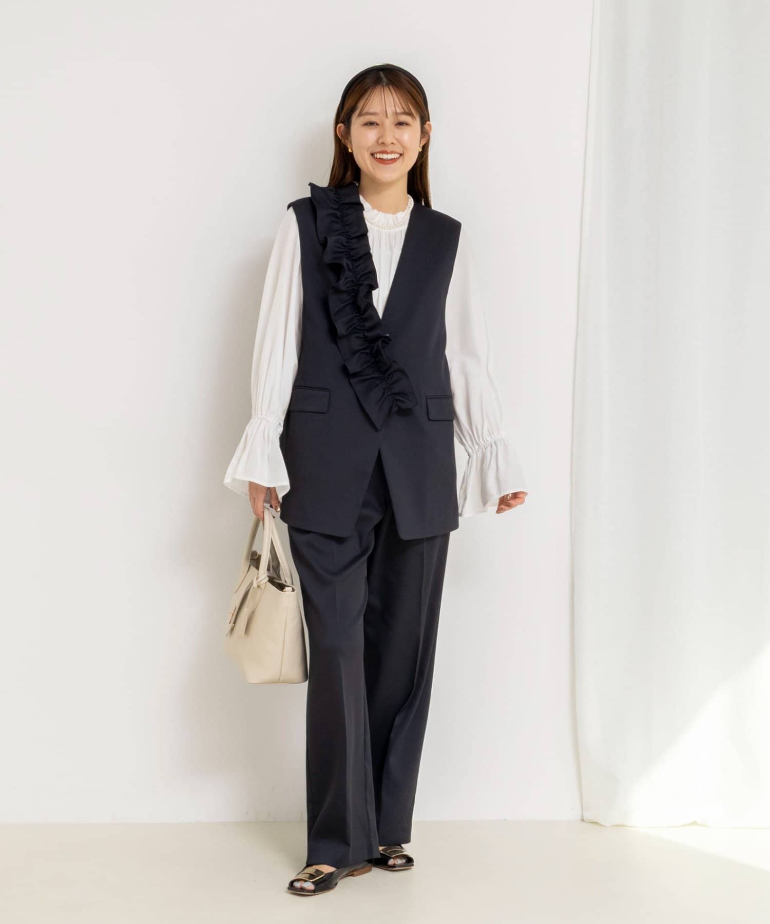 《セットアップ対応》ウォッシャブルジョーゼットフリル付きマルチWAYジレ