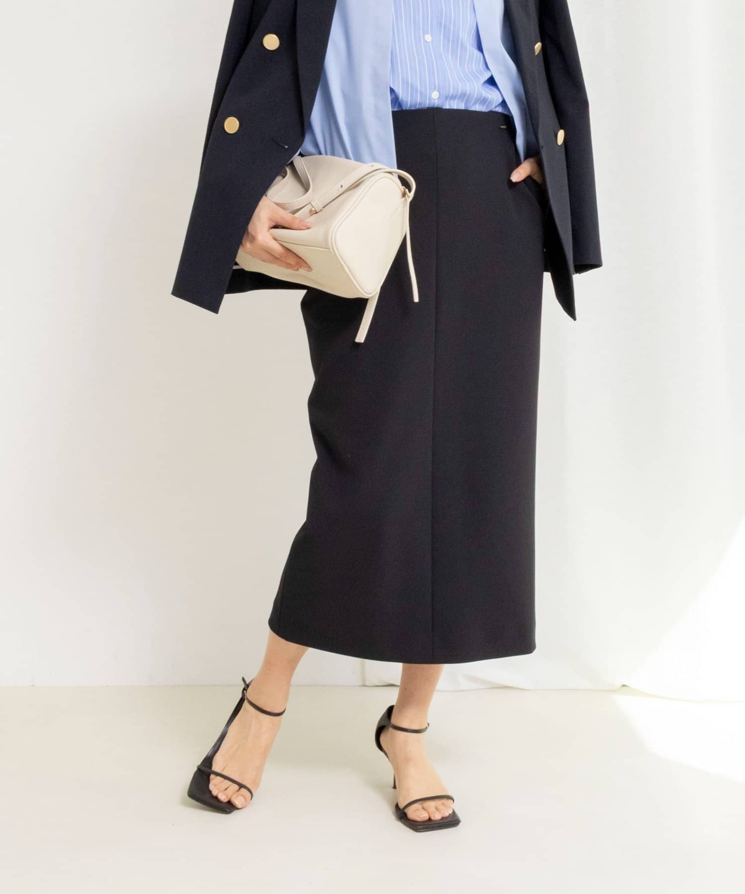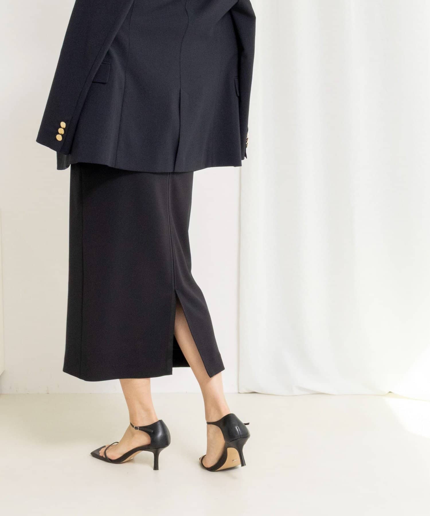 ・縦横に伸縮するカットソーを重ねたダブル組織の素材を使用したタイトスカート