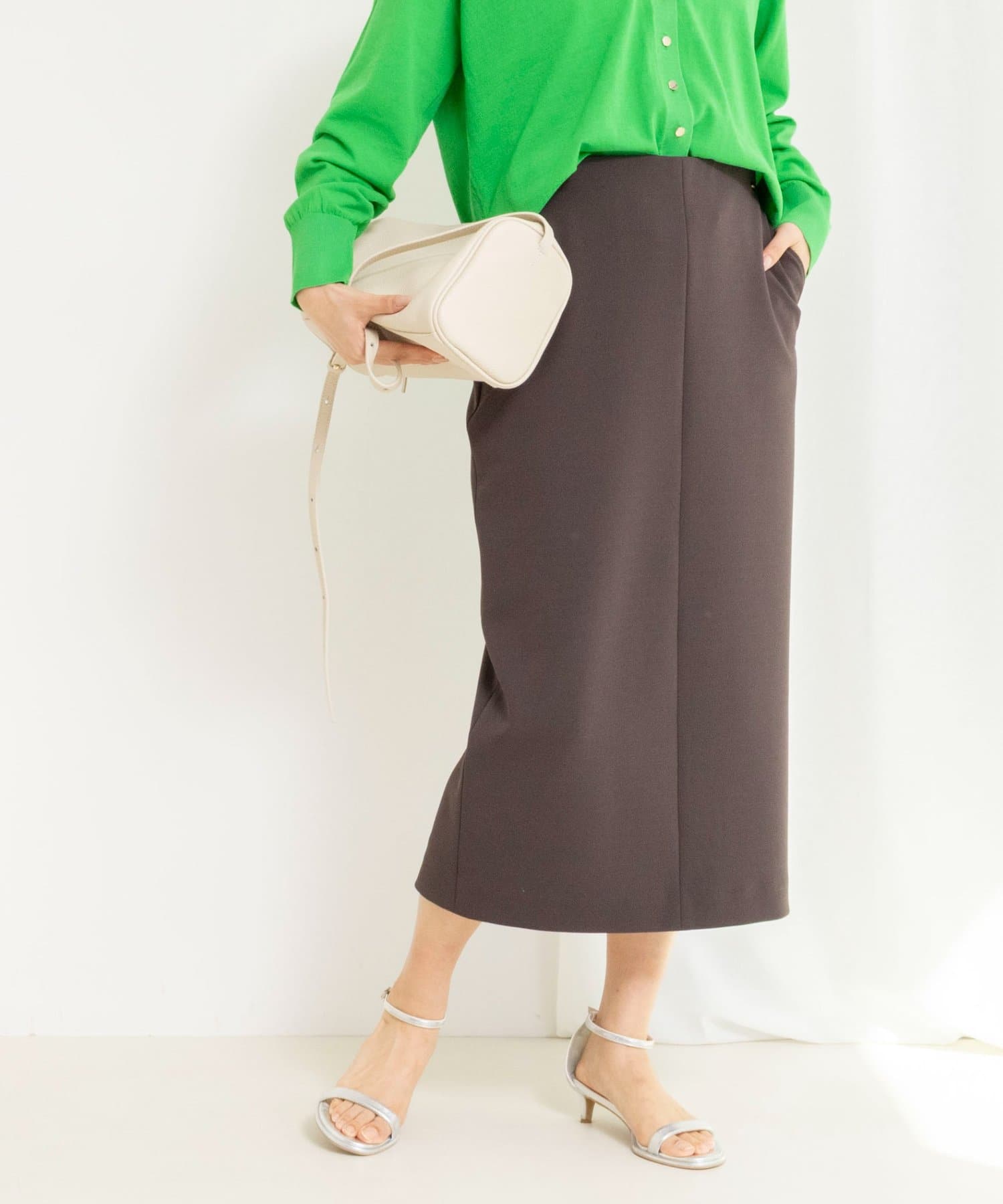ウォッシャブルニットジョーゼットタイトスカート