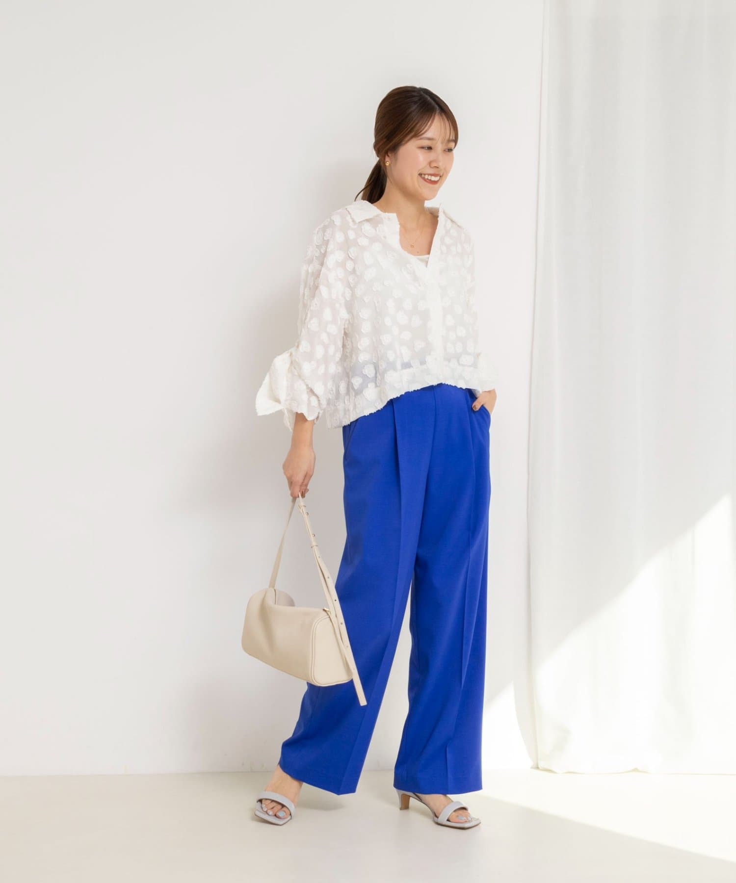 ・シャリ感のあるドライなタッチが特徴のワイドパンツ