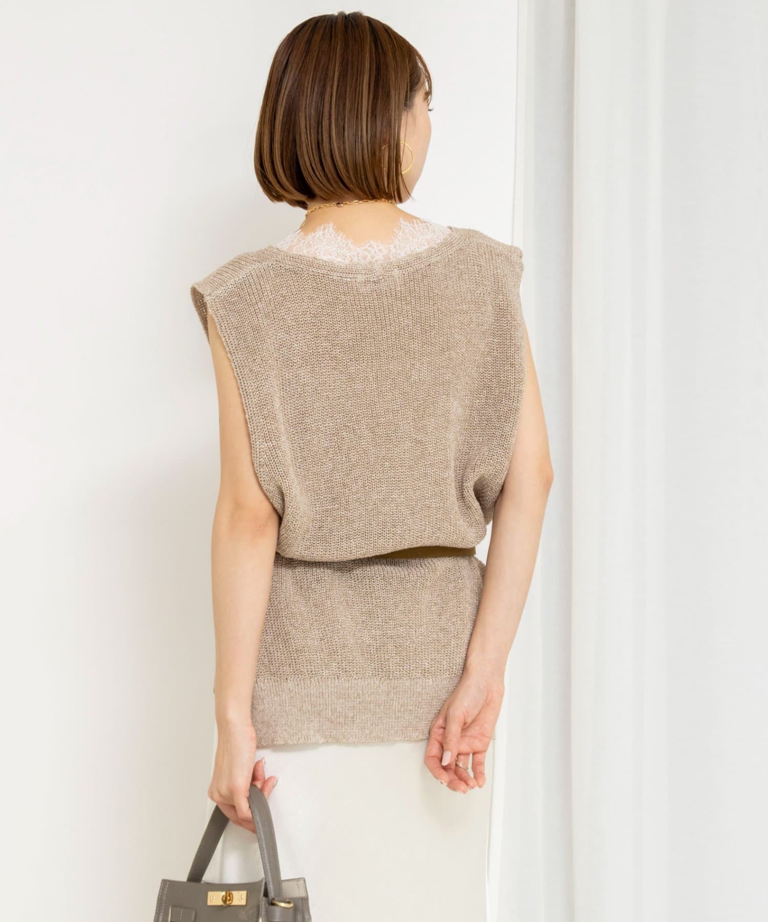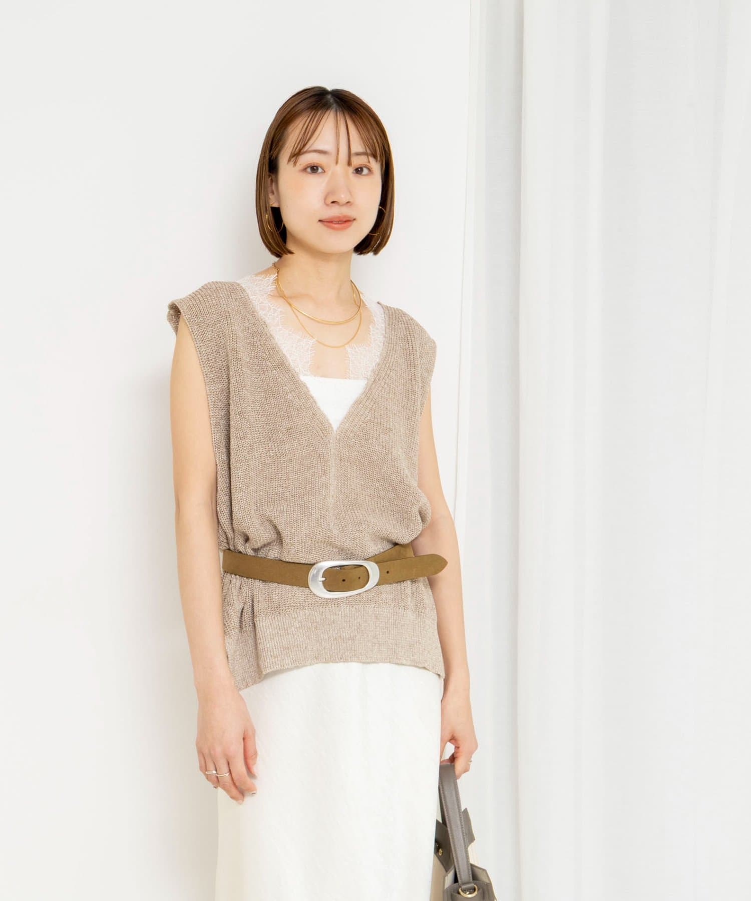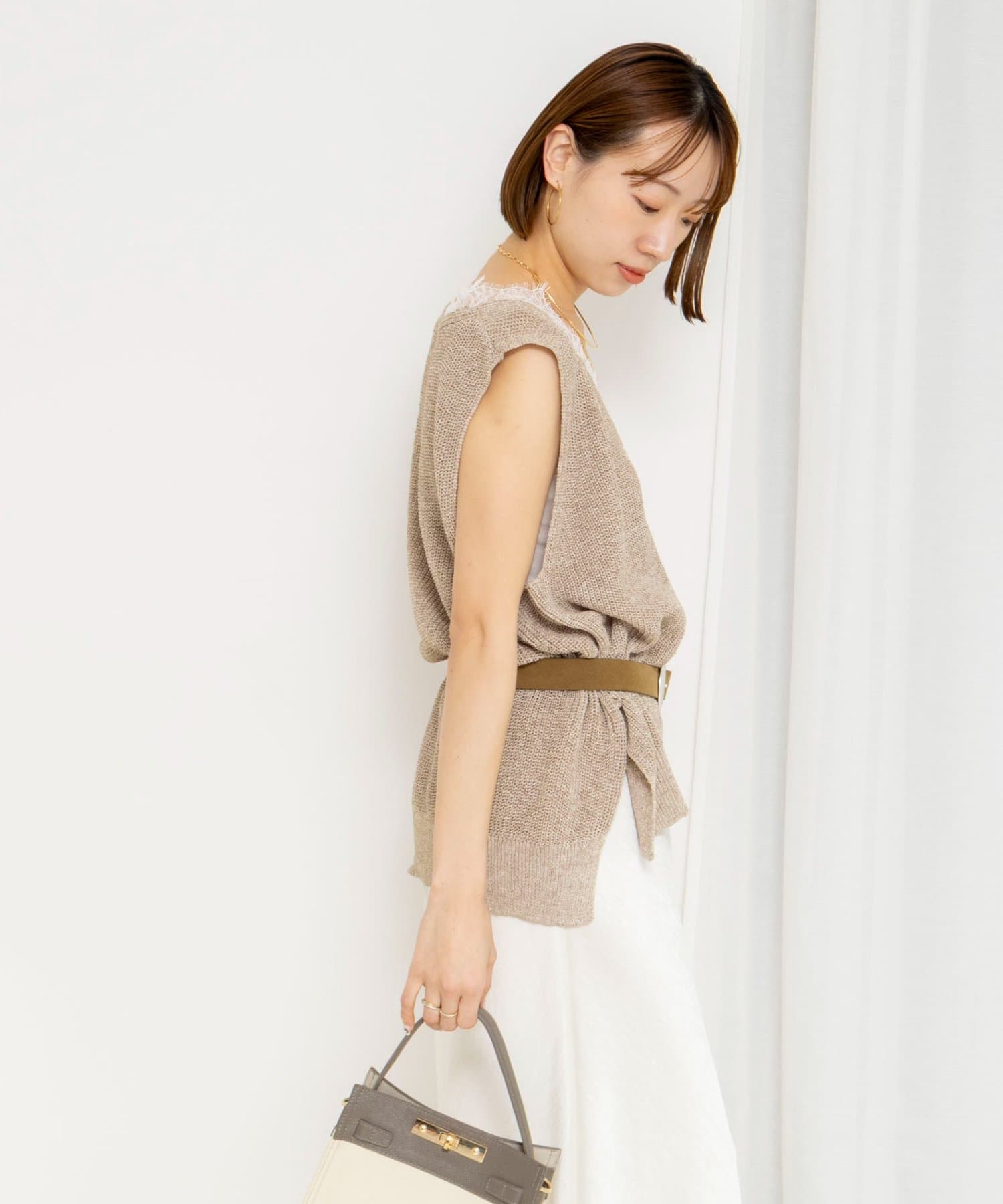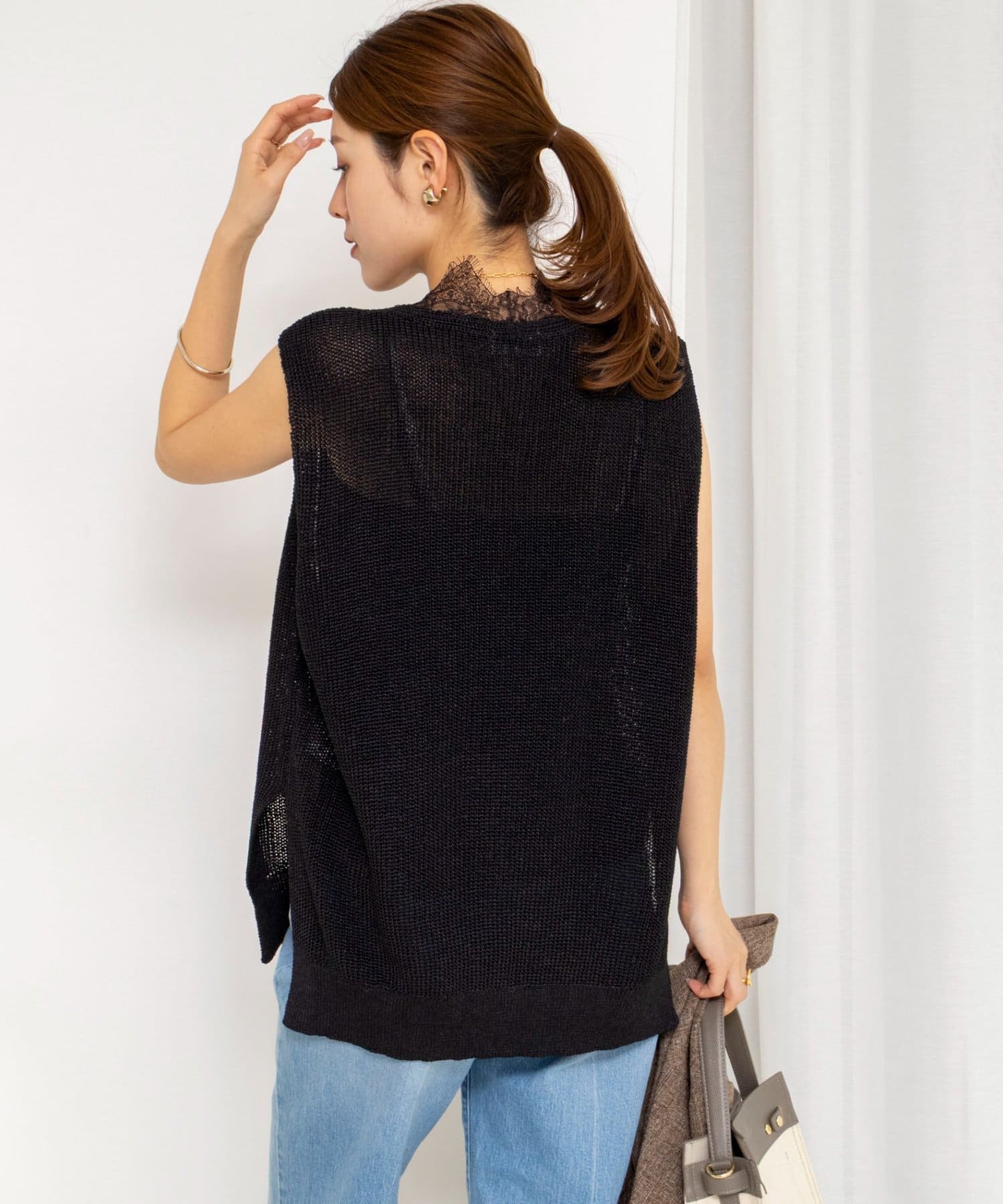 ・麻のシャリ感と、ざっくりとした編み地が涼しげなジレ