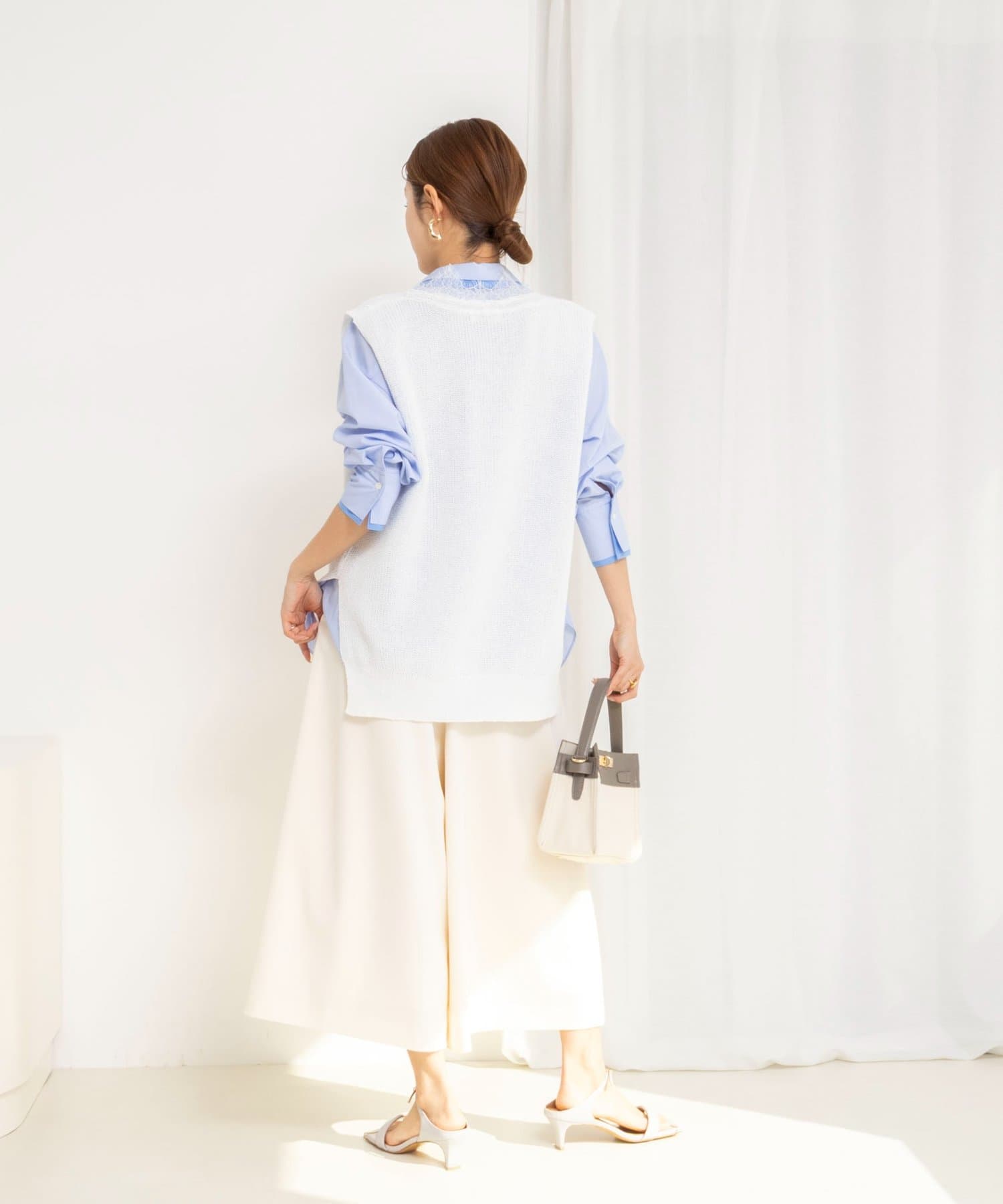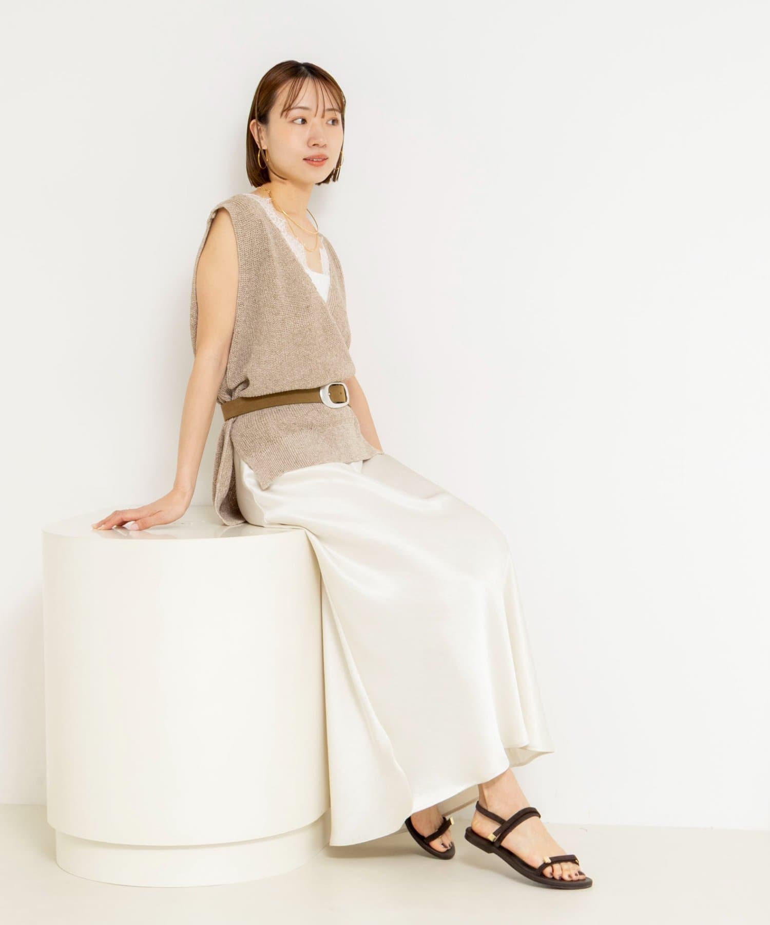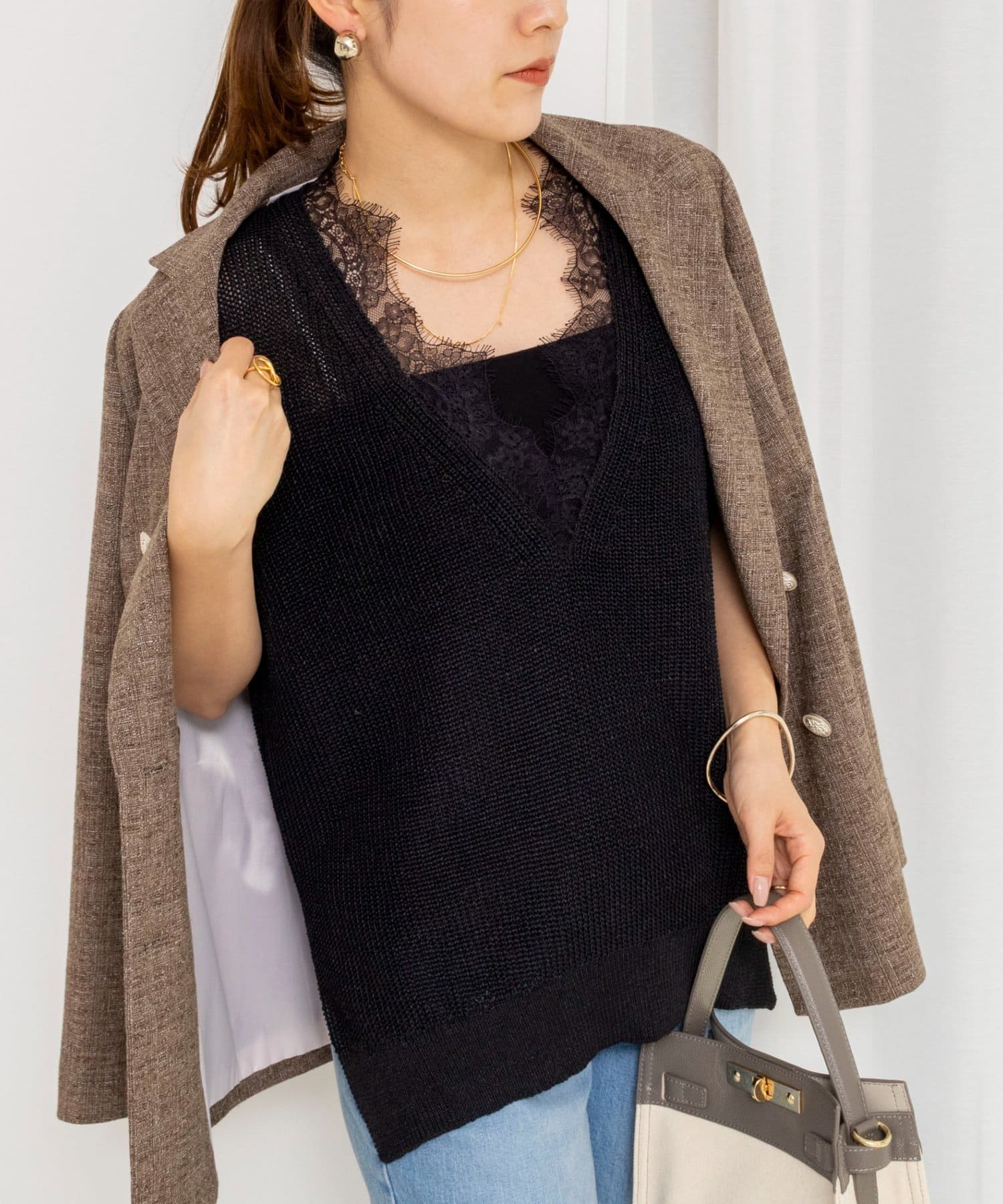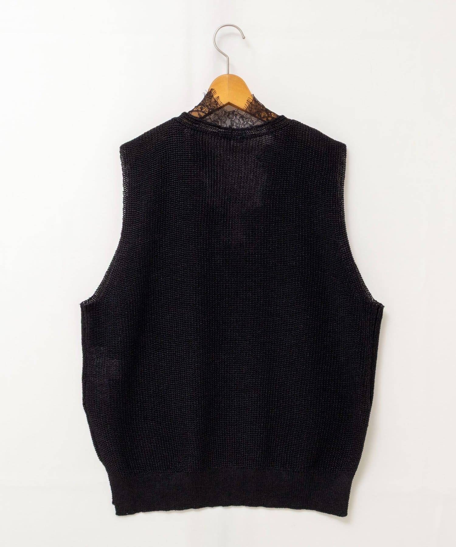 ・麻のシャリ感と、ざっくりとした編み地が涼しげなジレ
