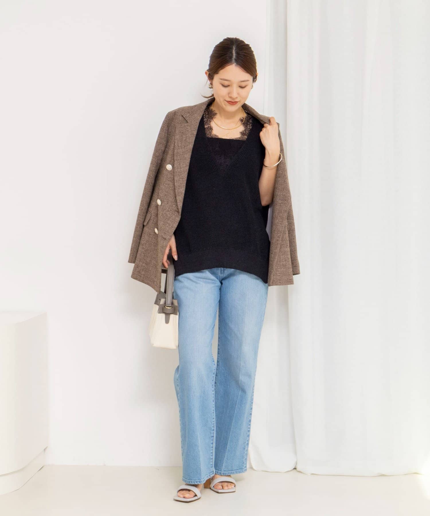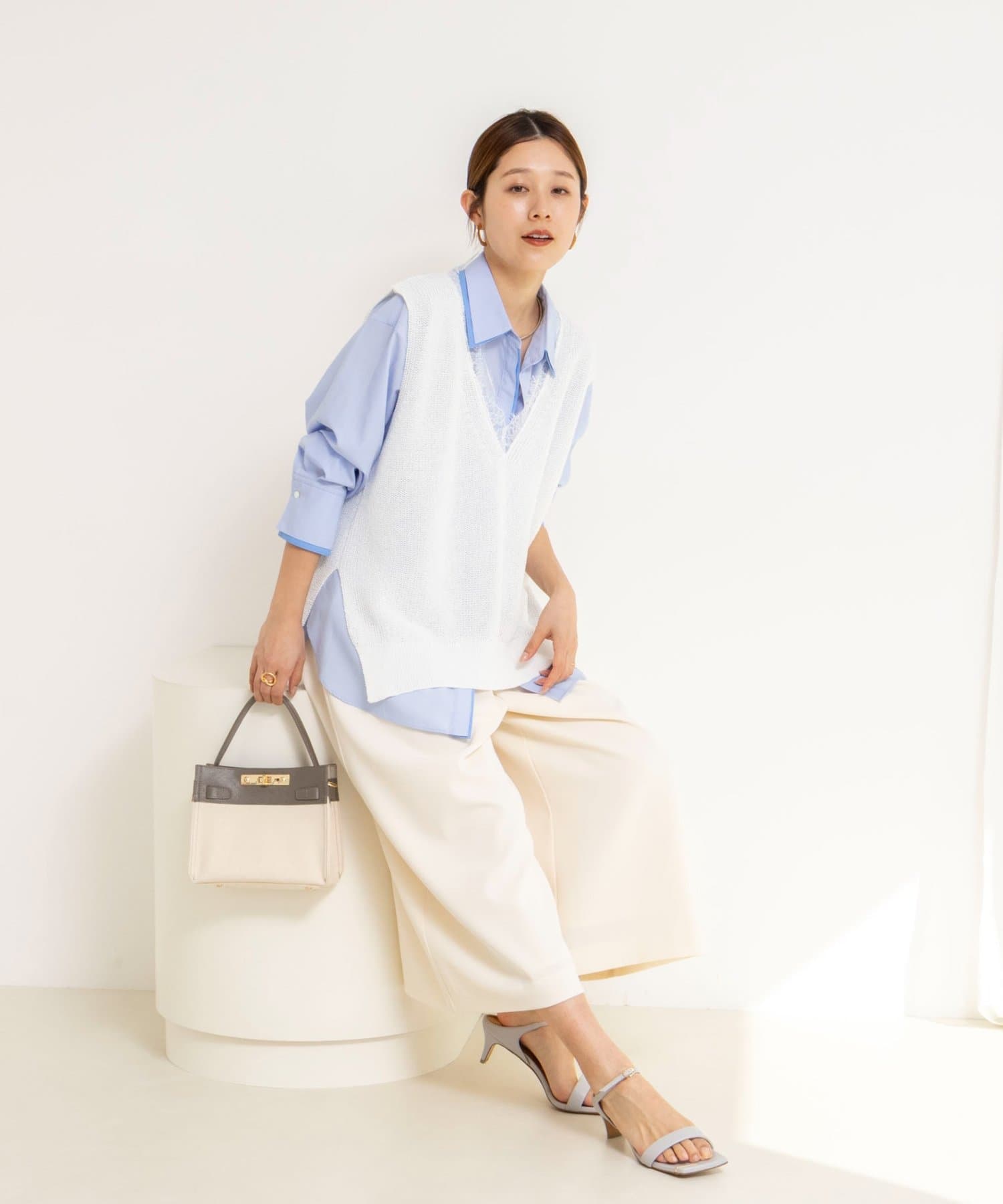 ・デニム、きれいめナロースカートなどボトムス次第で、印象の変えられる一枚