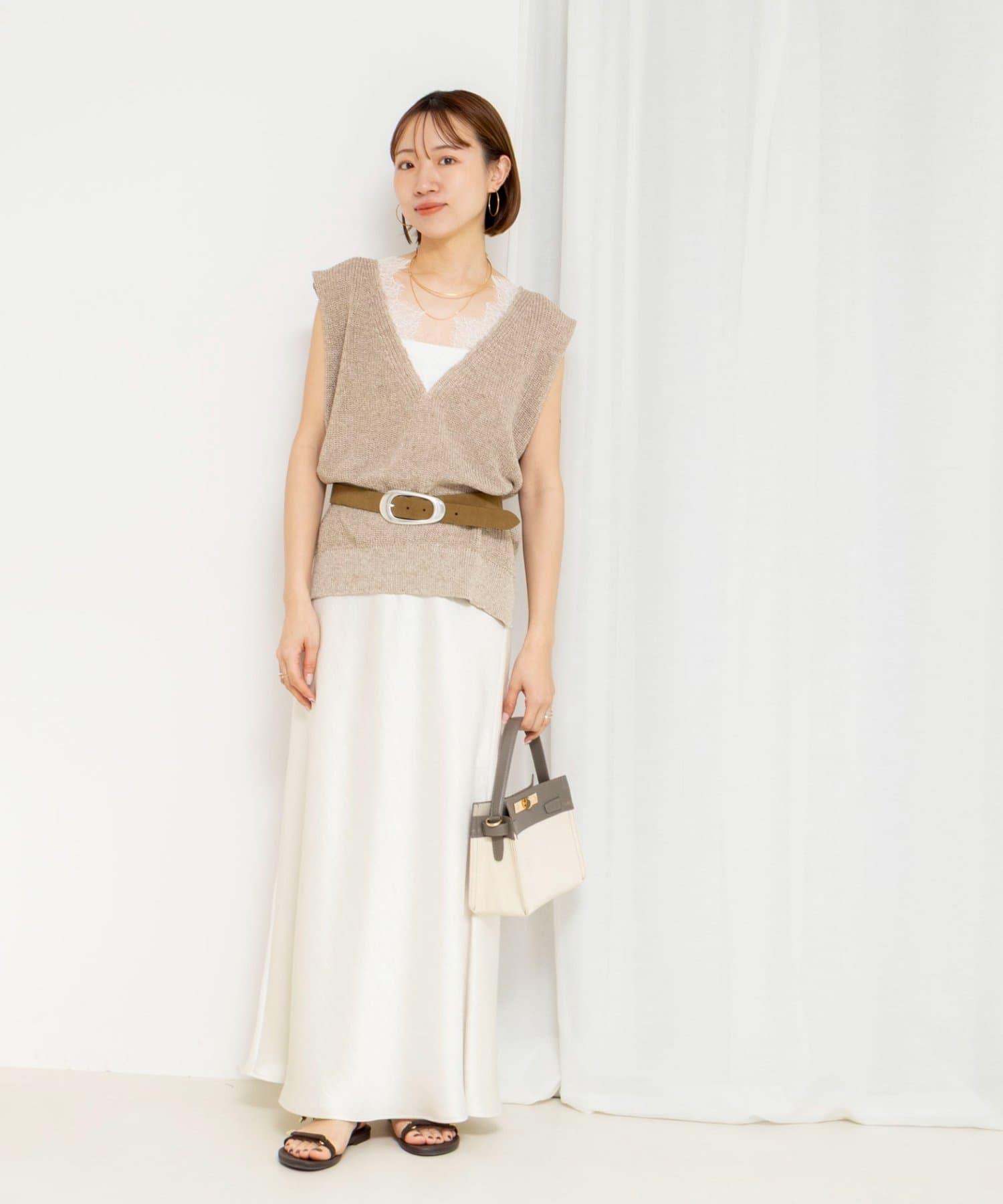 ・暑い季節にはキャミソールと合わせて、ラフ過ぎない一枚着に
