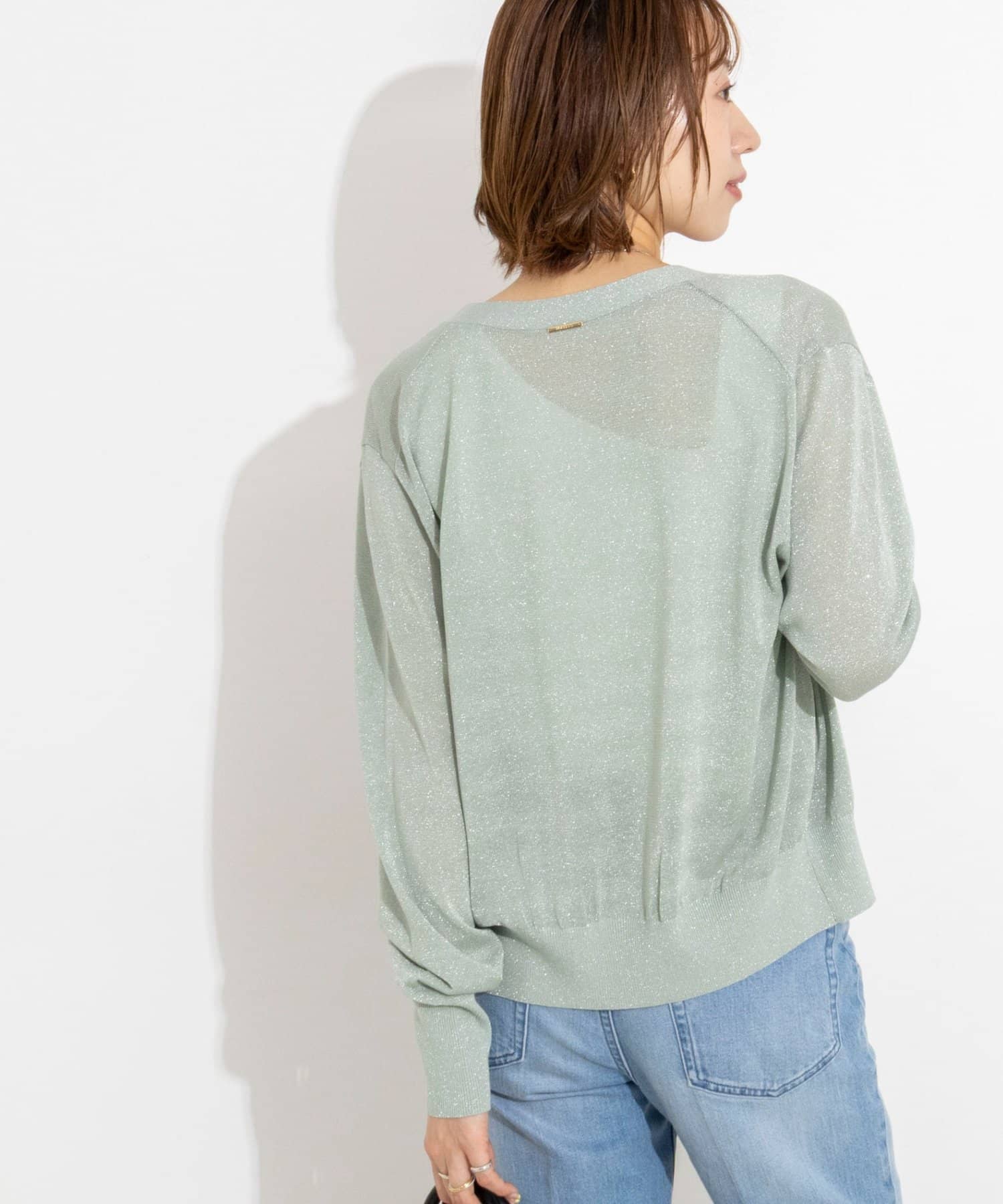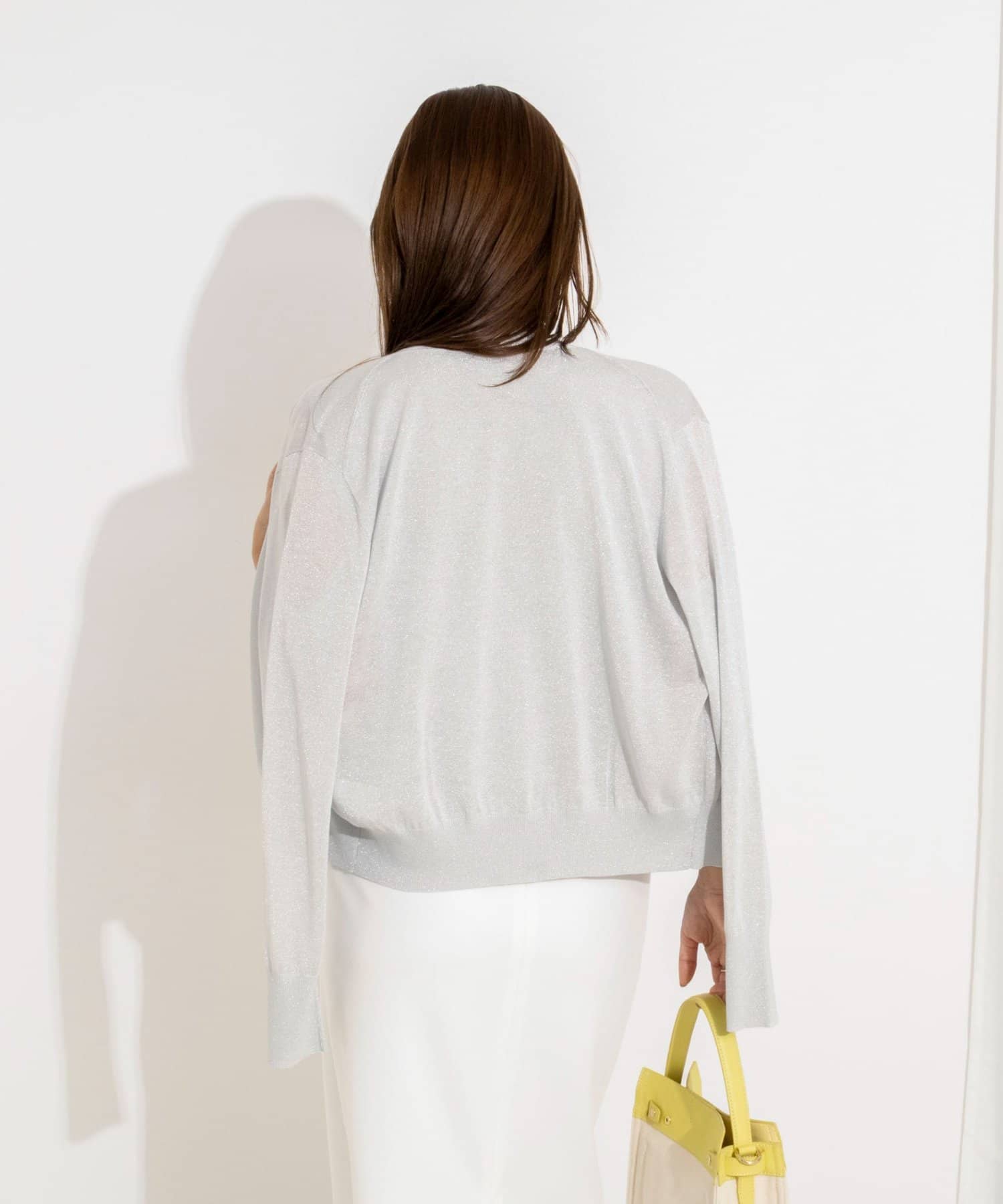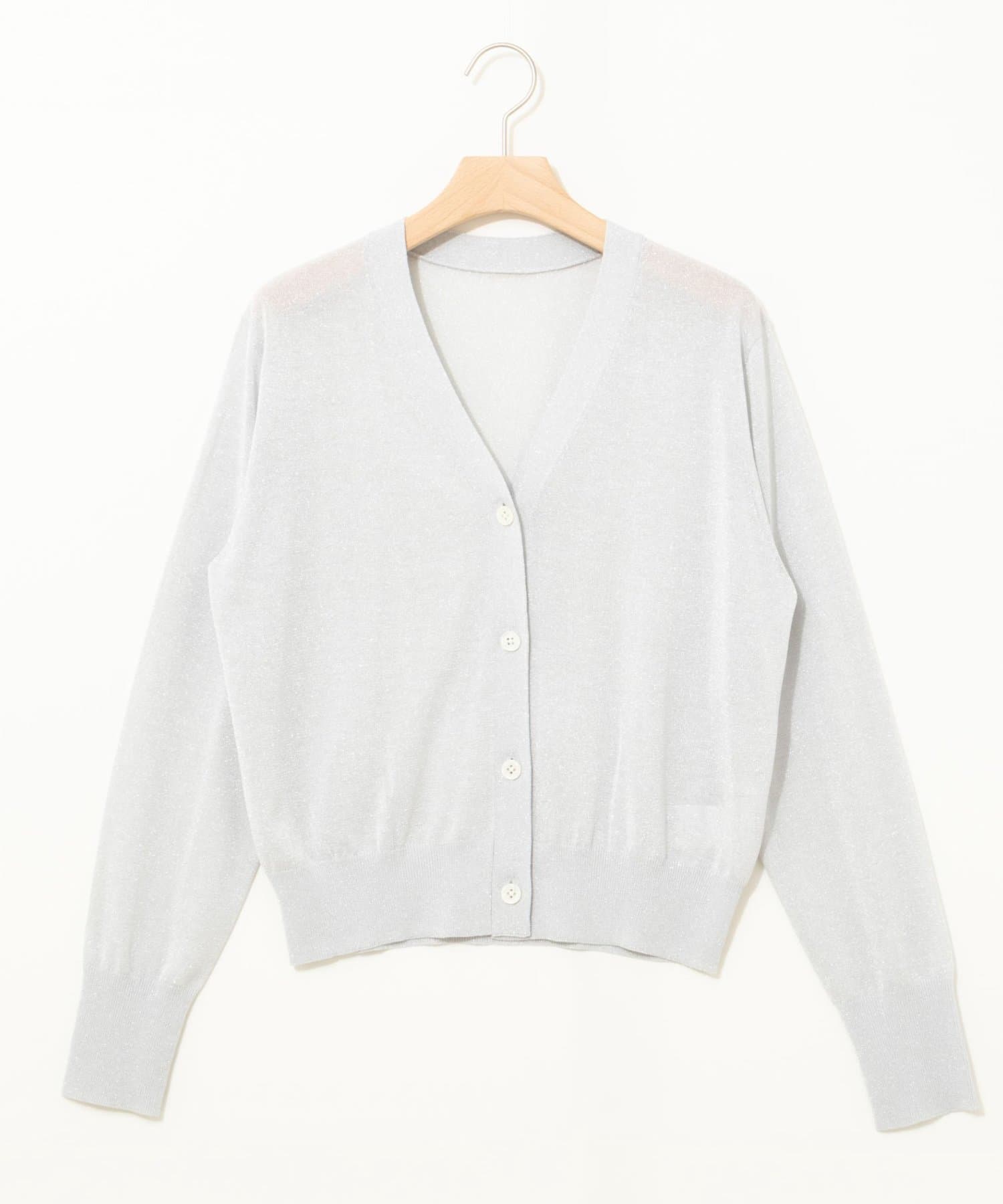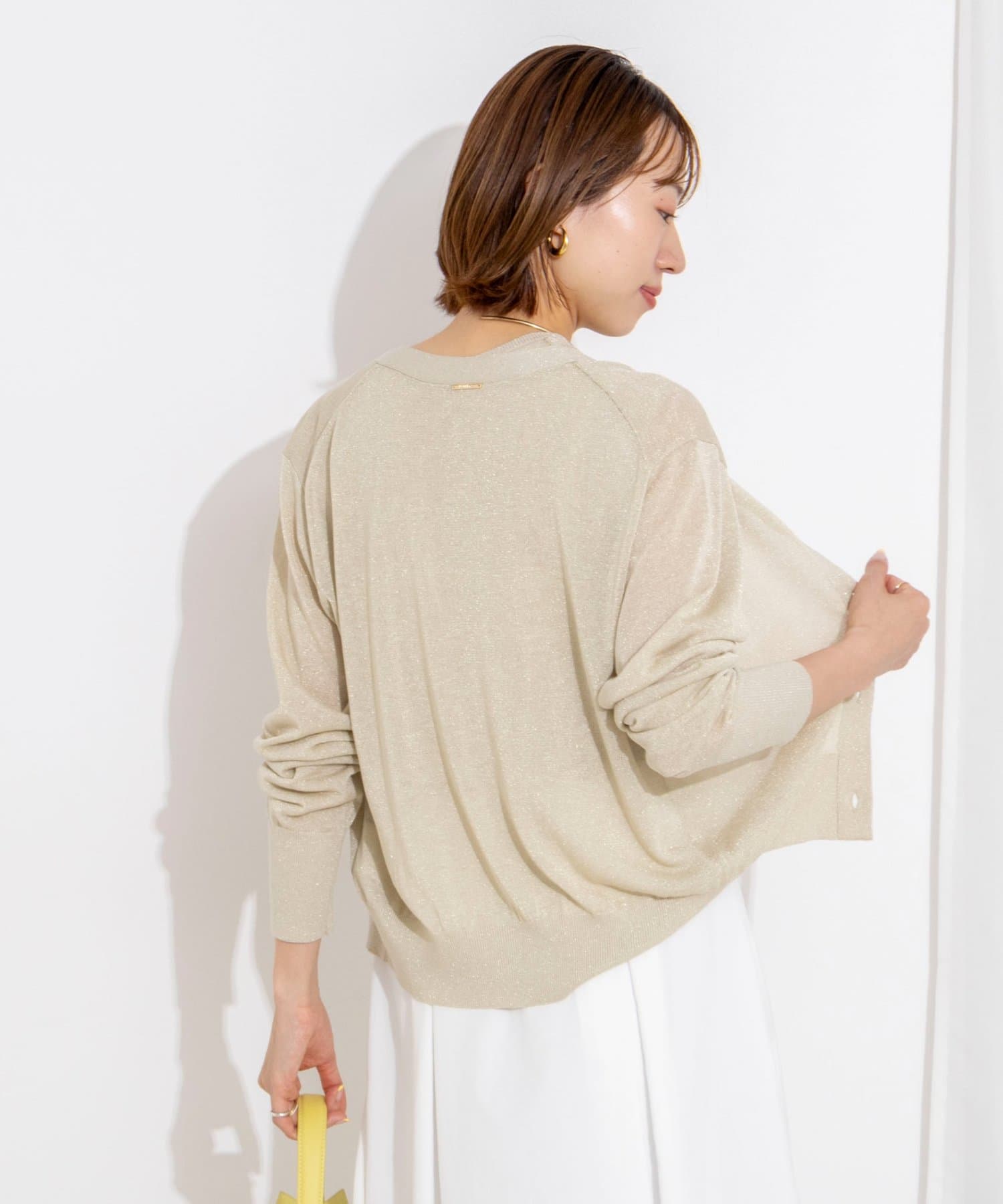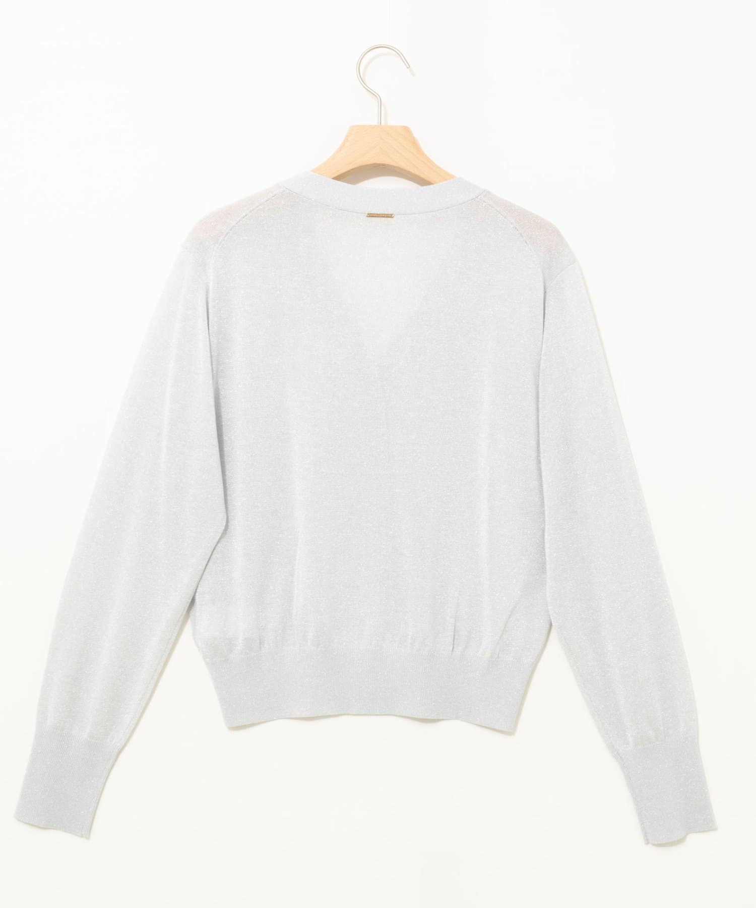 ・ラメの糸を使用したシャイニーなVネックカーディガン