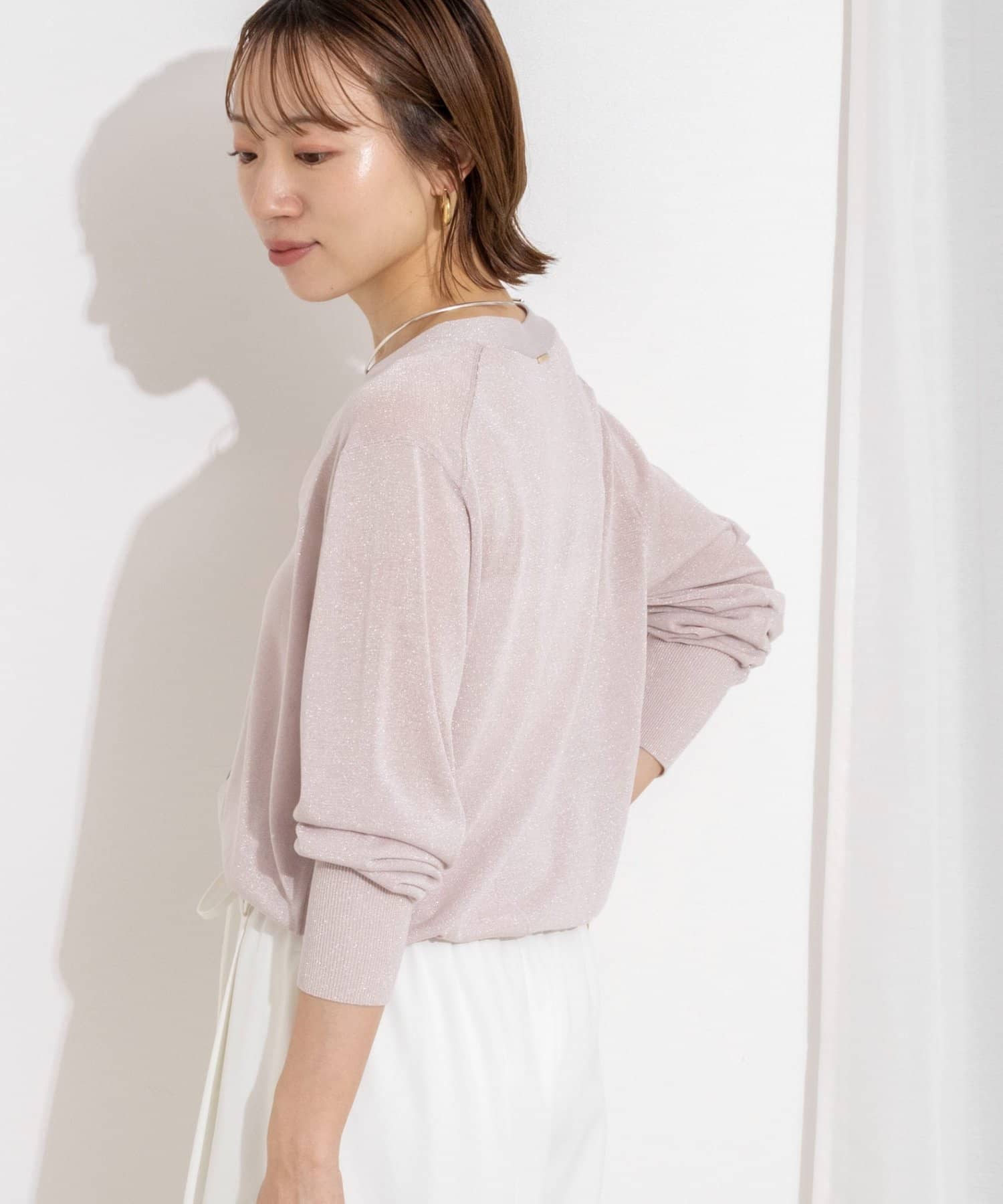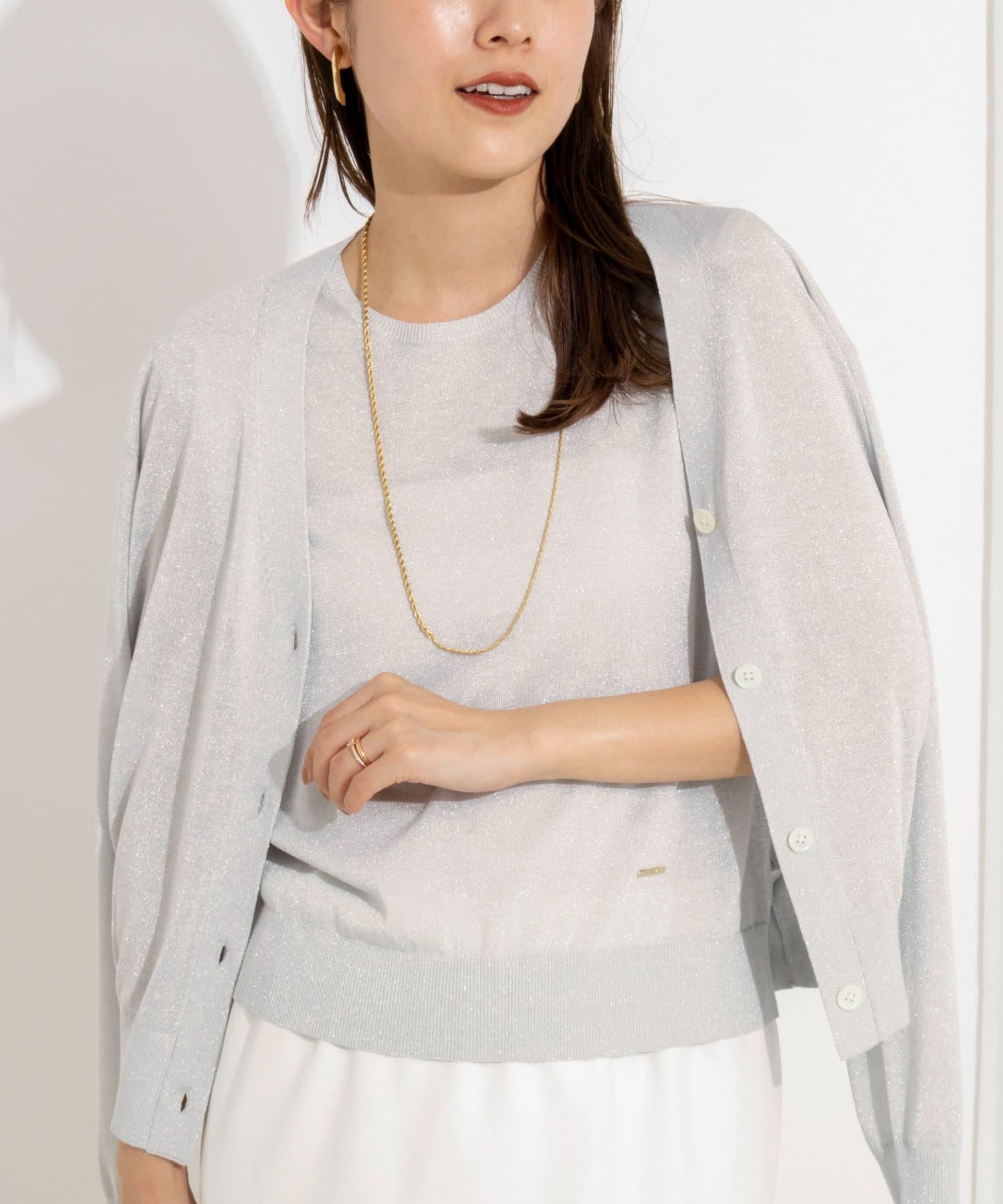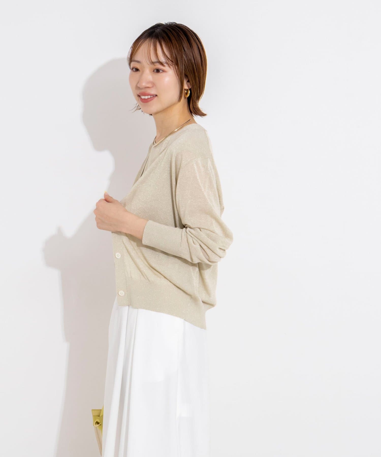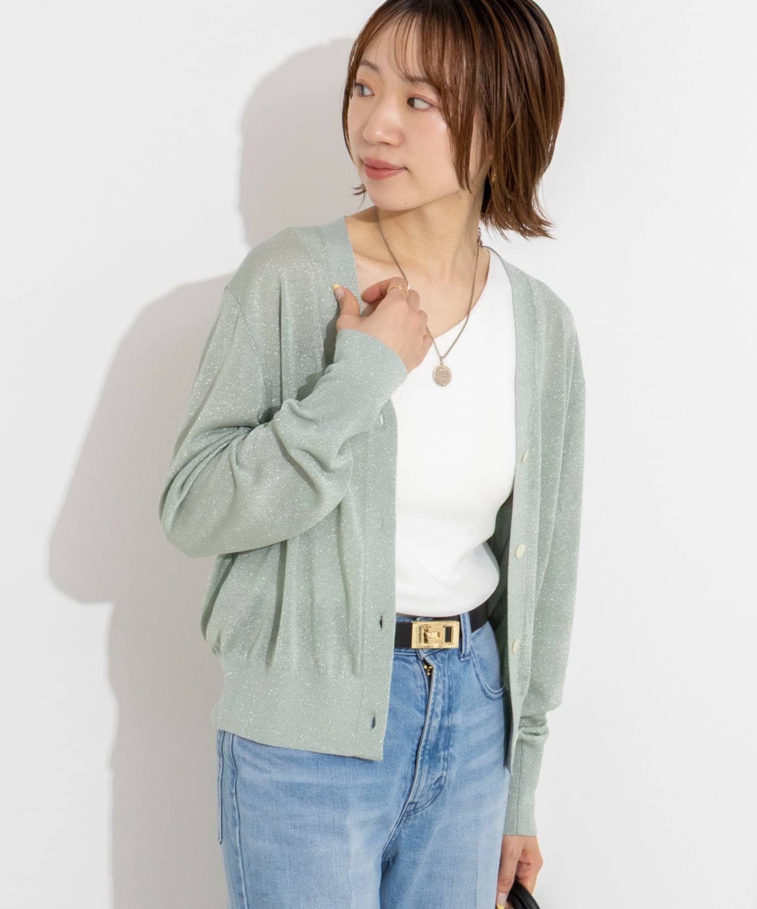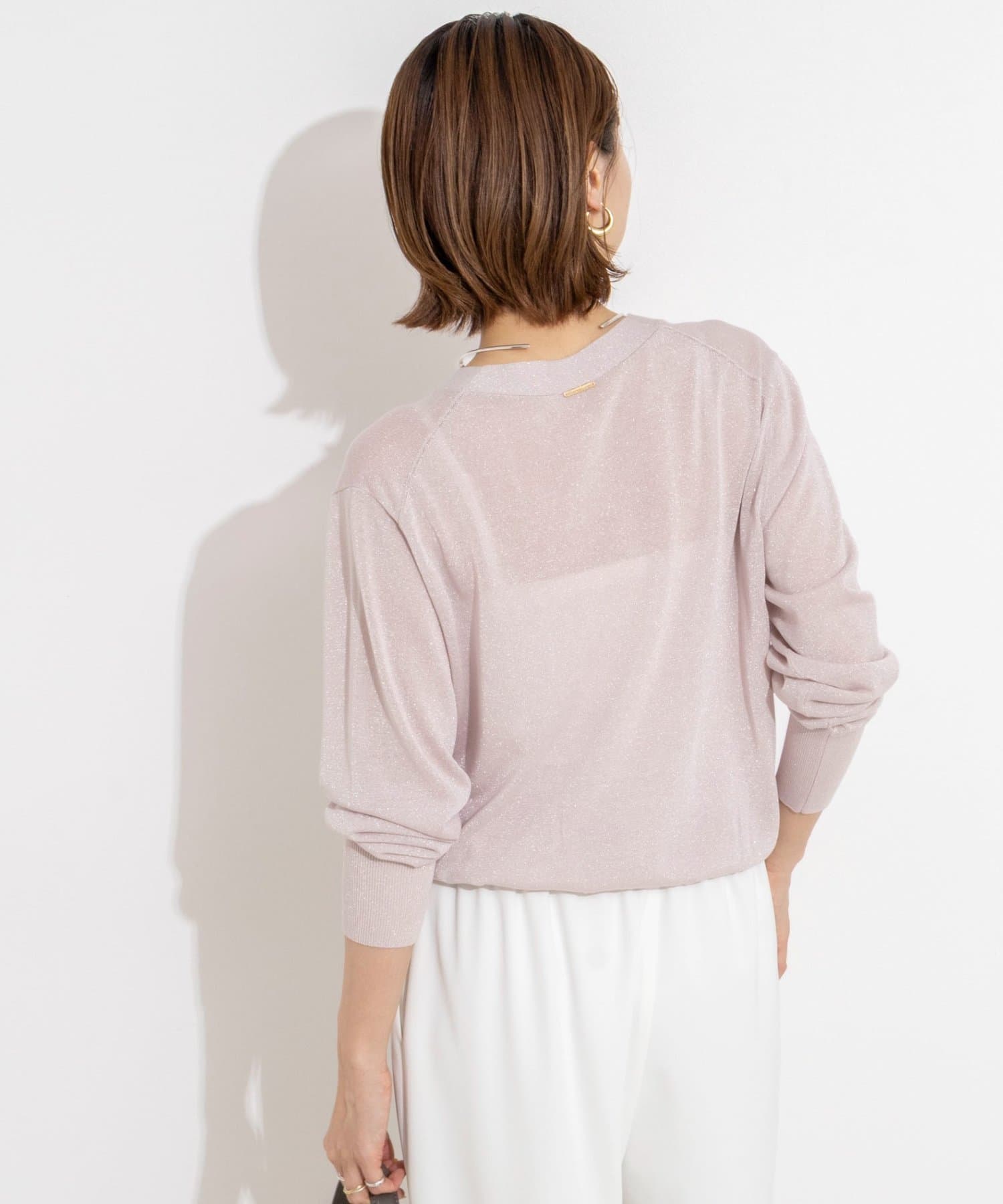 ・ラメの糸を使用したシャイニーなVネックカーディガン