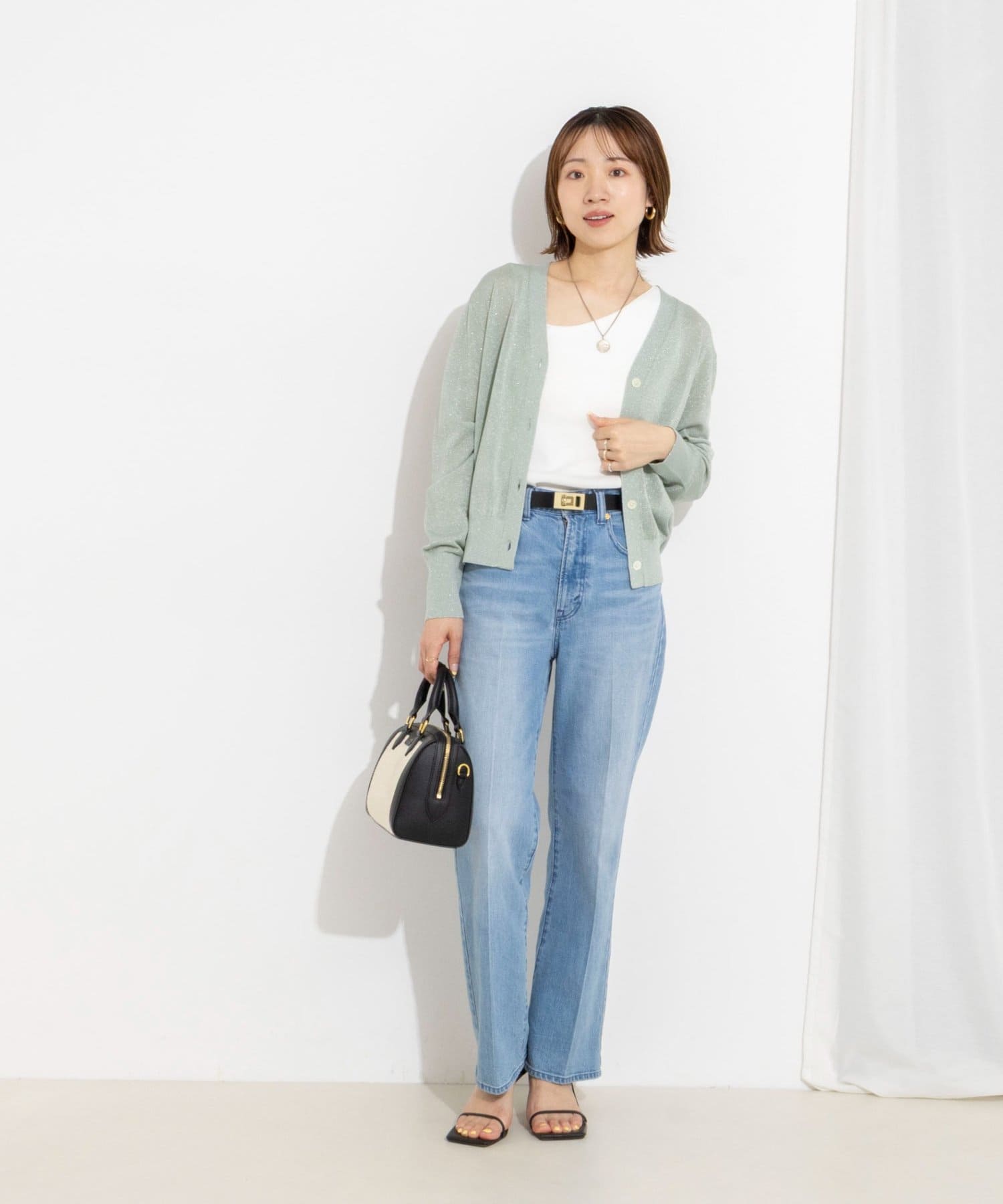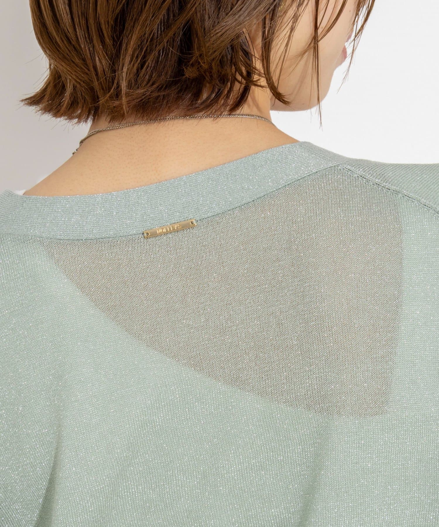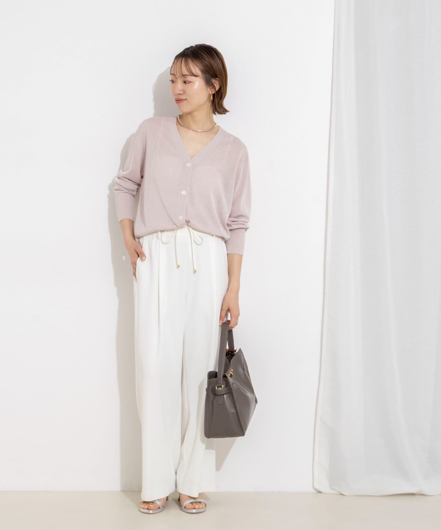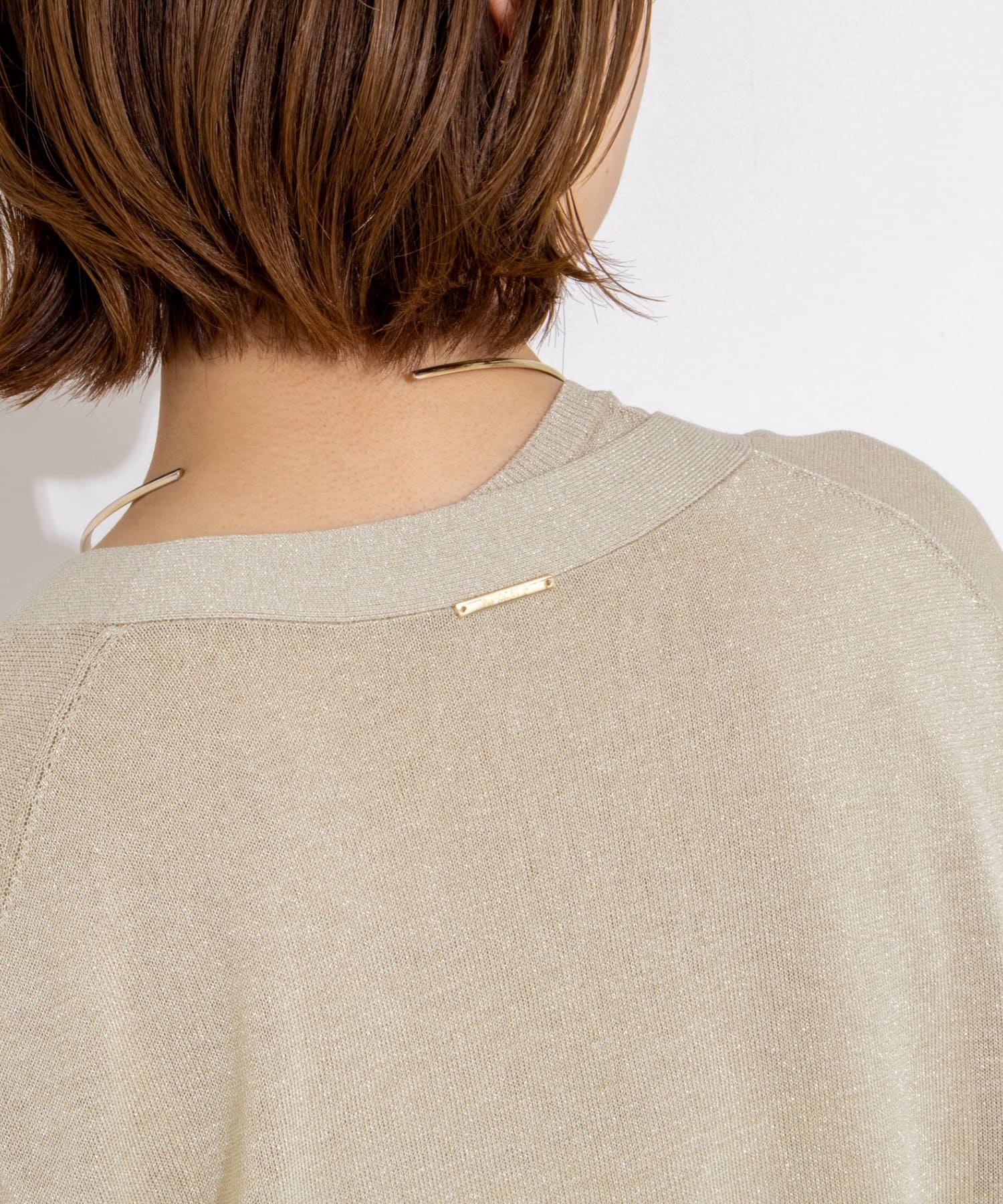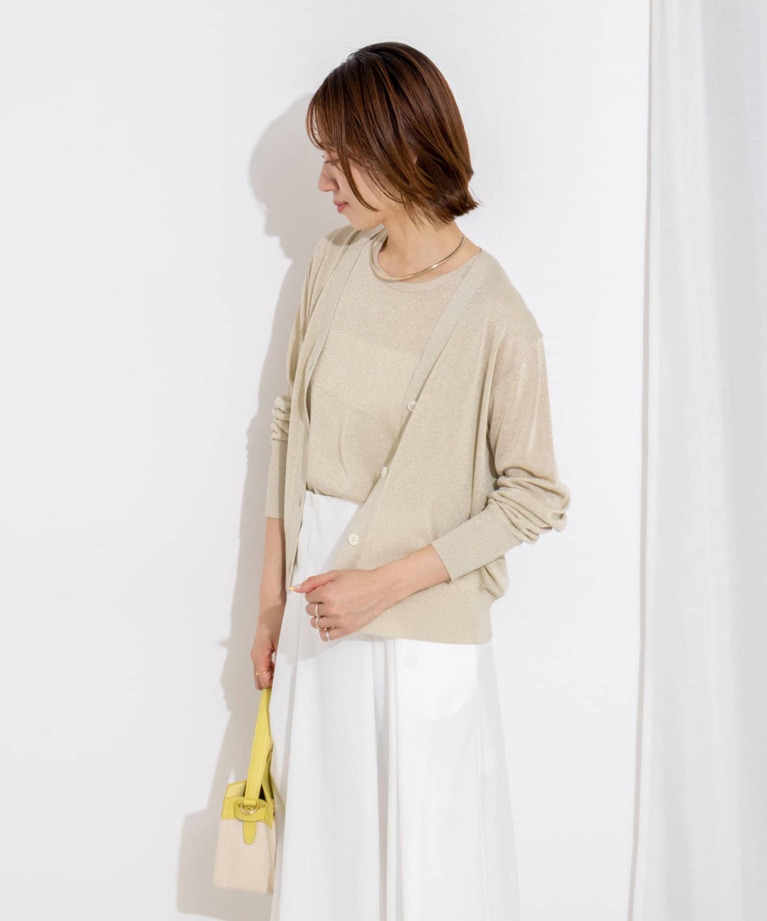 ・ラメの糸を使用したシャイニーなVネックカーディガン